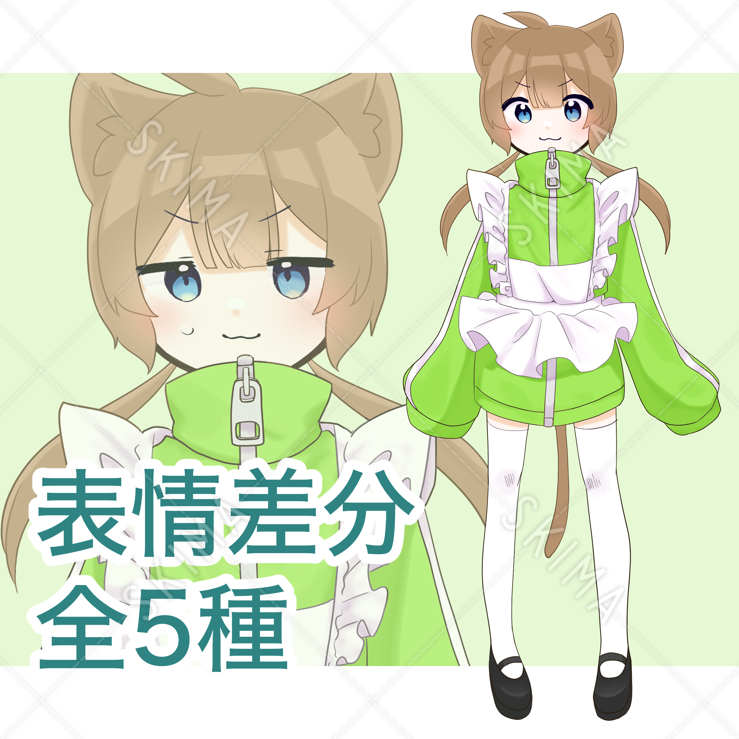 猫耳おさげジャージメイドちゃん【表情差分5種】