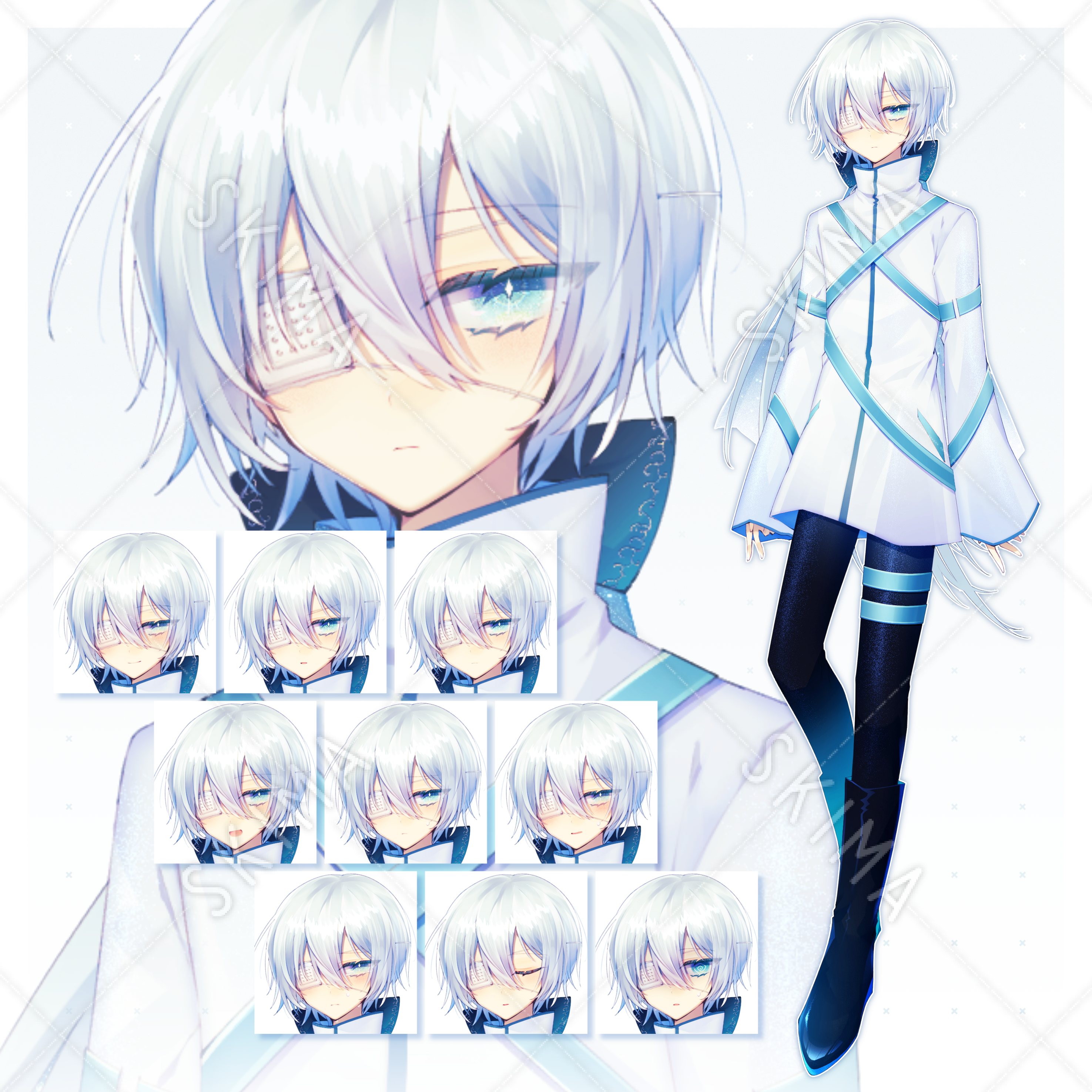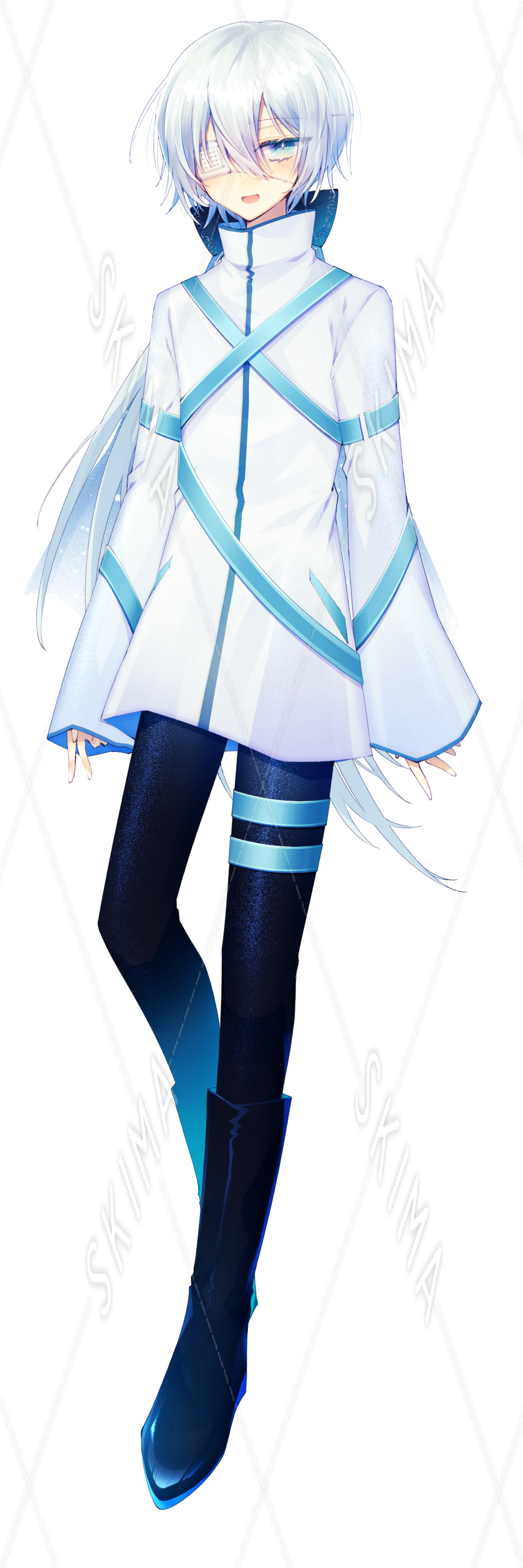 白髪眼帯の少年です。