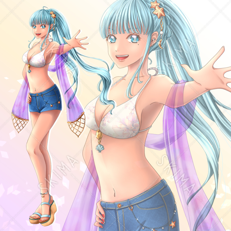 水着のお姉さんを描きました。健康的な日焼け具合^^