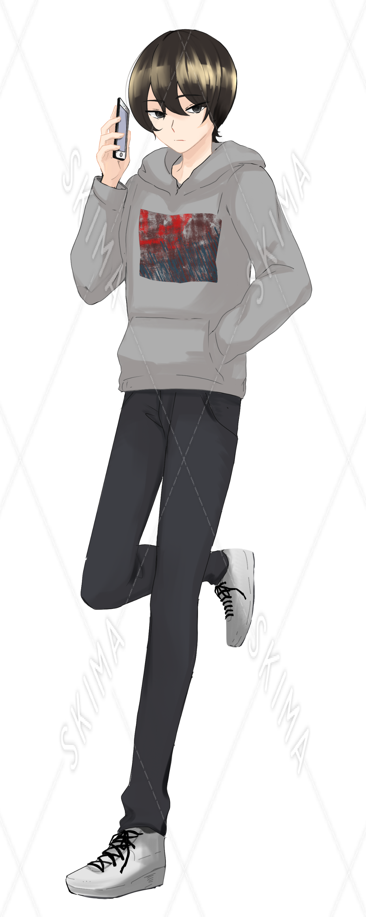【スマホを持つ青年/表情差分4種】