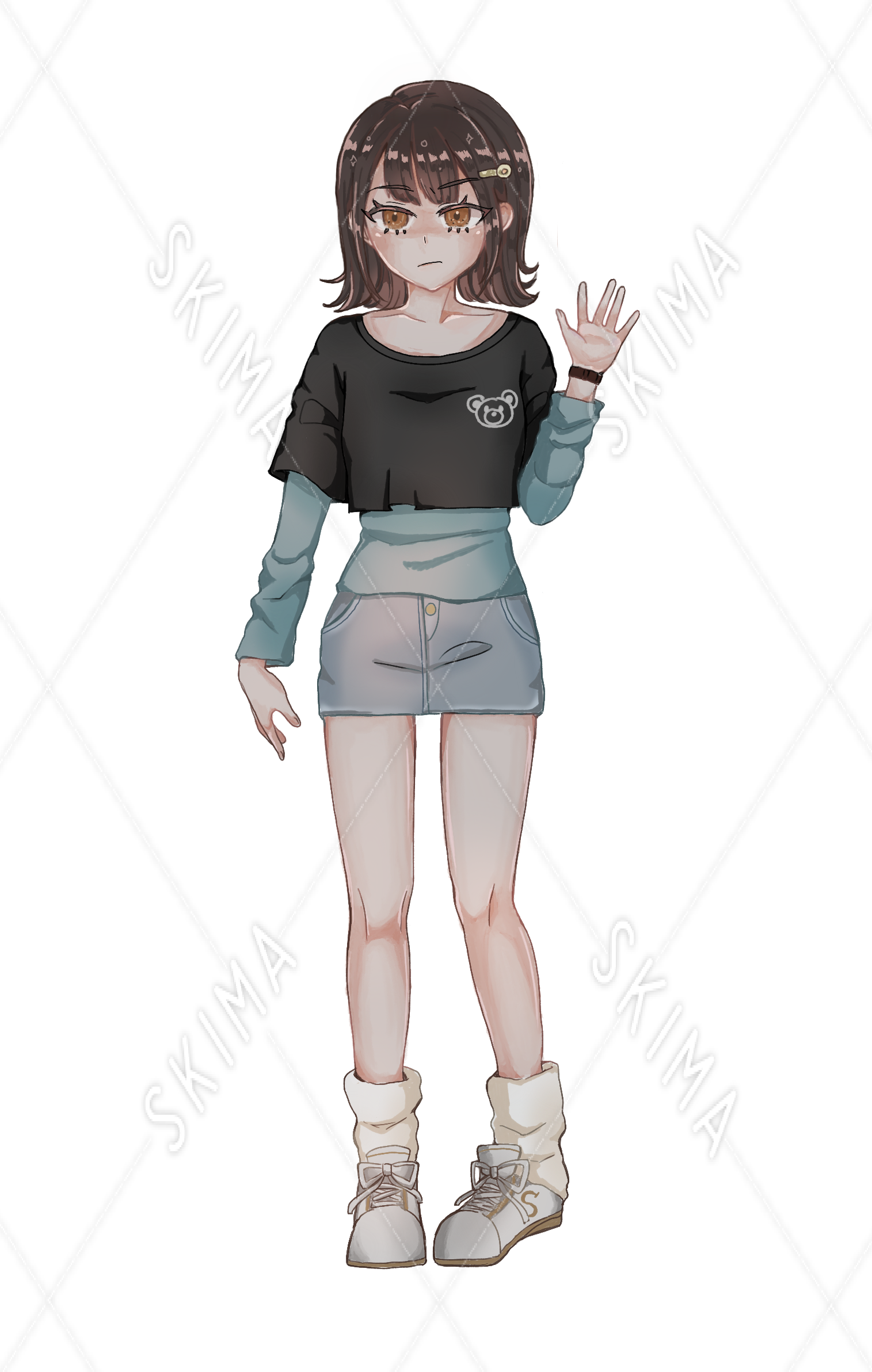 茶色ショート女の子の立ち絵(全身)です。