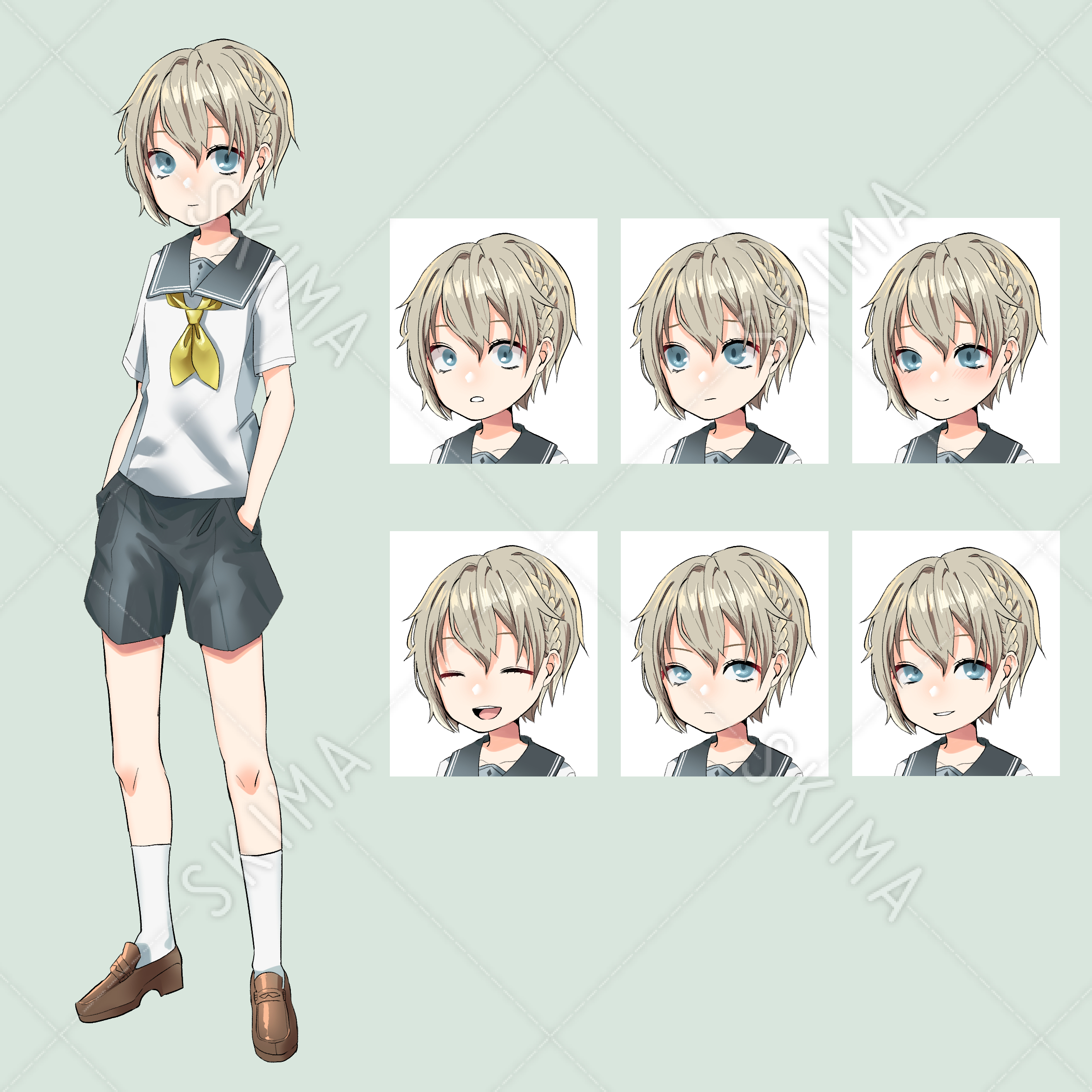・立ち絵1枚+表情7種(普通、驚く、困る、照れる、笑う、怒る、微笑む)