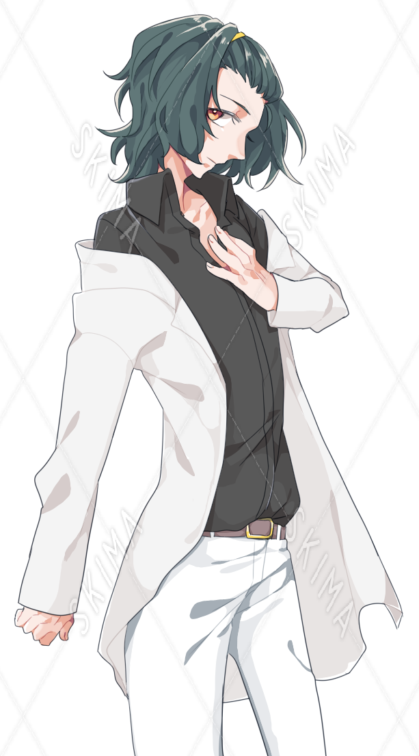 白衣を着たポンパドールの青年立ち絵です。