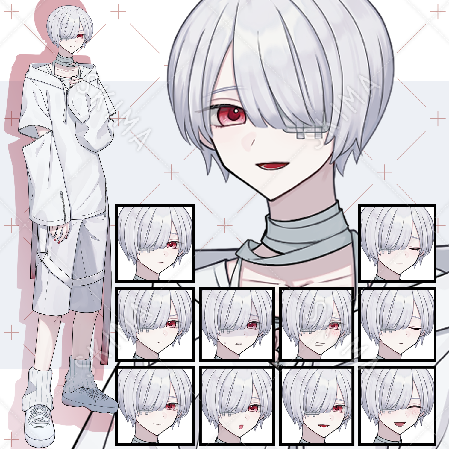 白髪赤目の男の子 表情10種