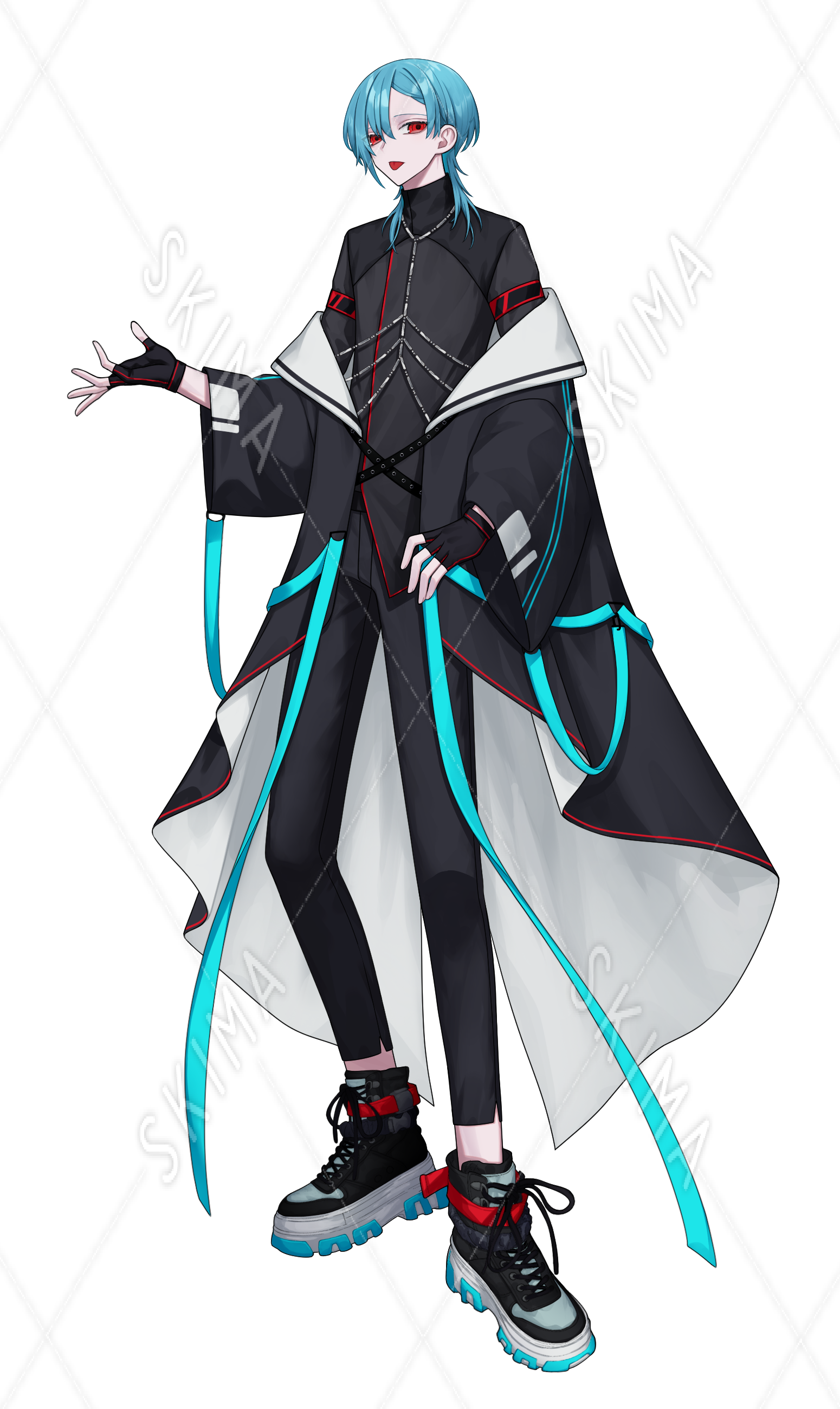 水色髪のサイバーパンク風の男の子 表情10種