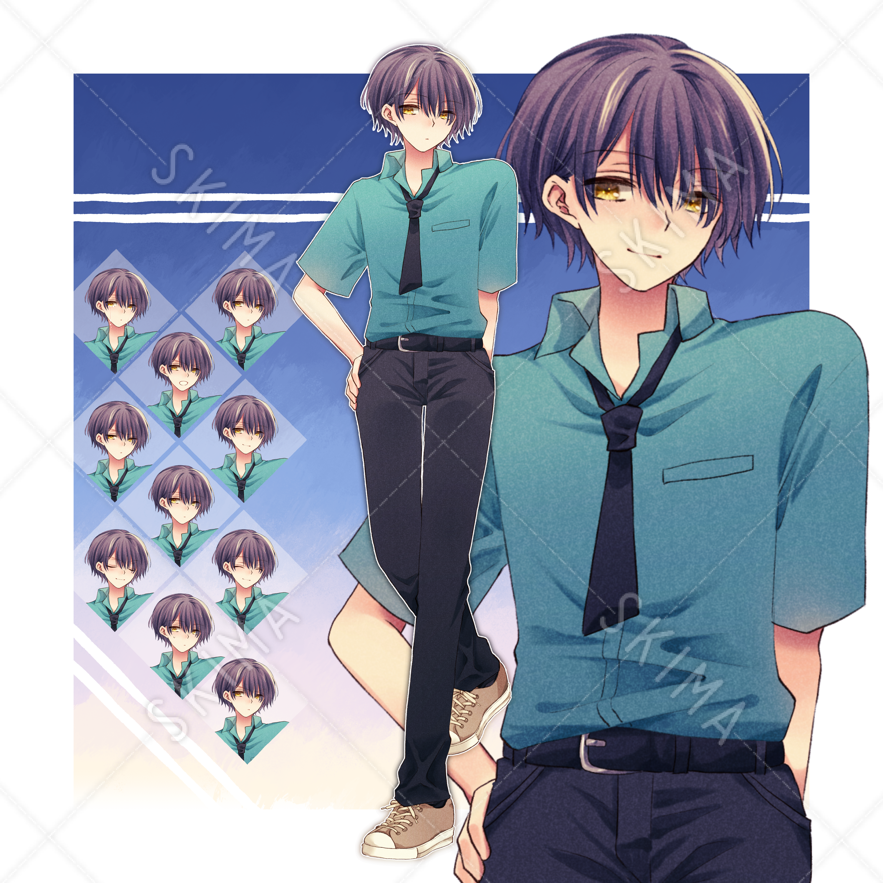 クールで夏っぽい制服の男の子の立ち絵です。