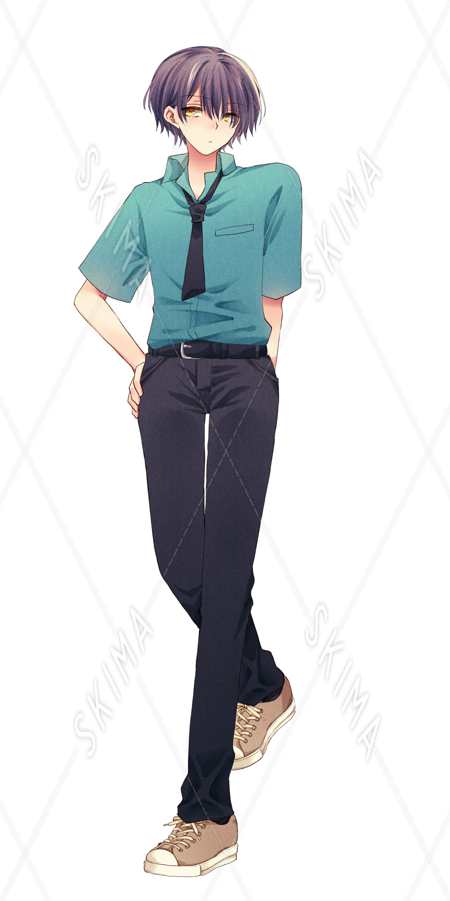 男の子 全身立ち絵 スニーカー 制服 夏服