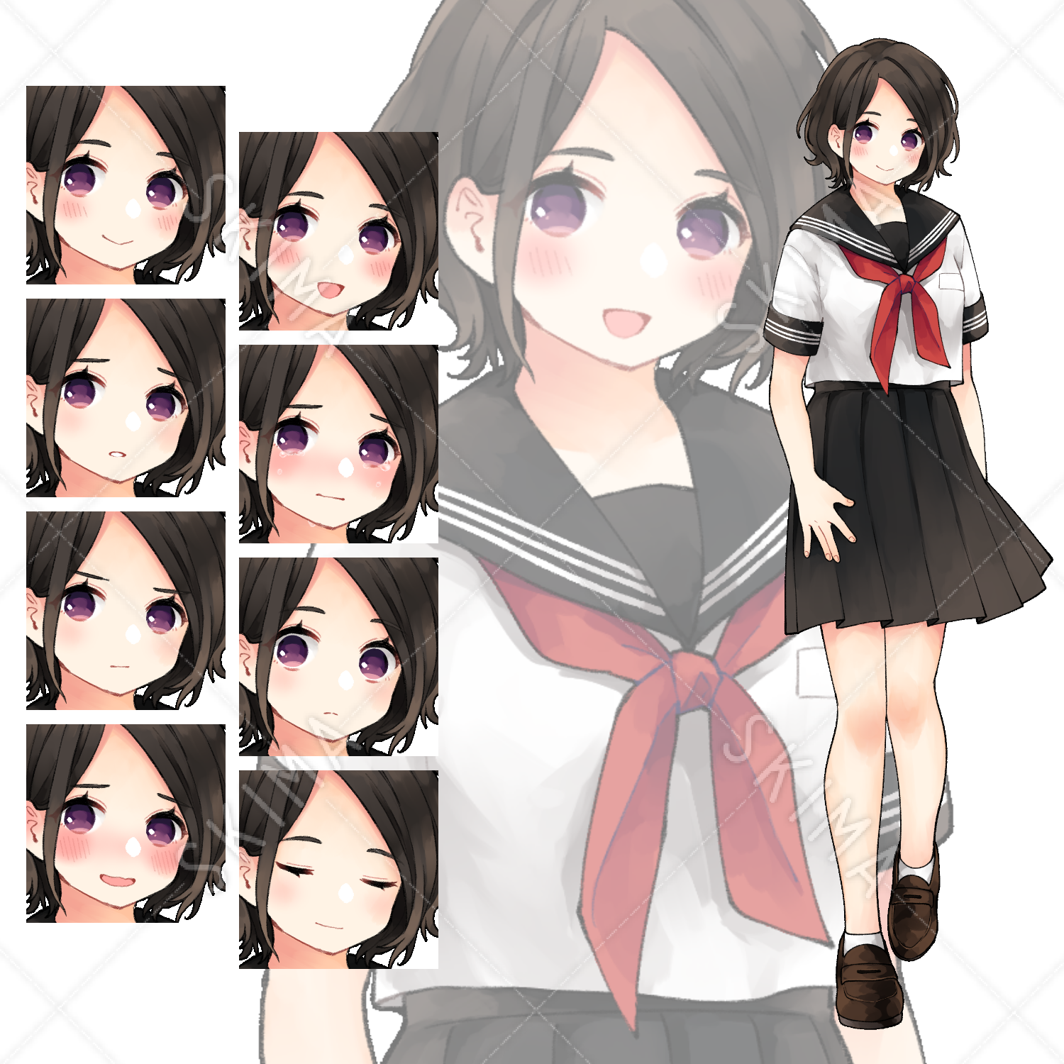 セーラー服の女の子【表情8種】