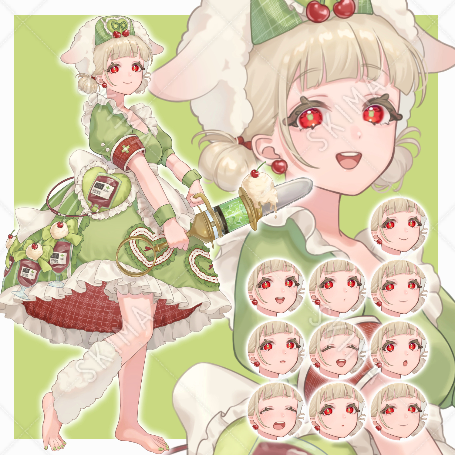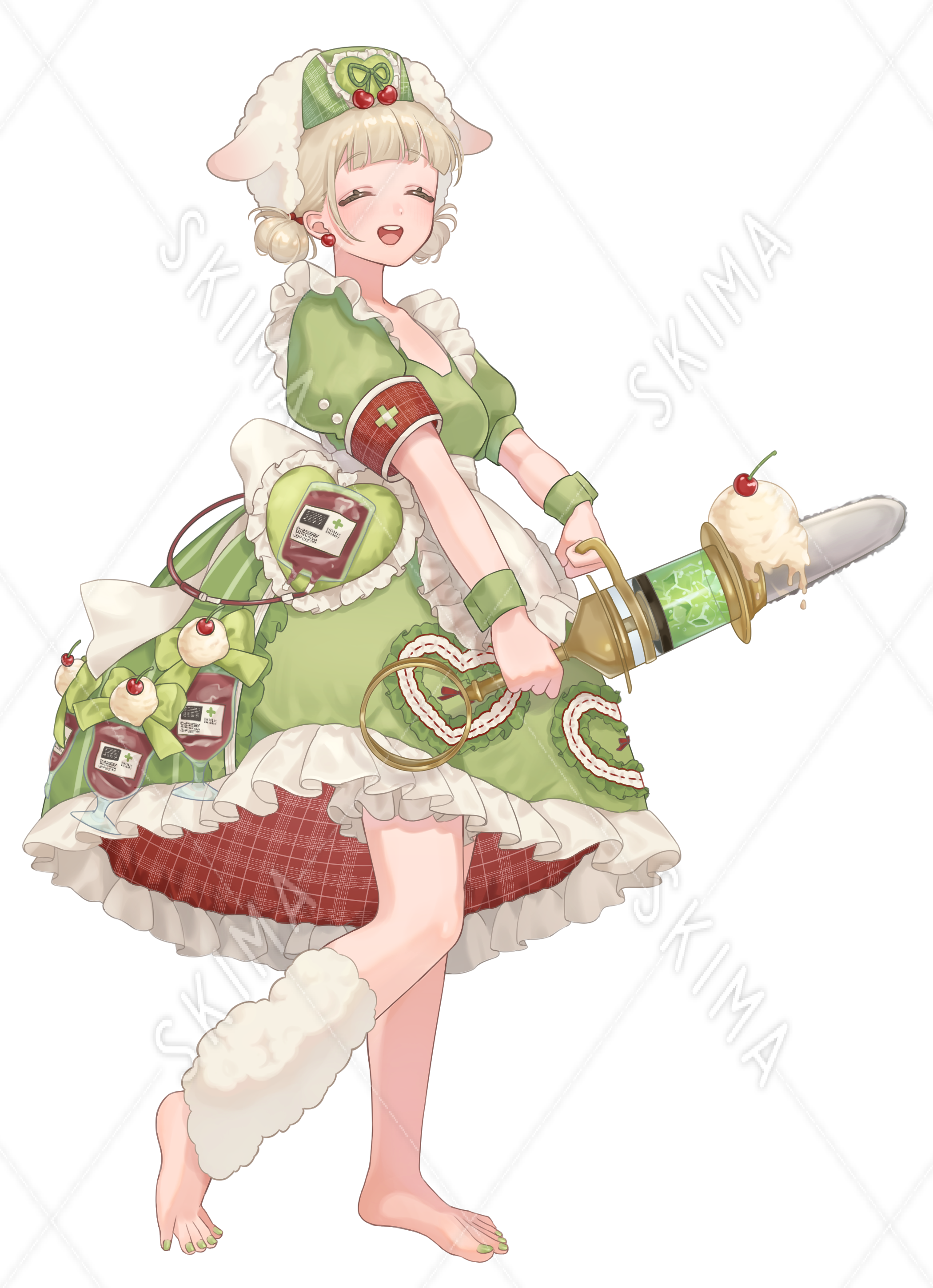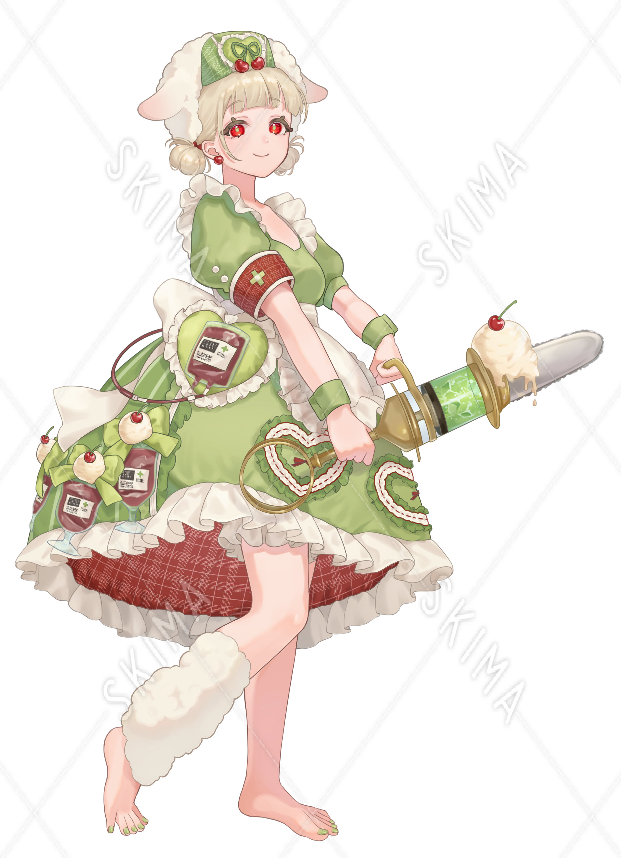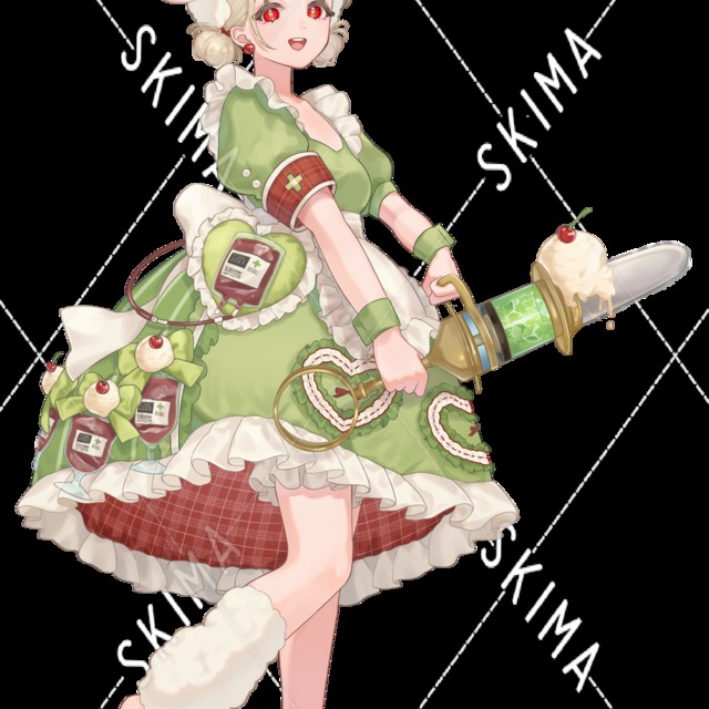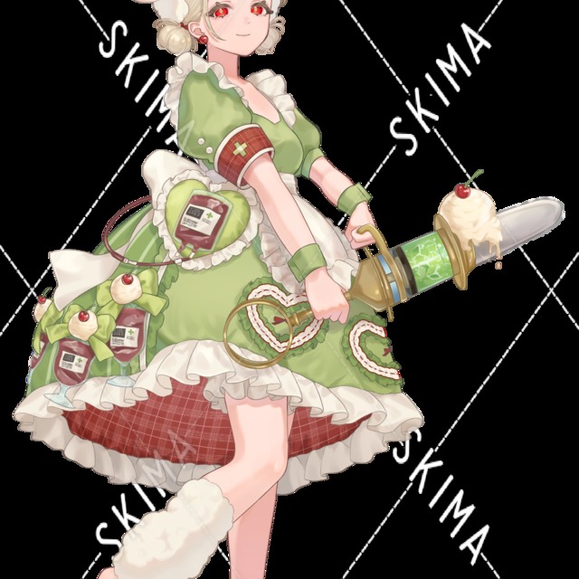 クリーム色、赤目、ロリータ、ナース、クリームソーダ、立ち絵、少女、女の子