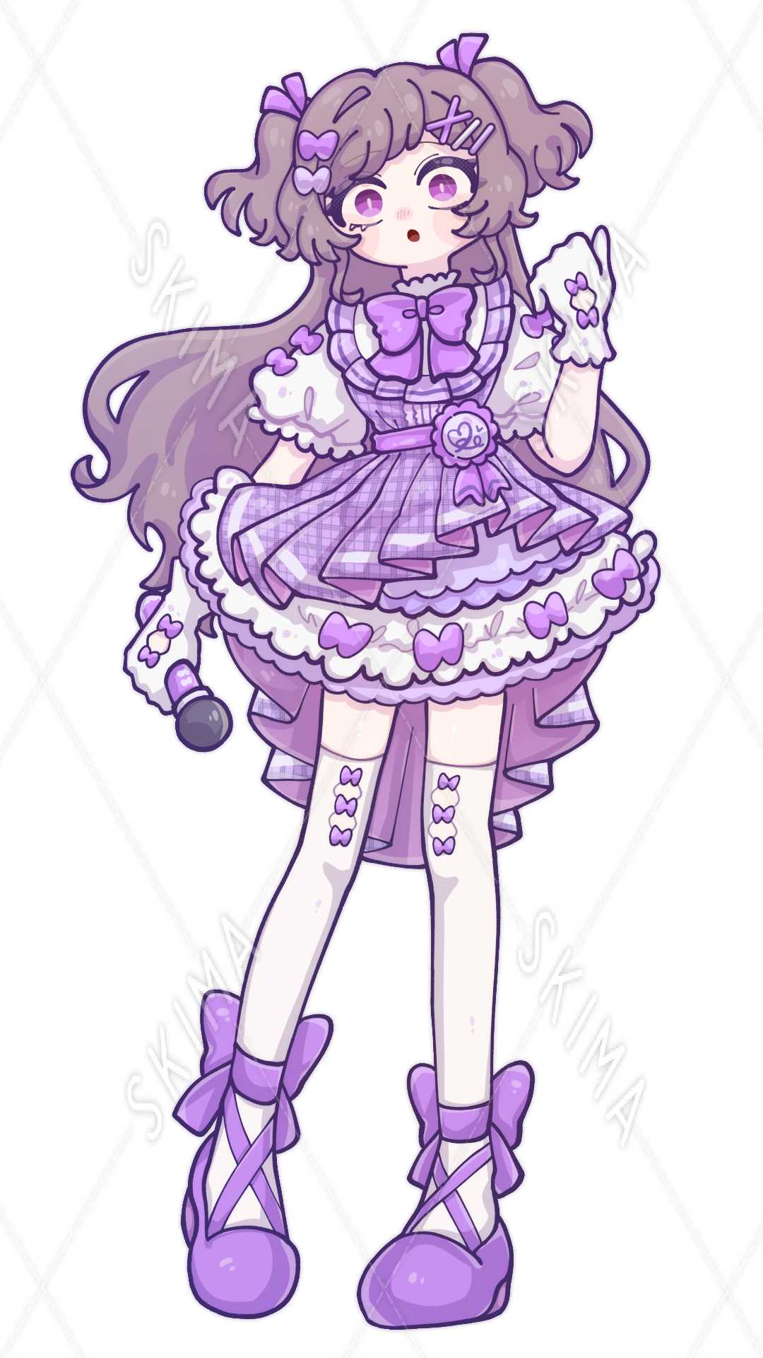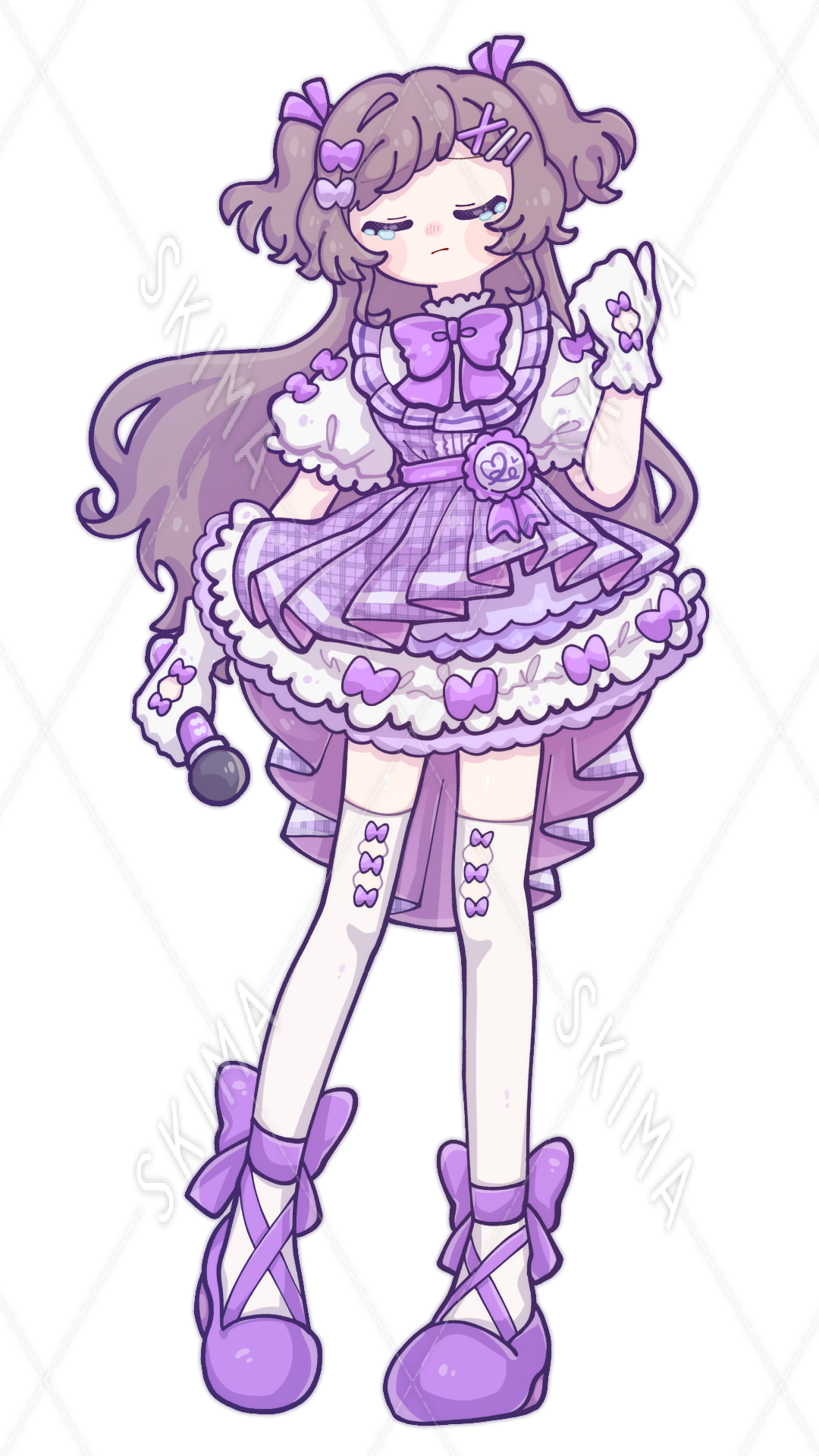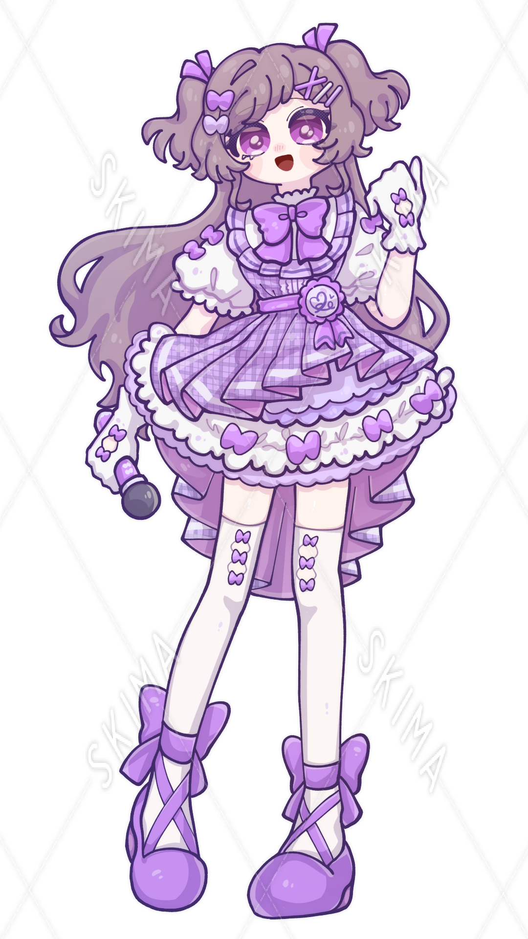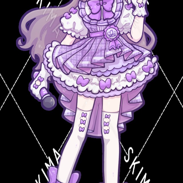 アイドル/女の子/紫/リボン/スカート/マイク/ヘアピン/ニーハイ/ふわふわ/ハーフアップ/ツインテール/手袋