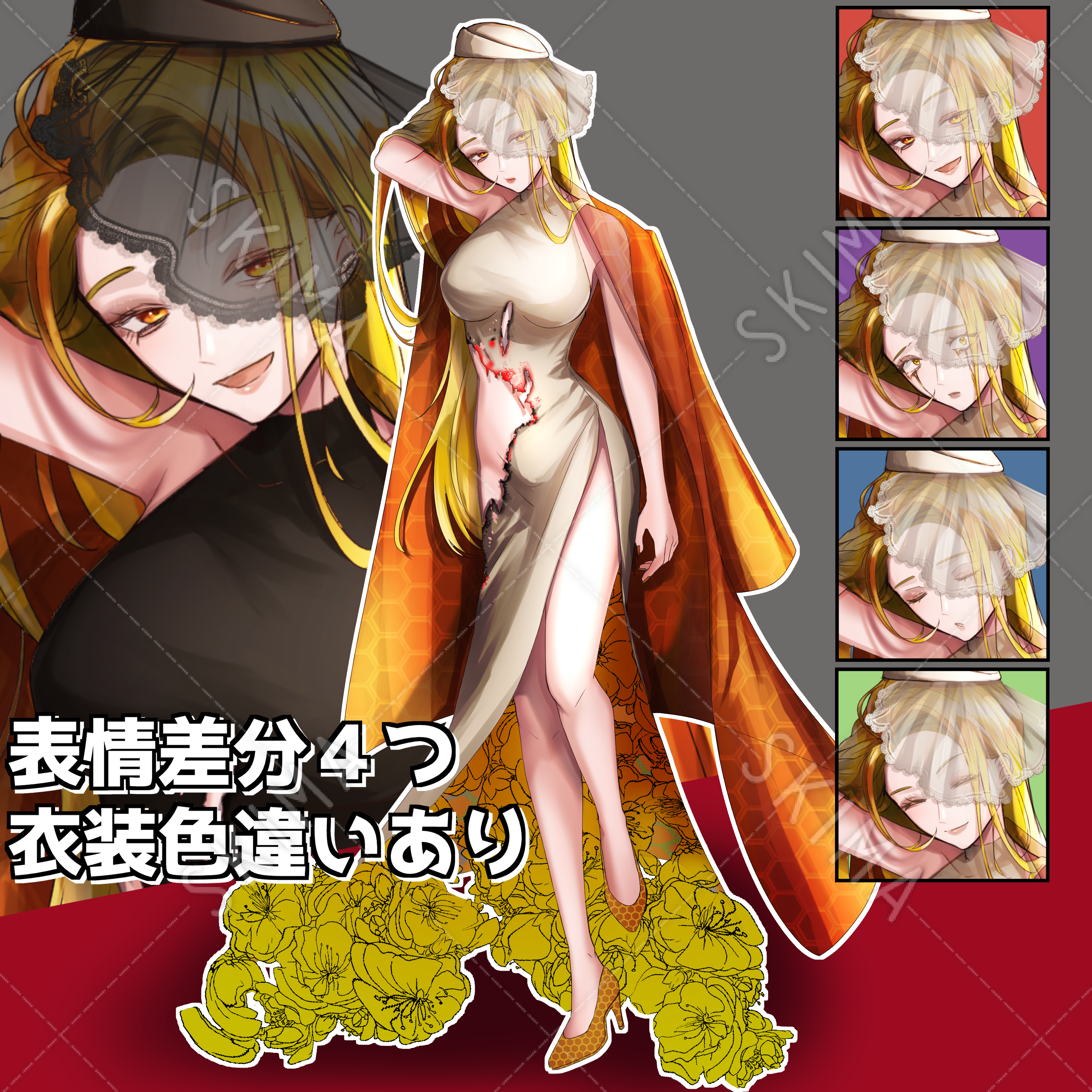 お値下げ中【表情差分4つ+服色違い】蜂蜜モチーフの女優【女性キャラ】
