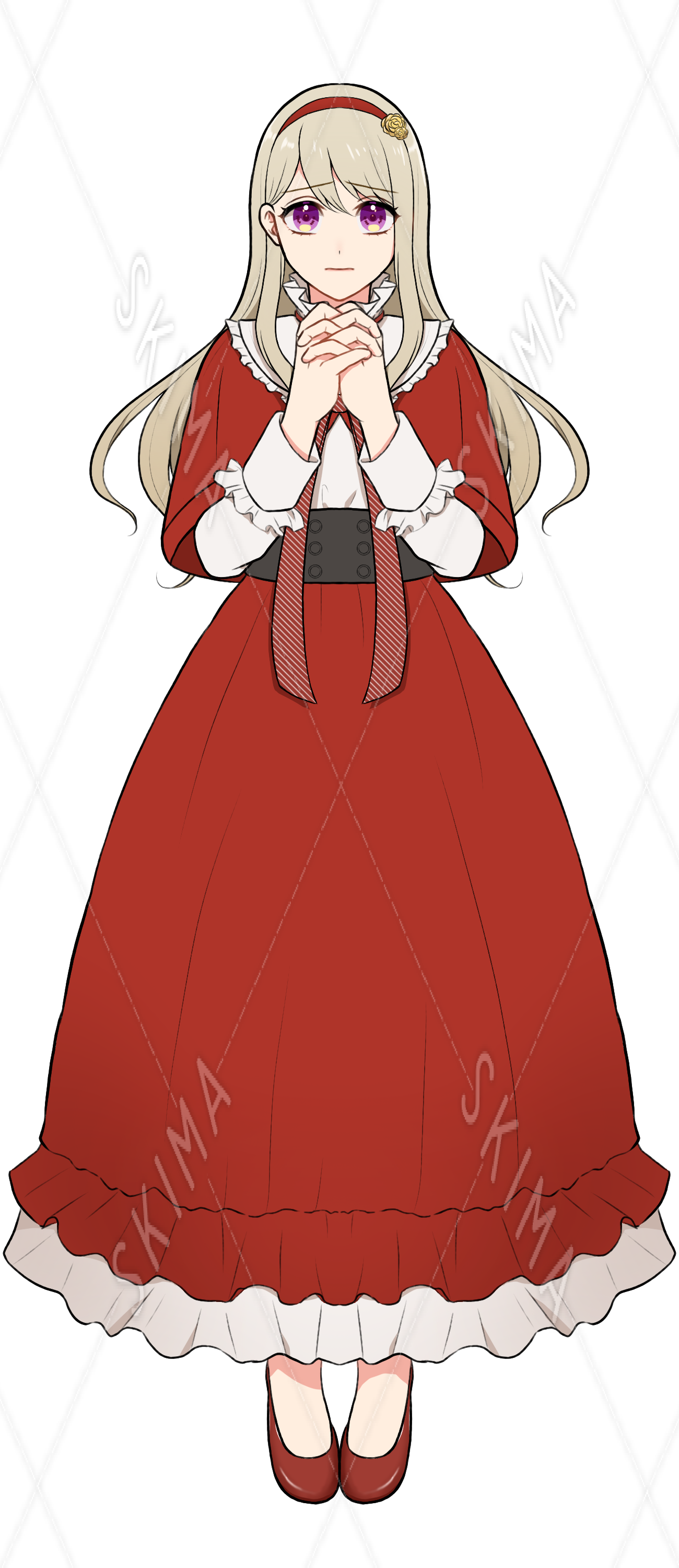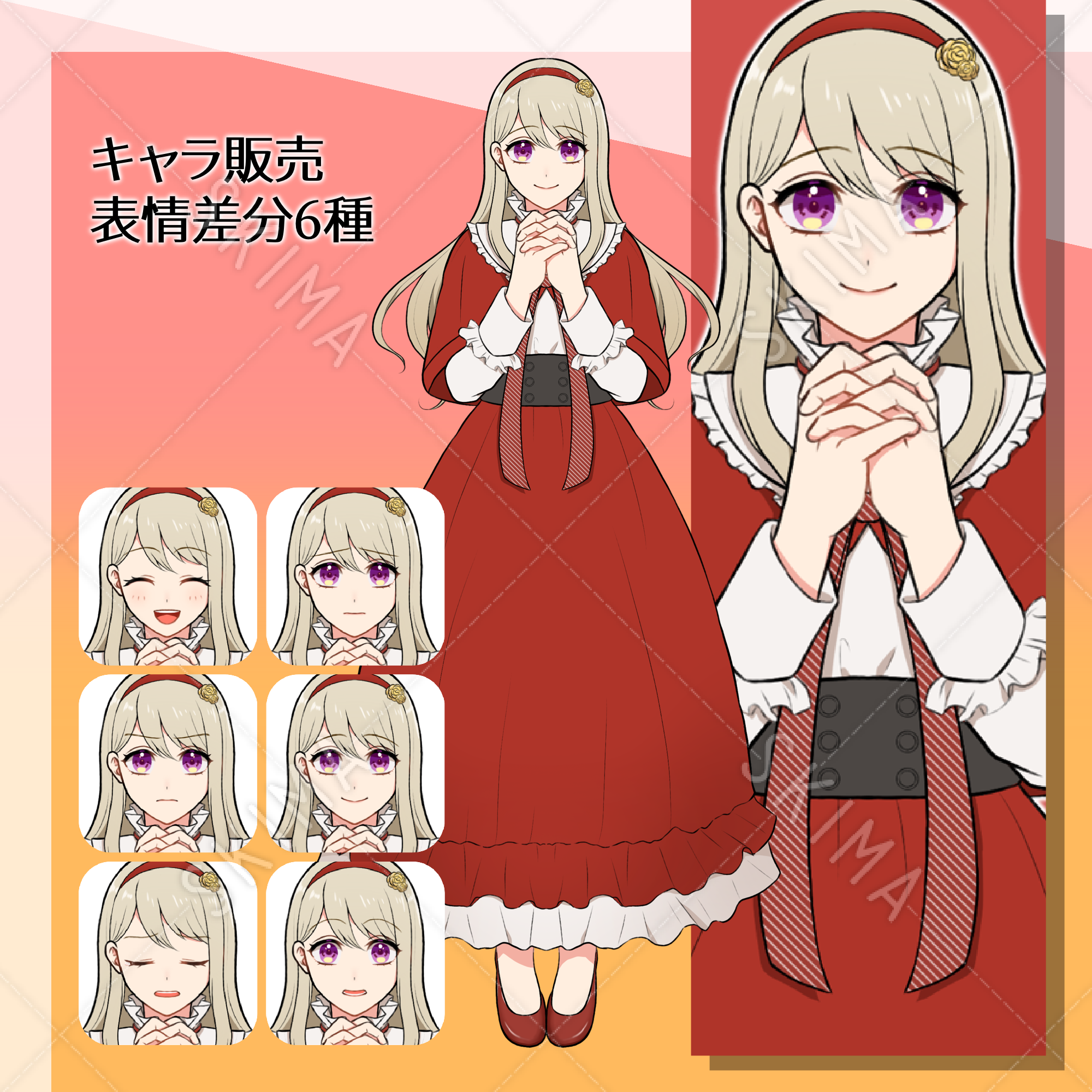 【表情差分6種】赤いフリルワンピースの女の子