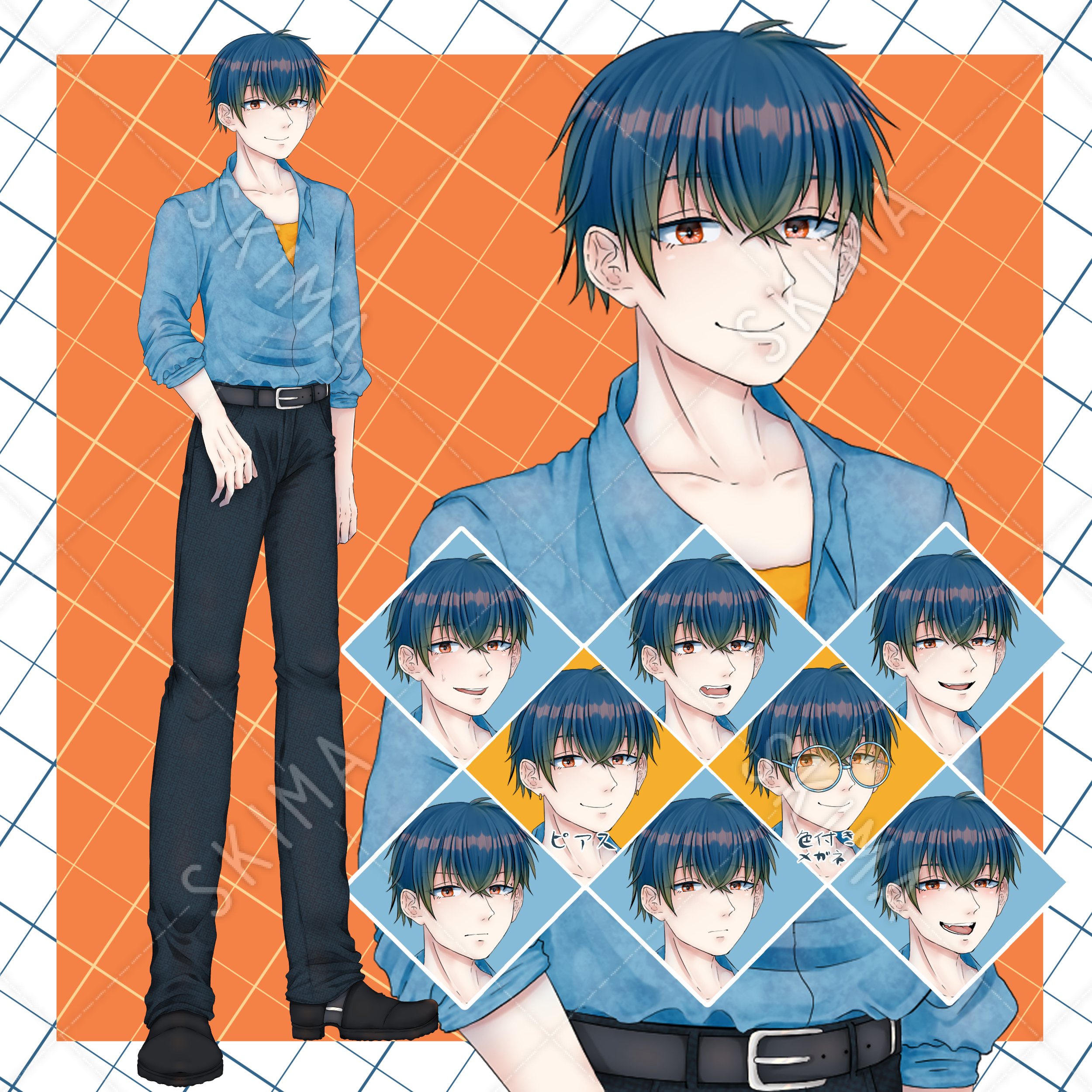 青 オレンジ 男性【表情全7枚+小物2点】