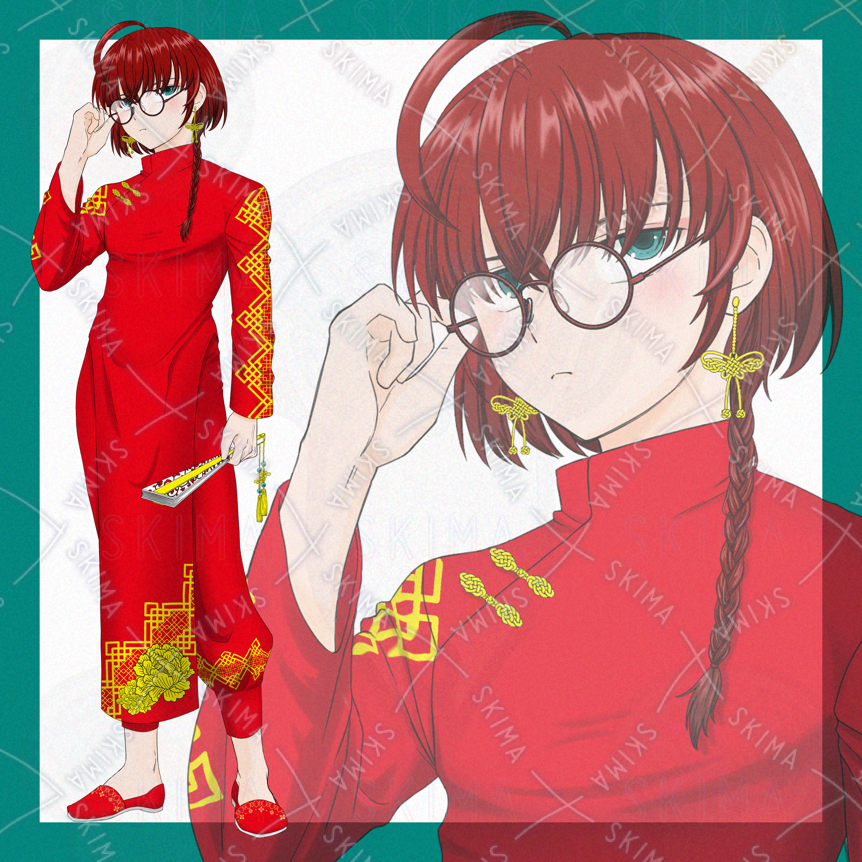 【セール】赤チャイナ丸メガネ男の子【表情5種】
