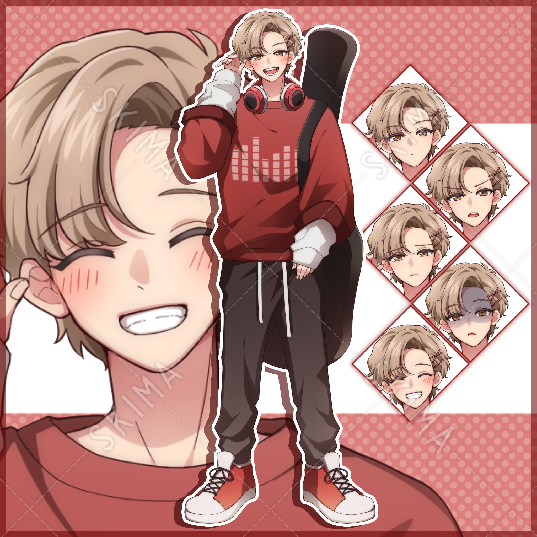 ギターケース、ヘッドホンは着脱可能です。人物の上に重ねて表示して下さい。