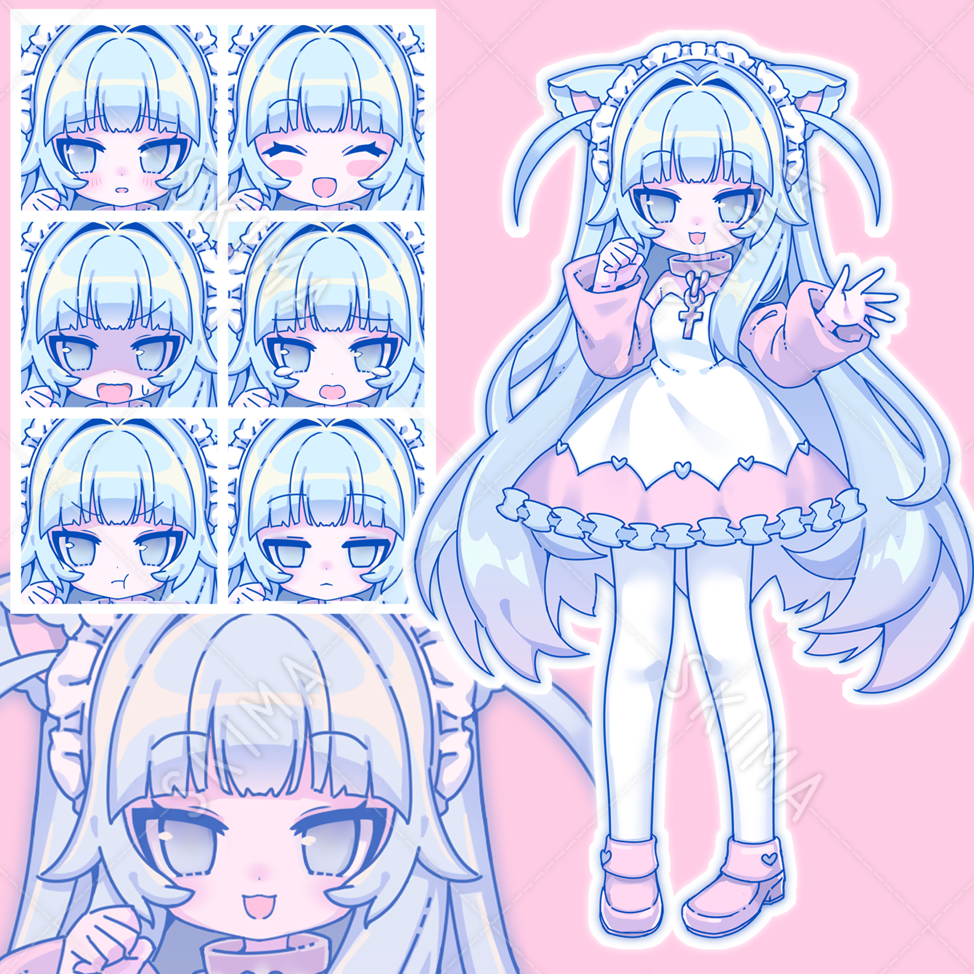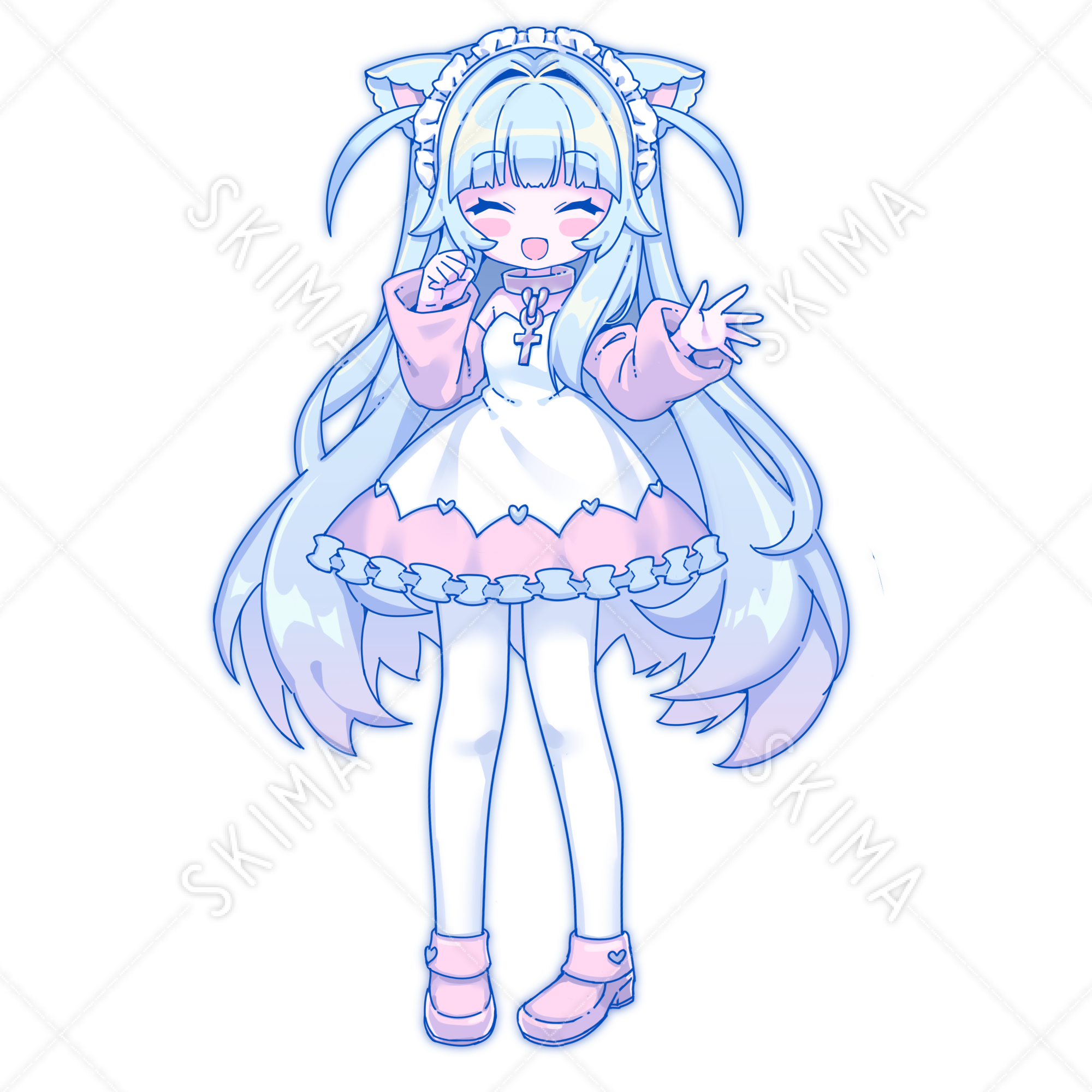 (猫耳/女の子/青/青髪/フリル/かわいい/ロング/白タイツ/デフォルメ)
