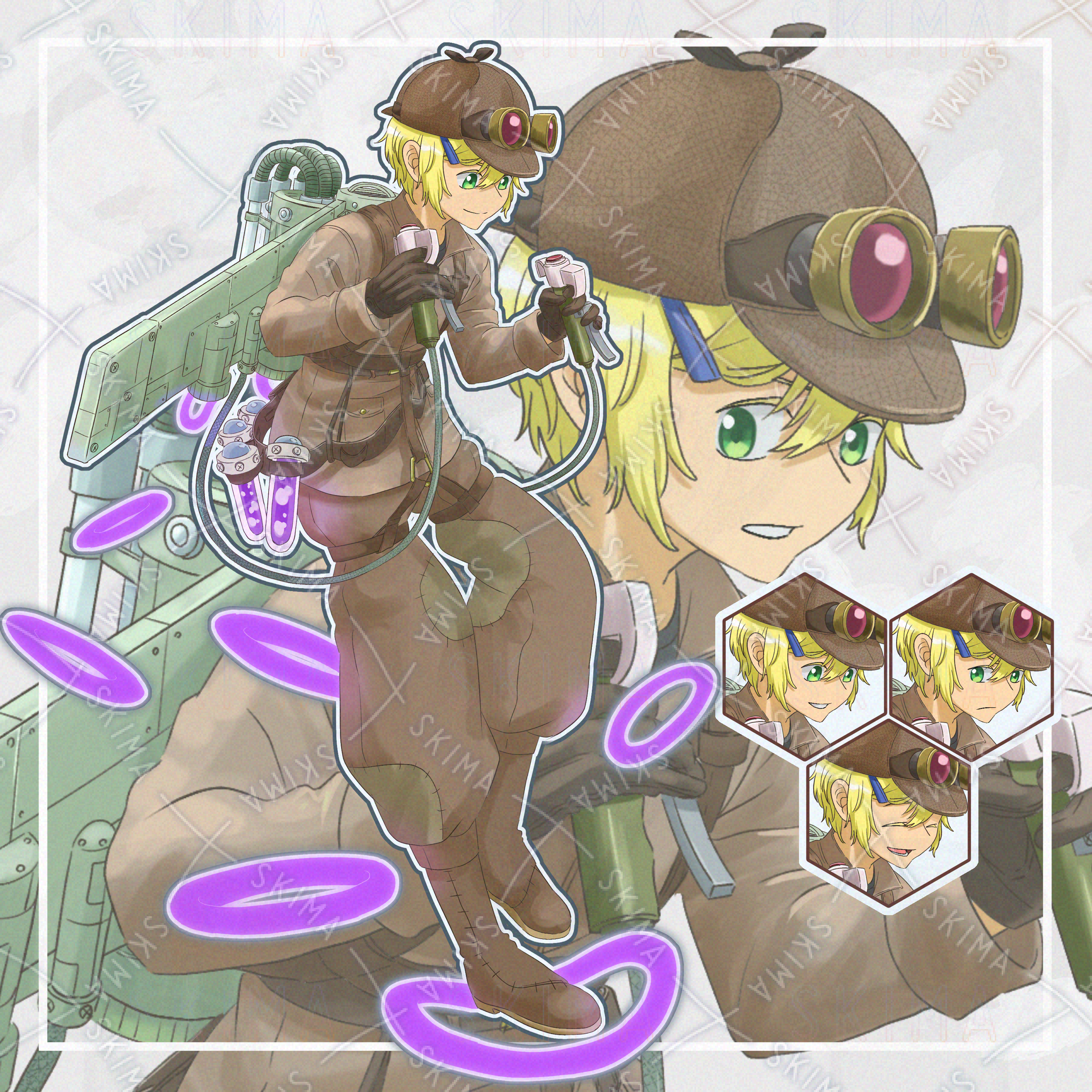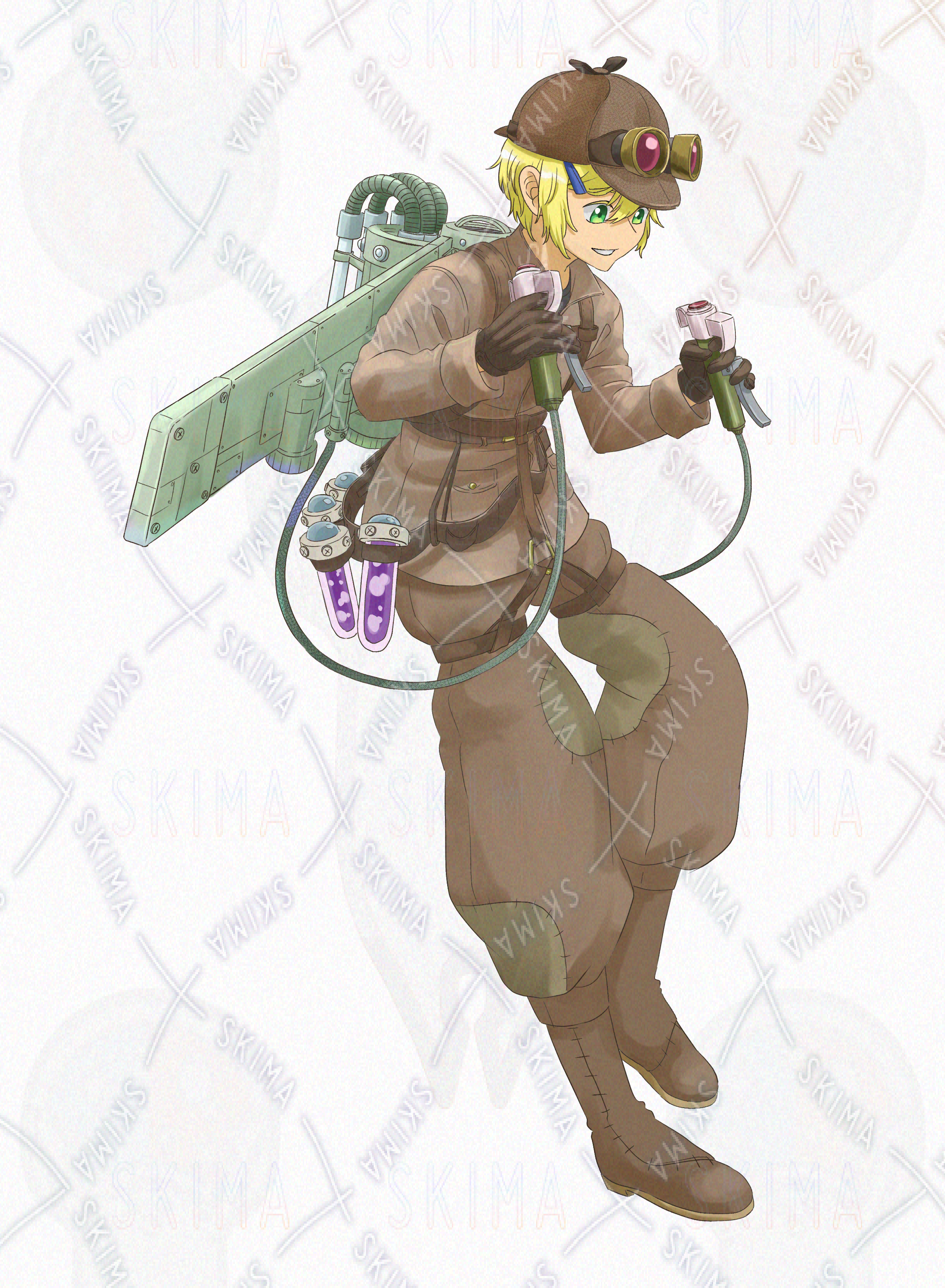 未知のエネルギーを使って自作の装置でふよふよする青年の立ち絵です。設定等ご自由に決めていただければと思います。