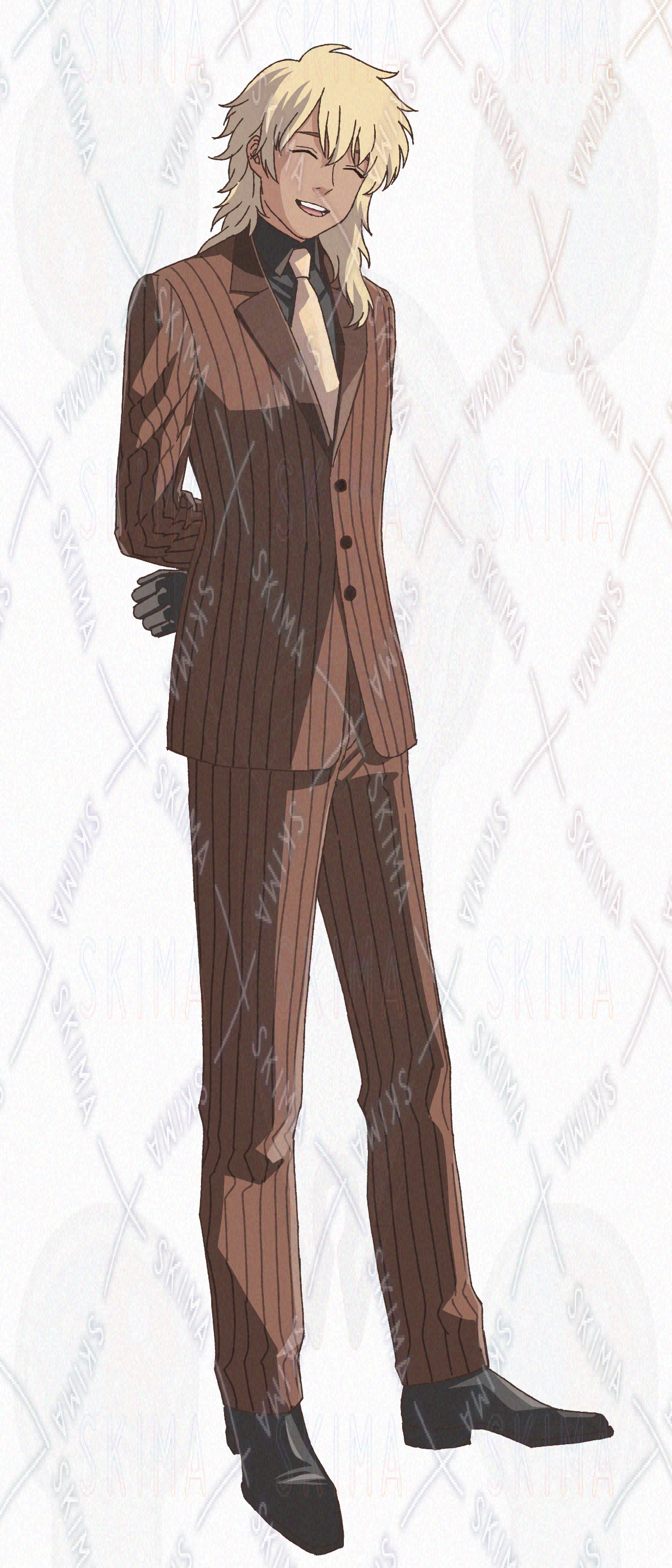 金髪・チョコレートカラーのスーツの男性