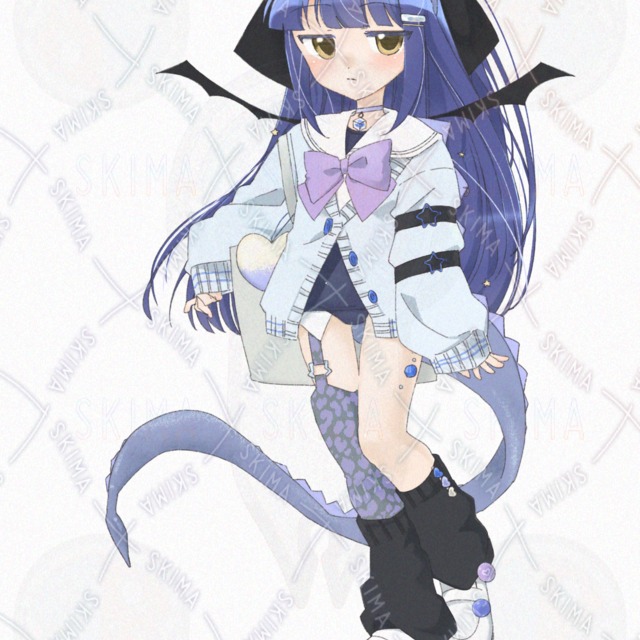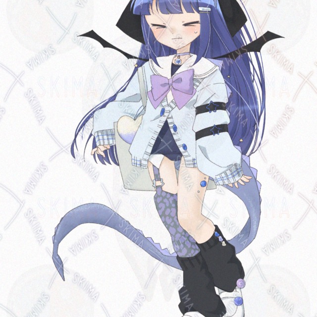 青基調のスク水ニットなドラゴン娘【表情差分10種類】