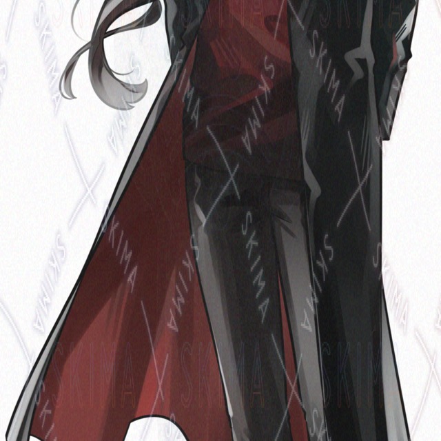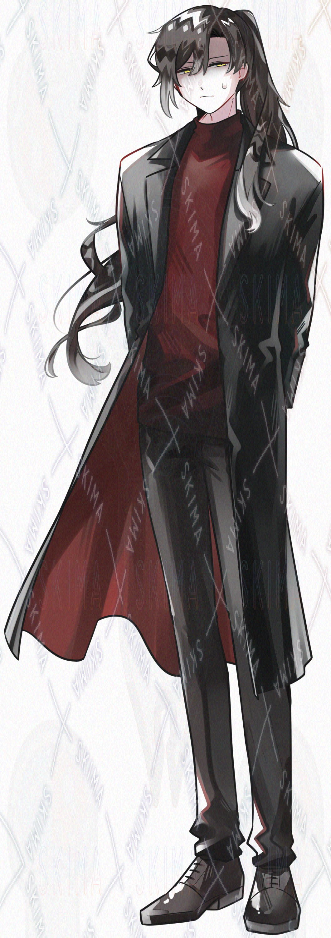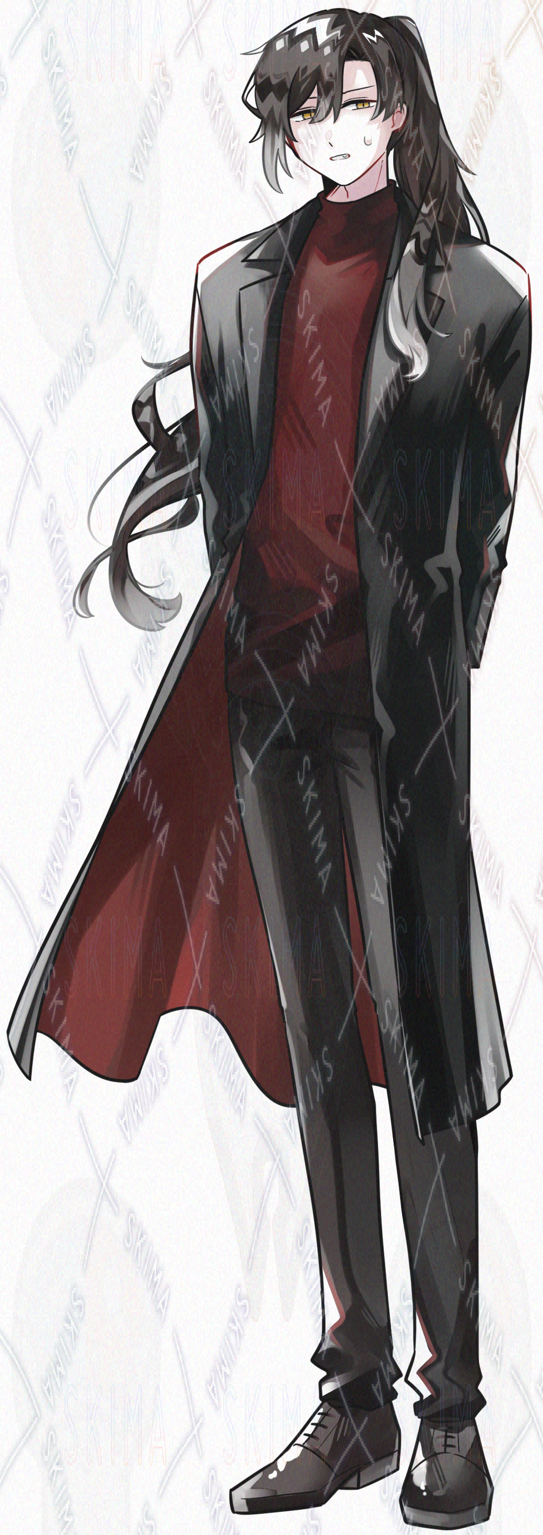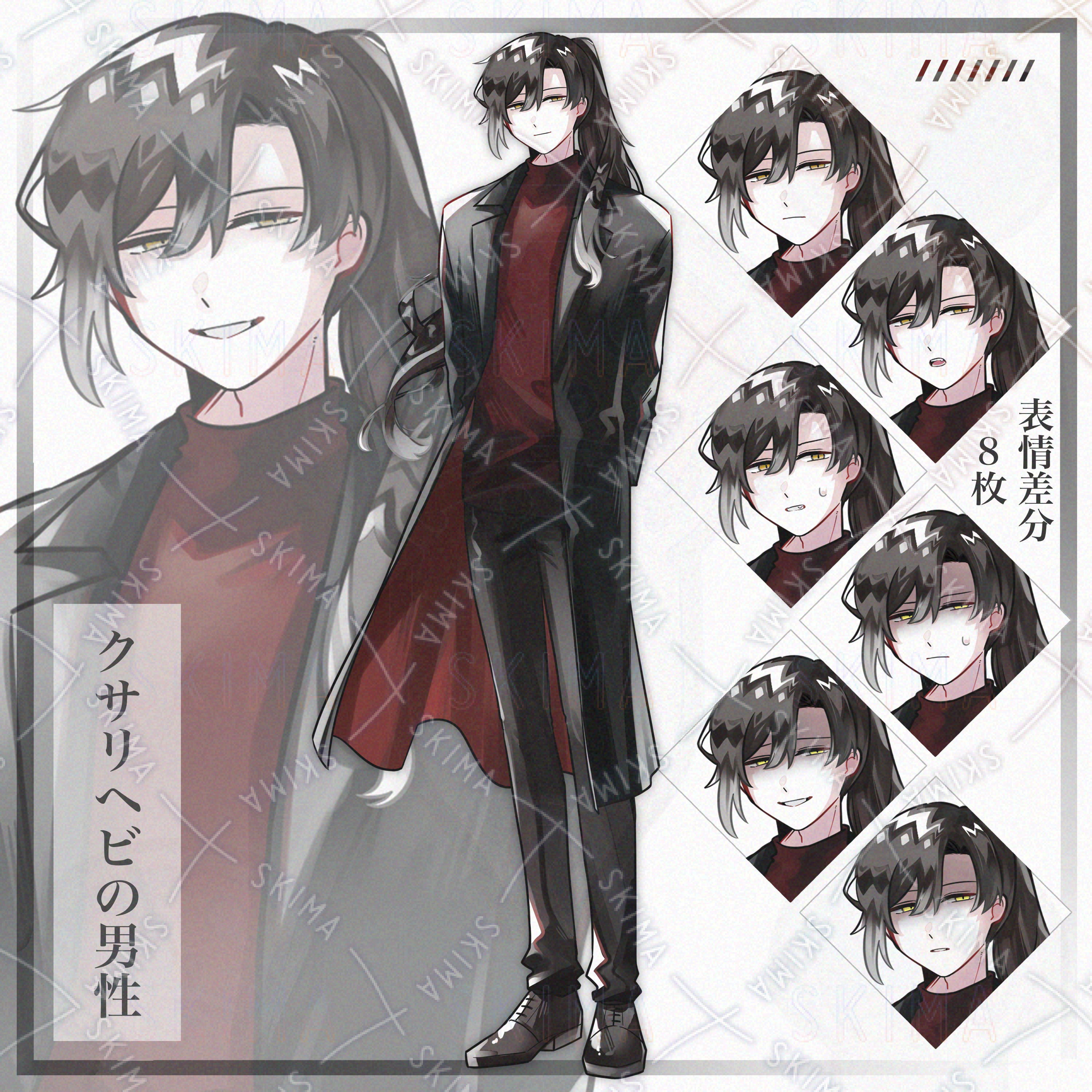 蛇/長髪/ポニーテール/革靴/ジャケット/茶髪/金眼/黒/赤/青年/かっこいい