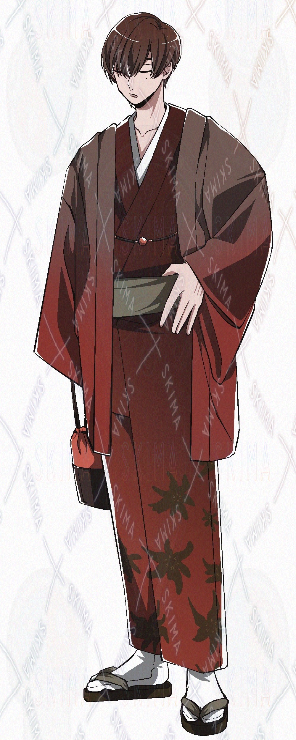 和装、和服、和風、着物、羽織、着物男子、着物男性、赤着物、ベレー帽、帽子、茶髪、黒子、ホクロ、ほくろ、浴衣
