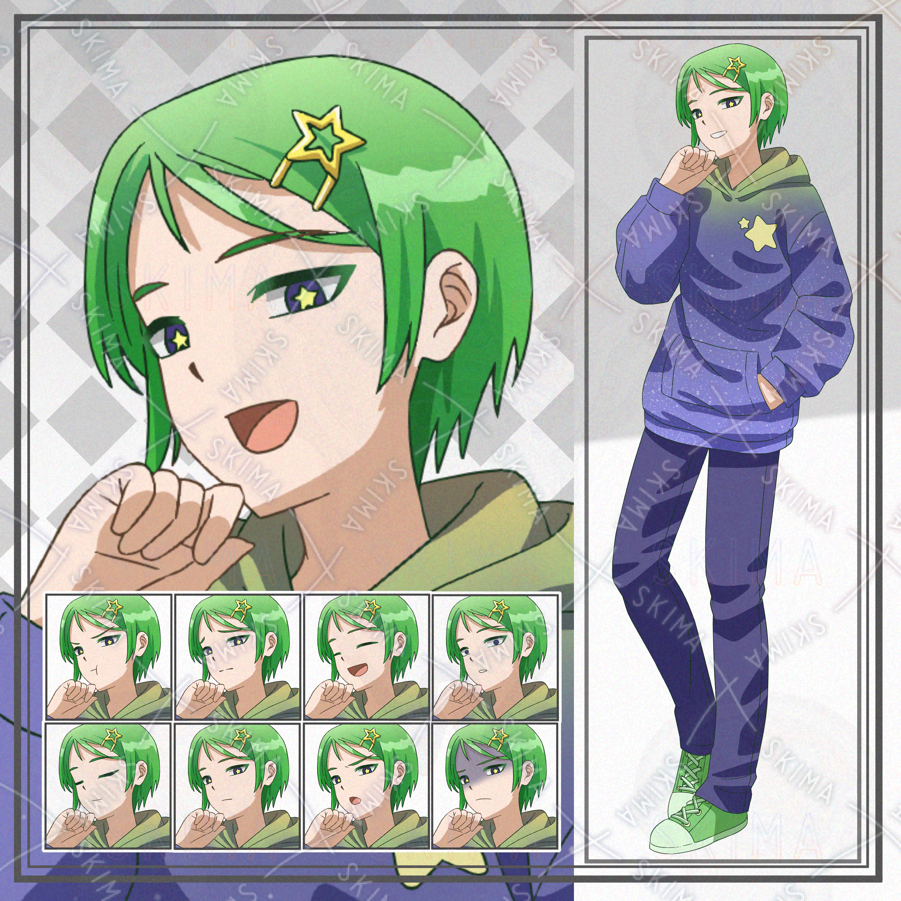 【表情10種】夜空パーカーの男性
