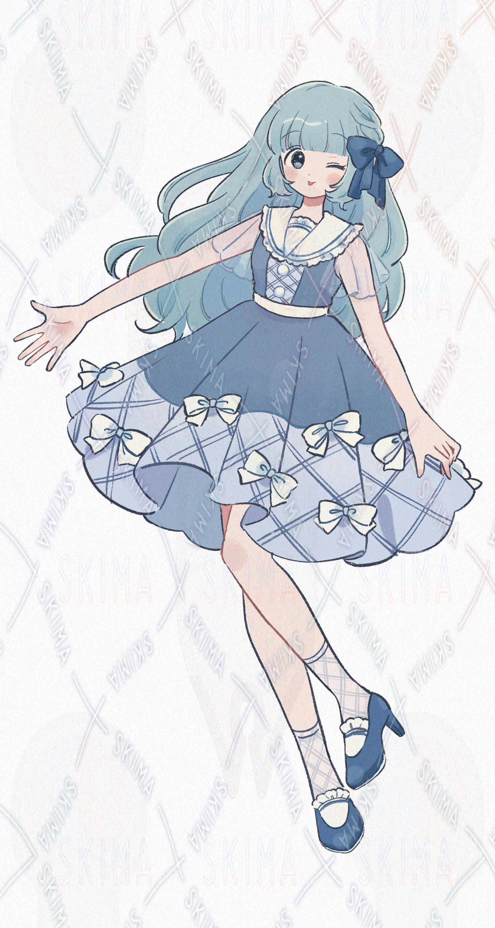 青いリボンの女の子【表情6種】