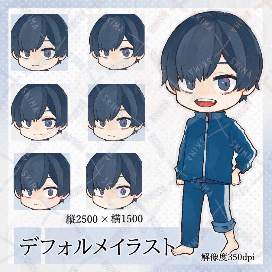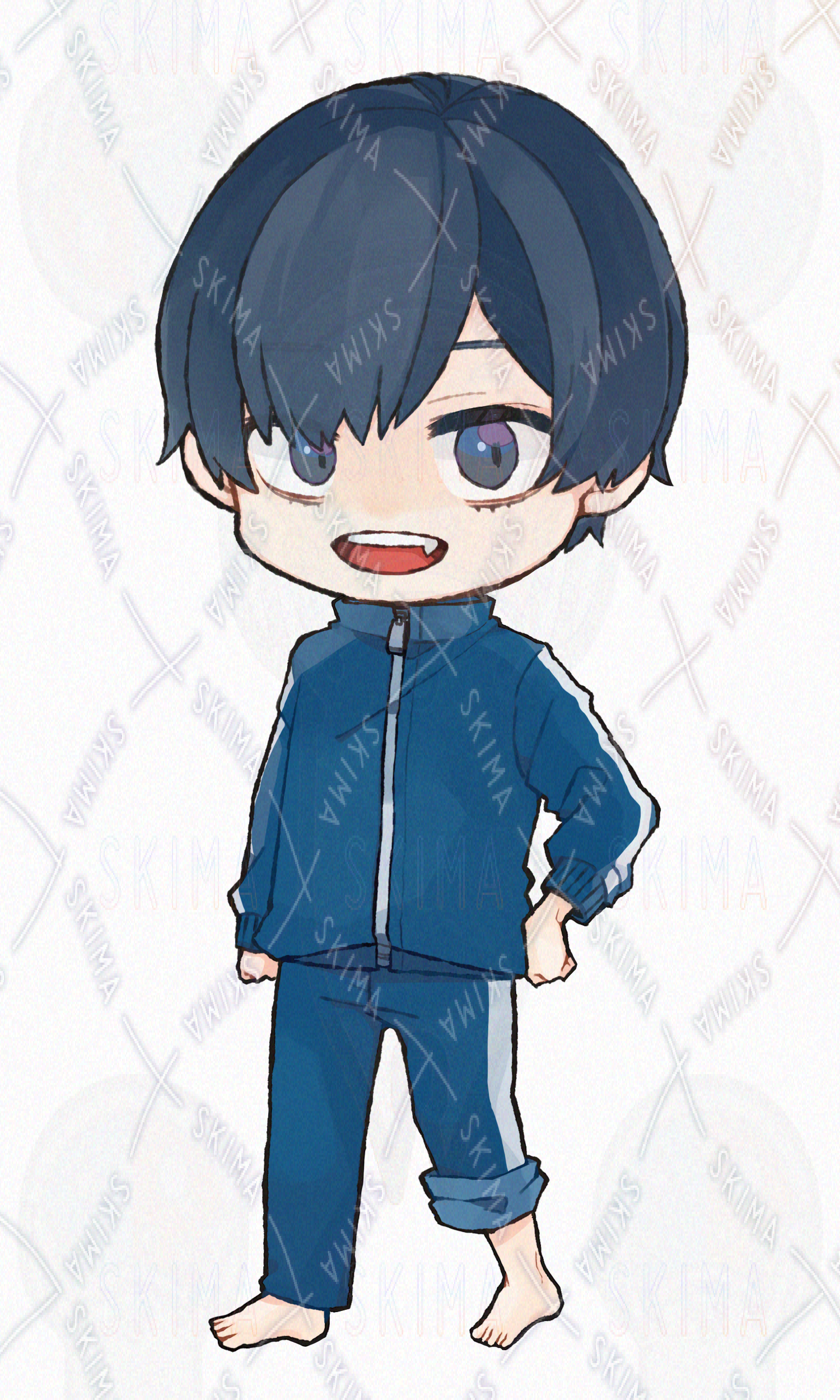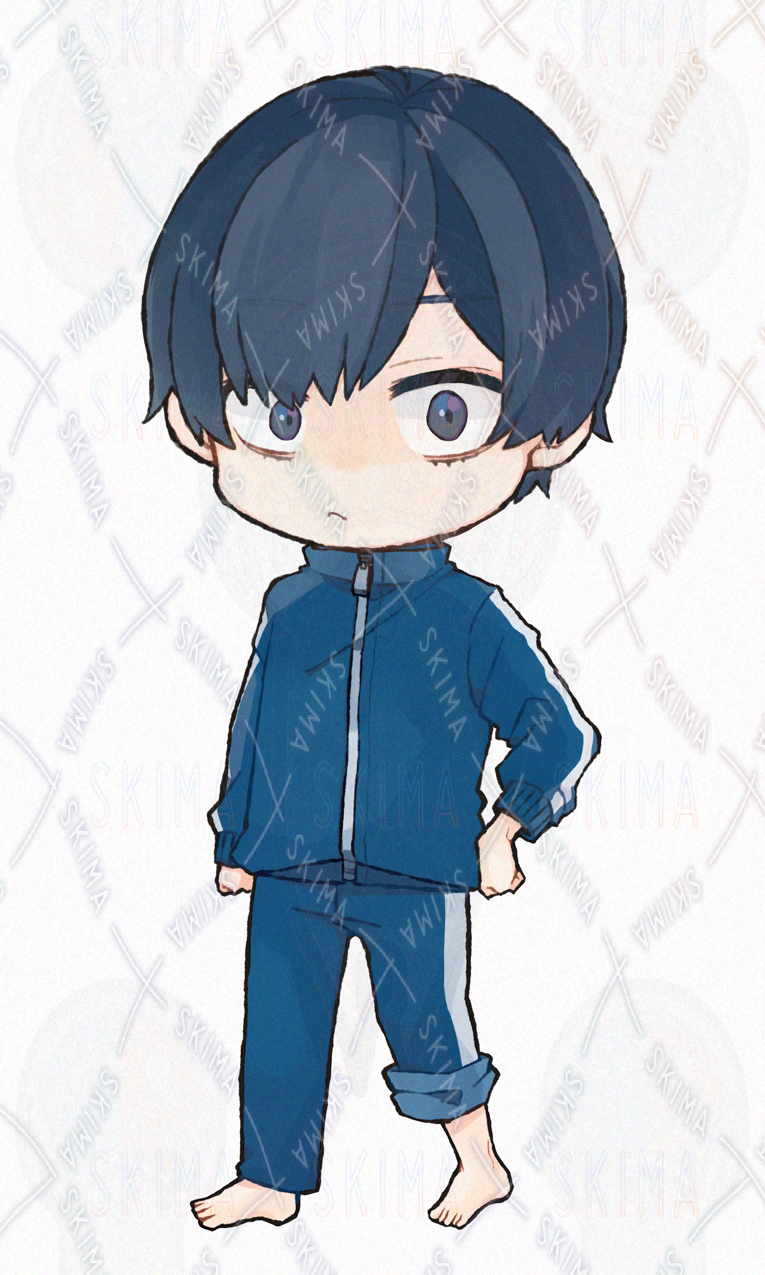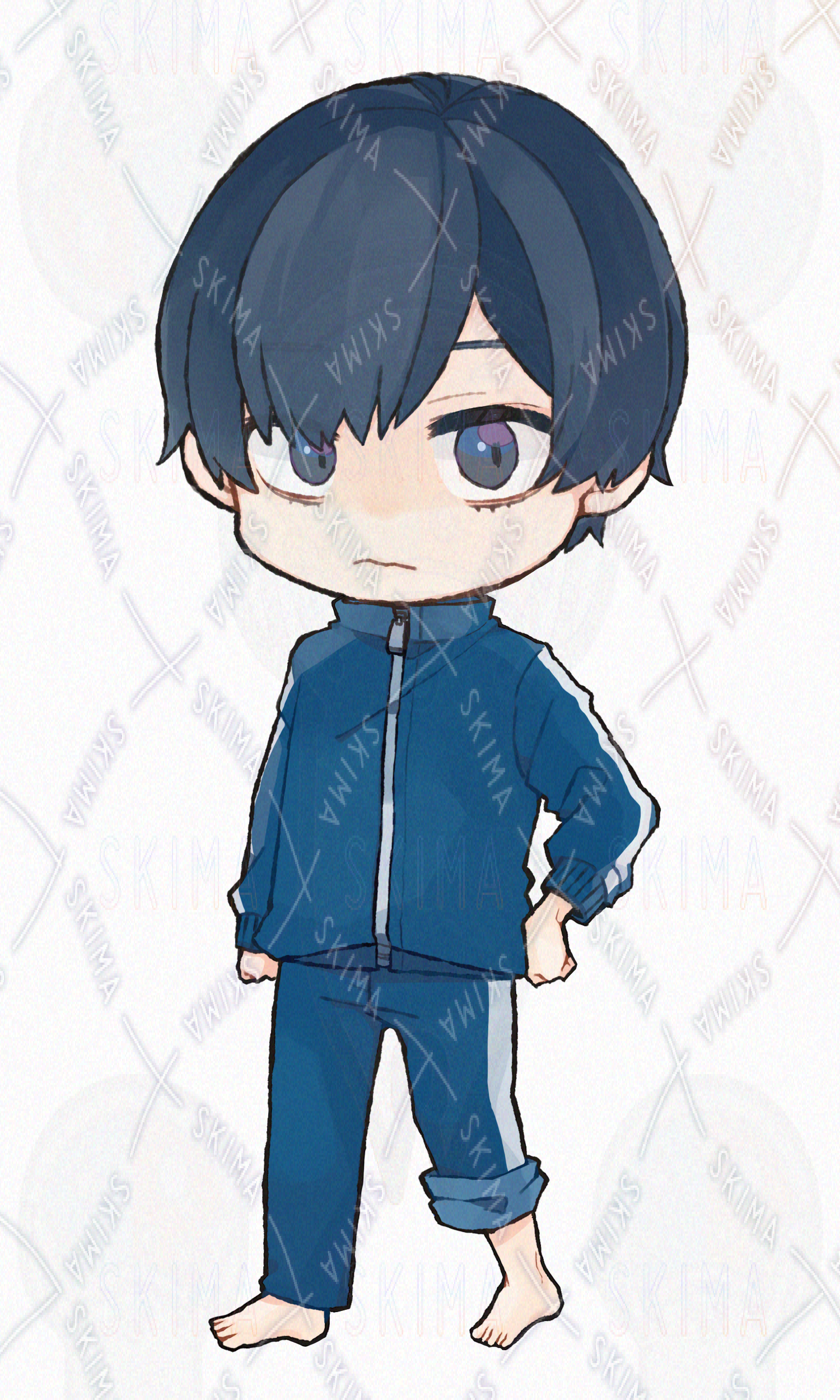 ミニキャラ SDキャラ ジャージ 裸足 青 男の子