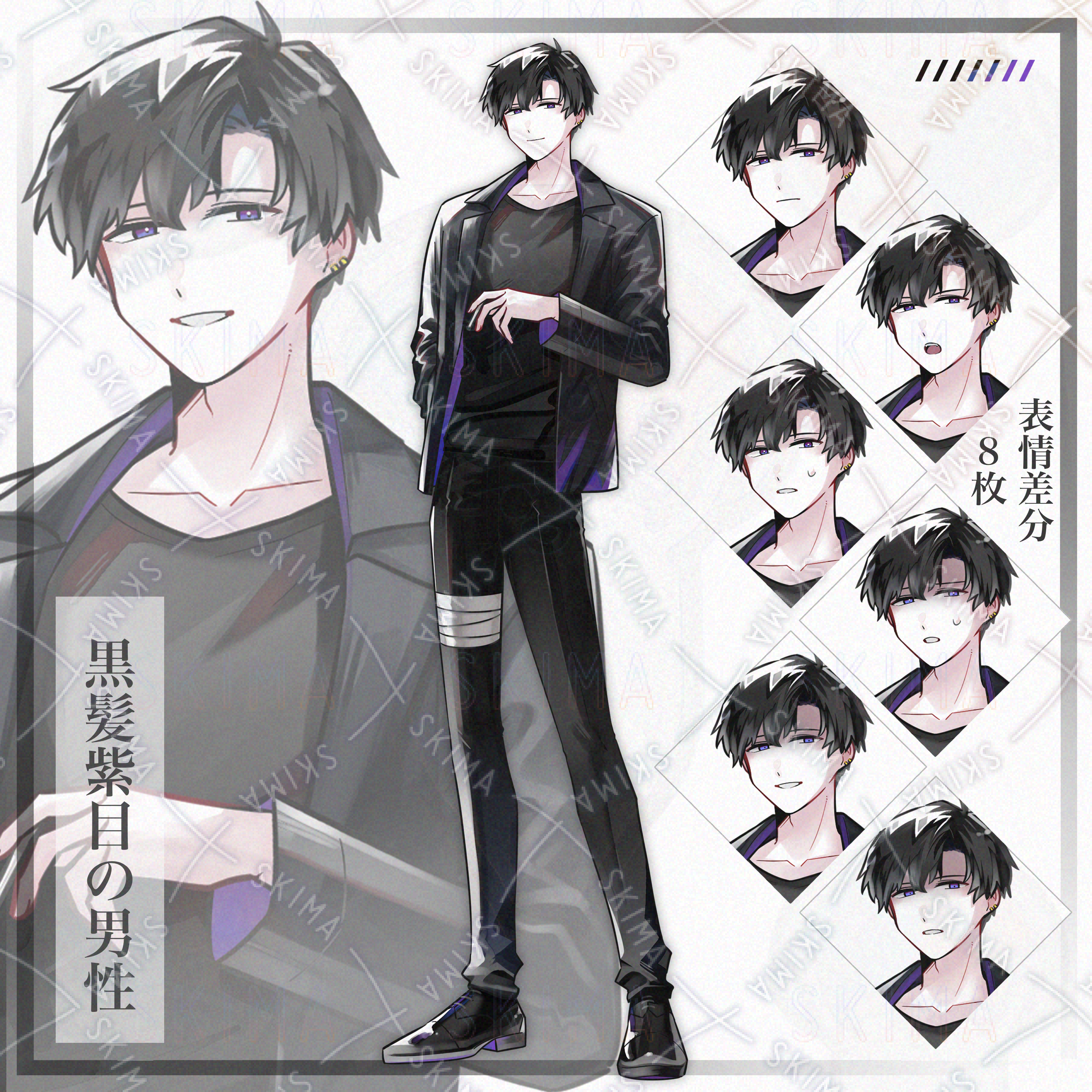 【全身立ち絵】黒髪紫目の男性