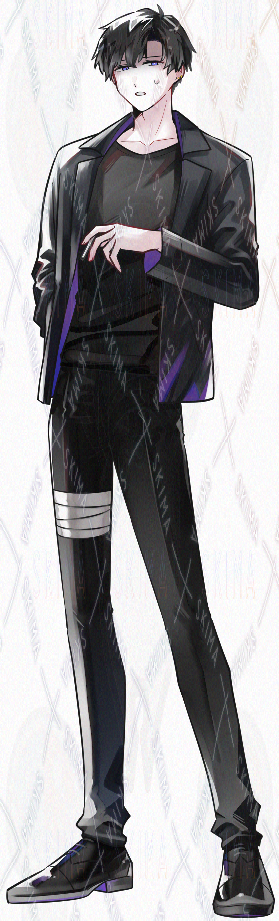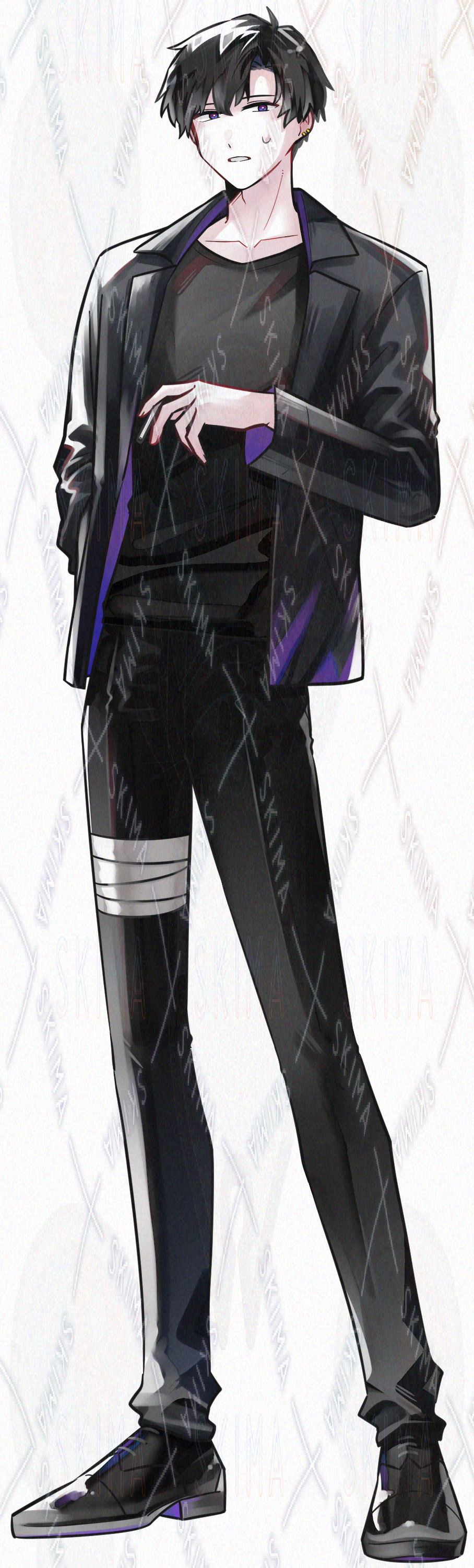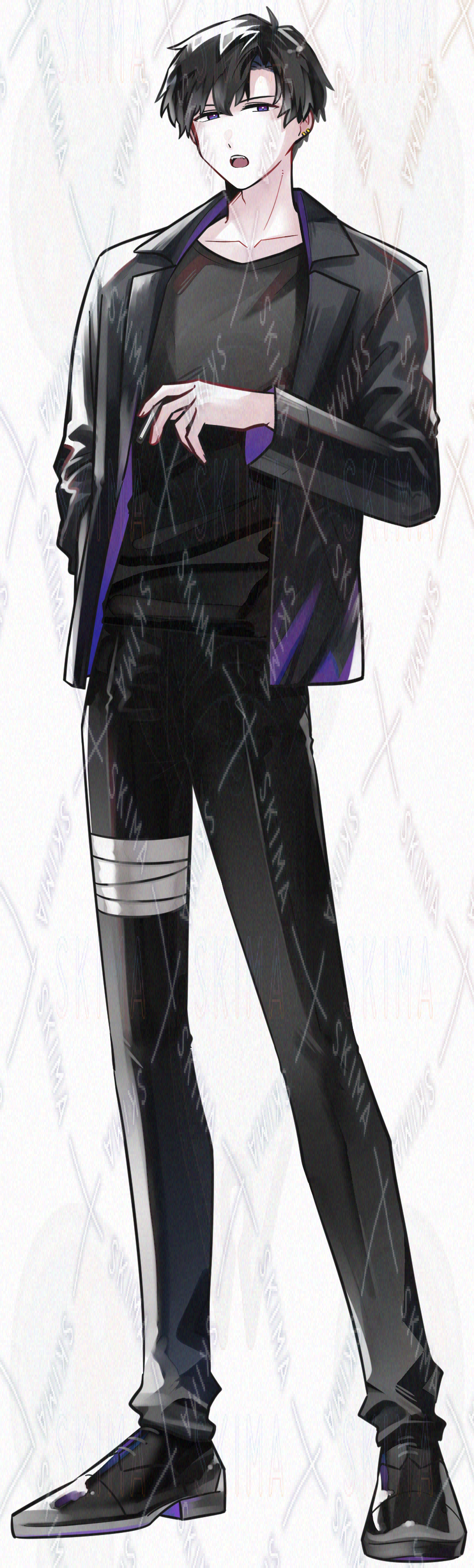 ジャケット/革靴/黒髪/短髪/紫眼/喫煙/煙草/青年/かっこいい