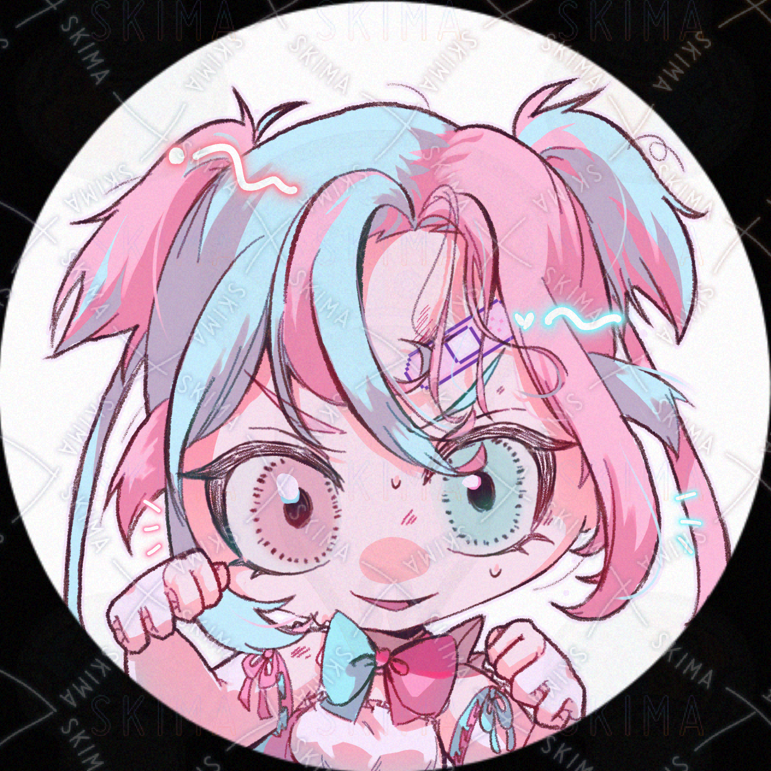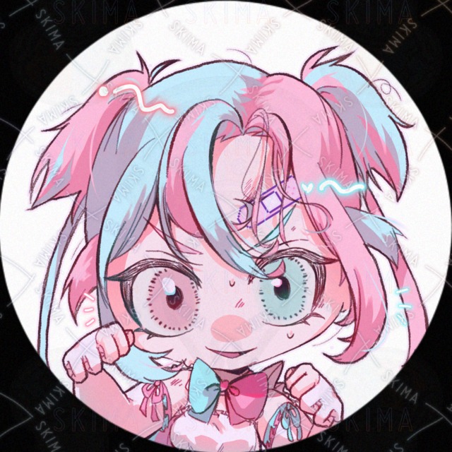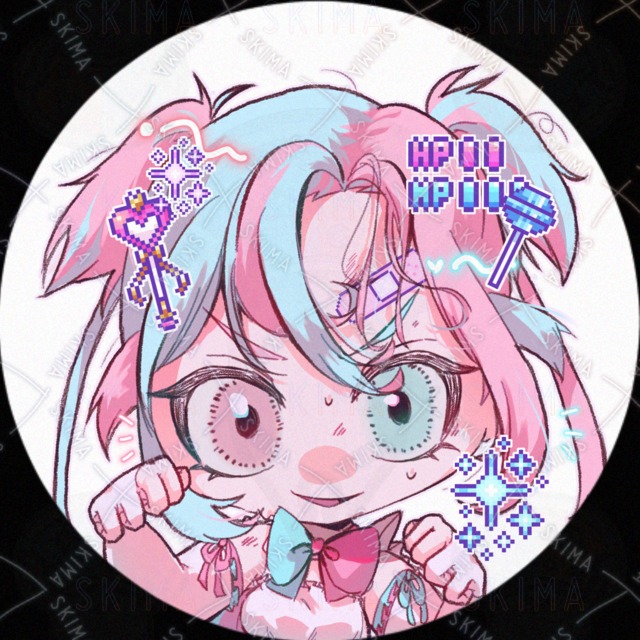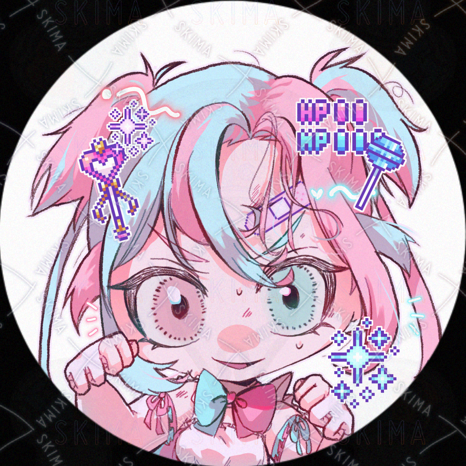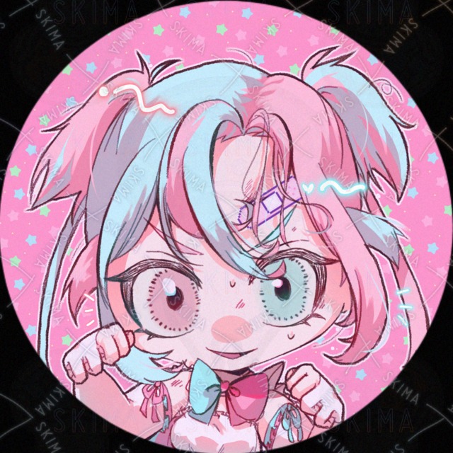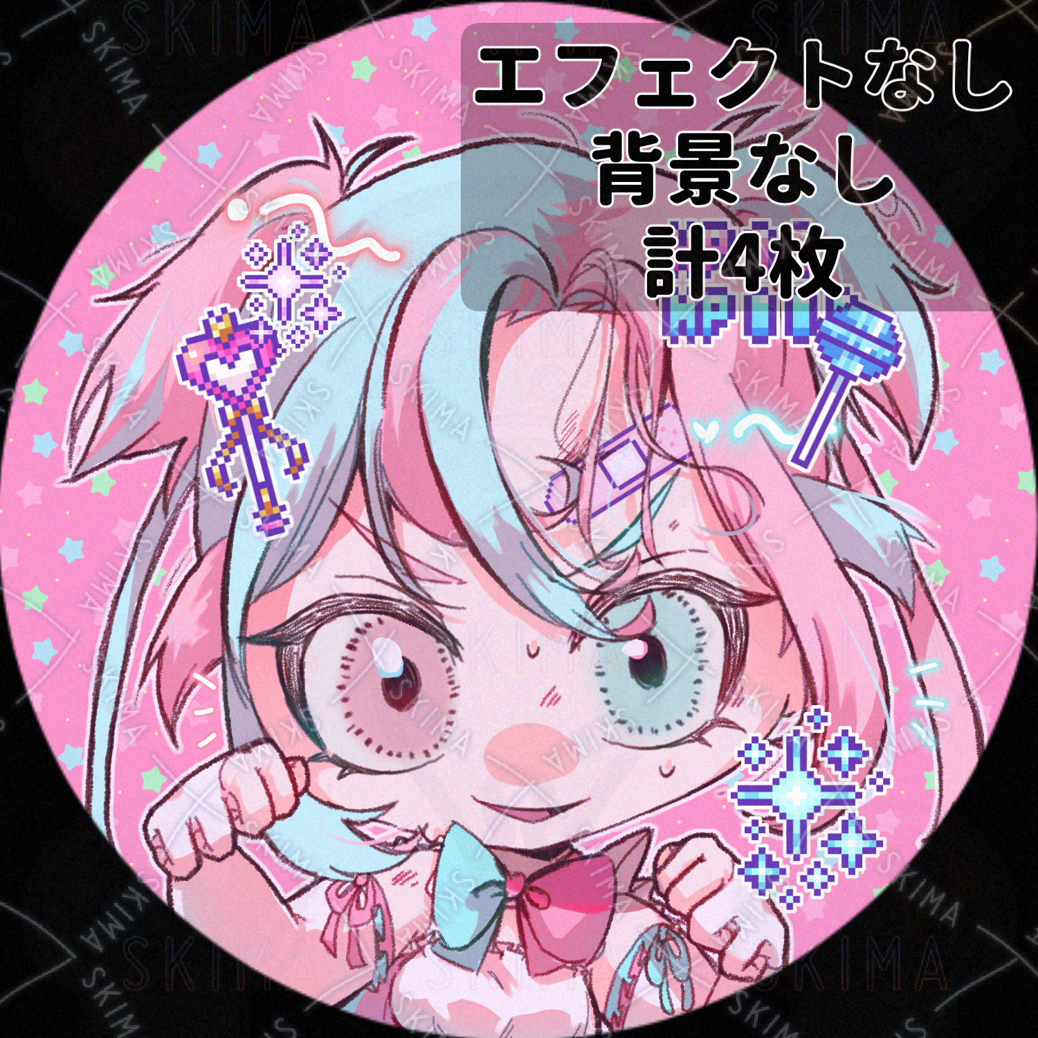 ピンク/水色/少女/女の子/戦闘/オッドアイ/魔法少女/デフォルメ/