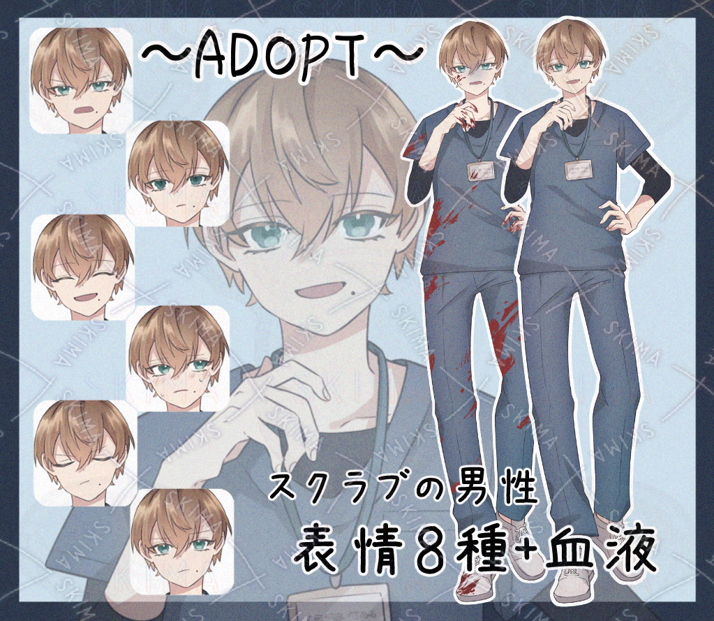 スクラブ男性【表情8種+血1】