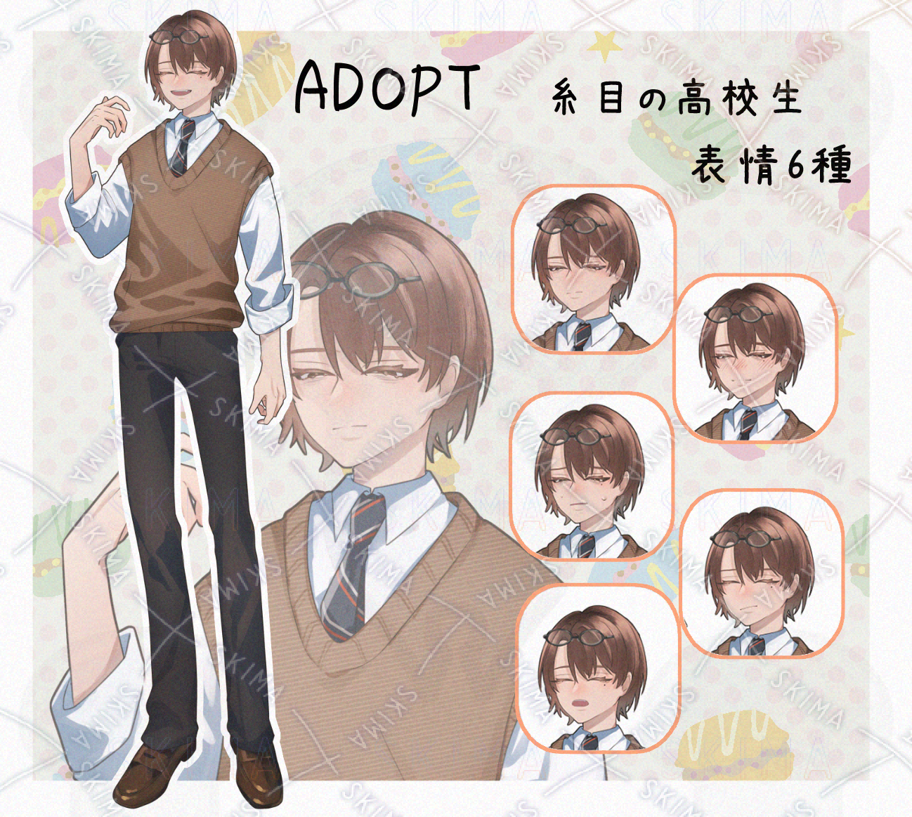 【ADOPT】糸目 高校生【表情6種】