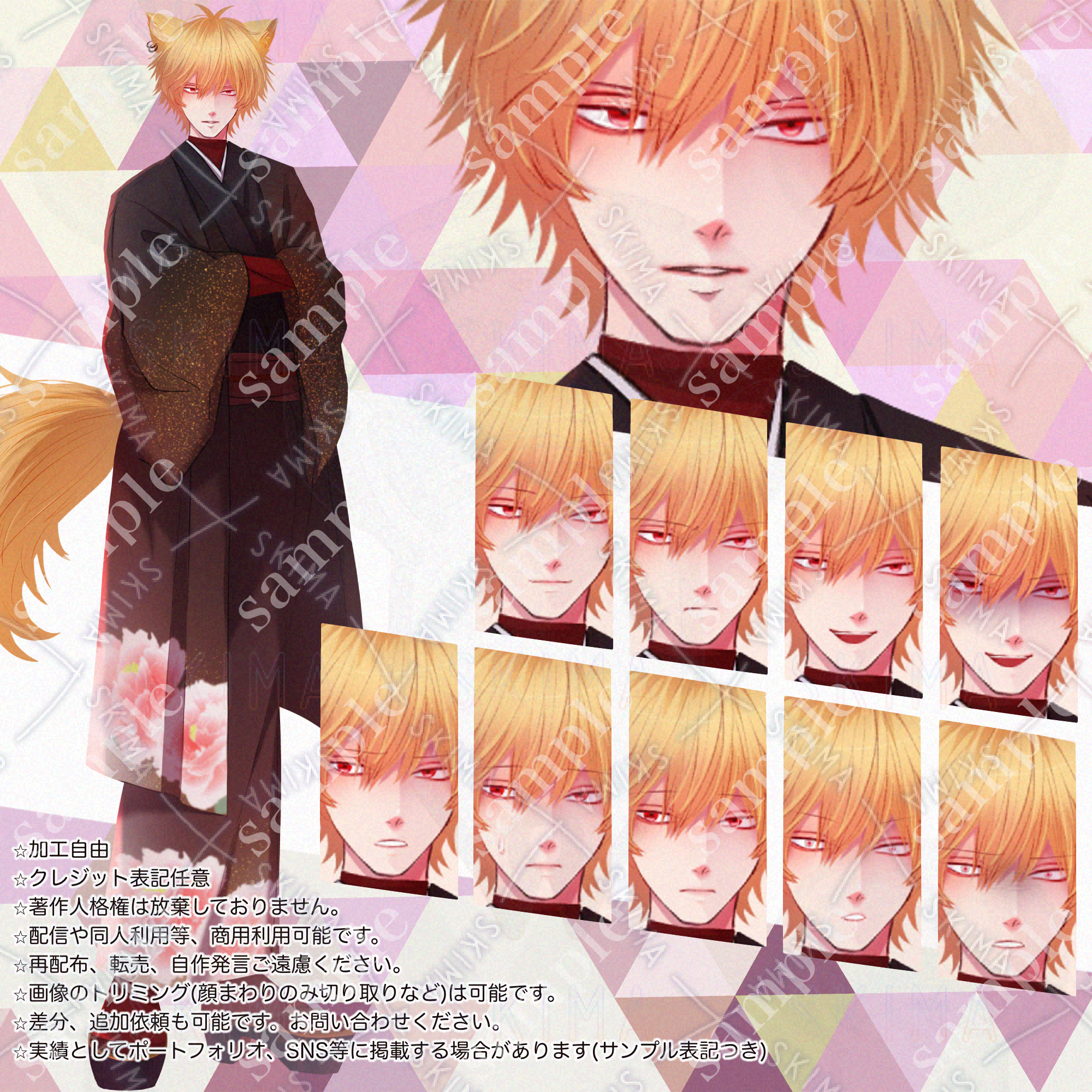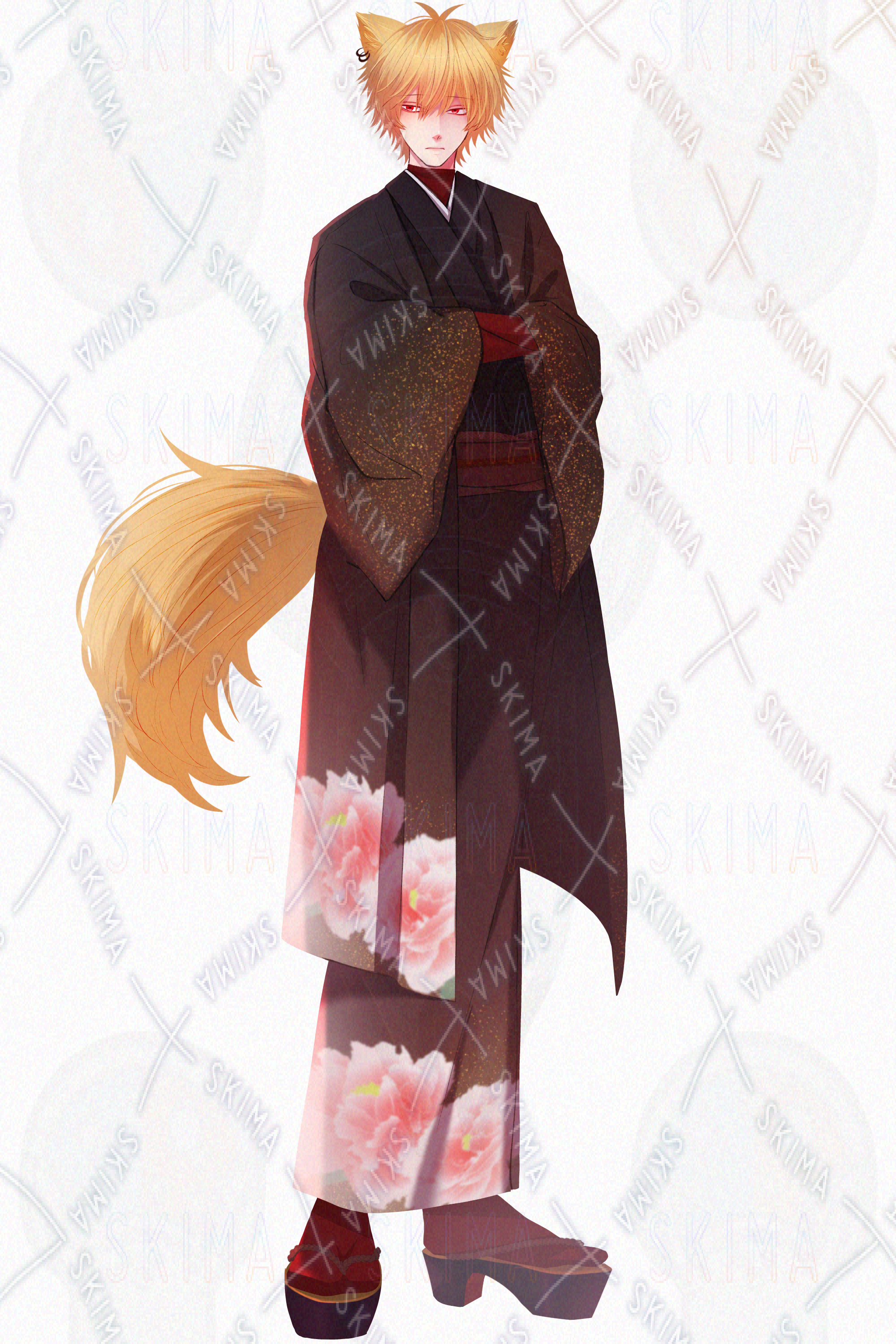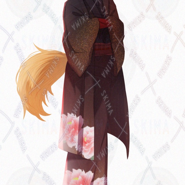 青年 和服 着物 狐 ピアス ケモミミ 尻尾 TRPG