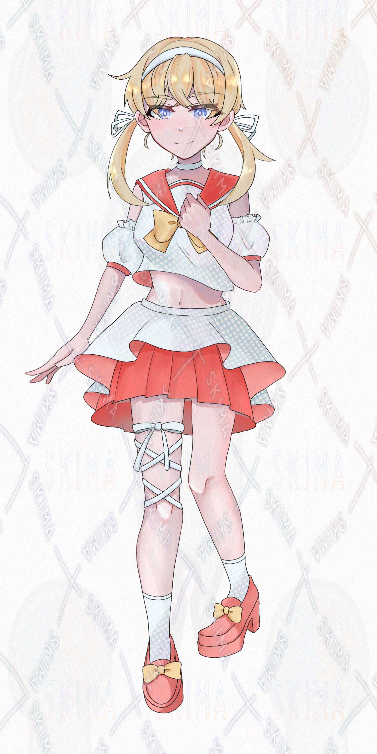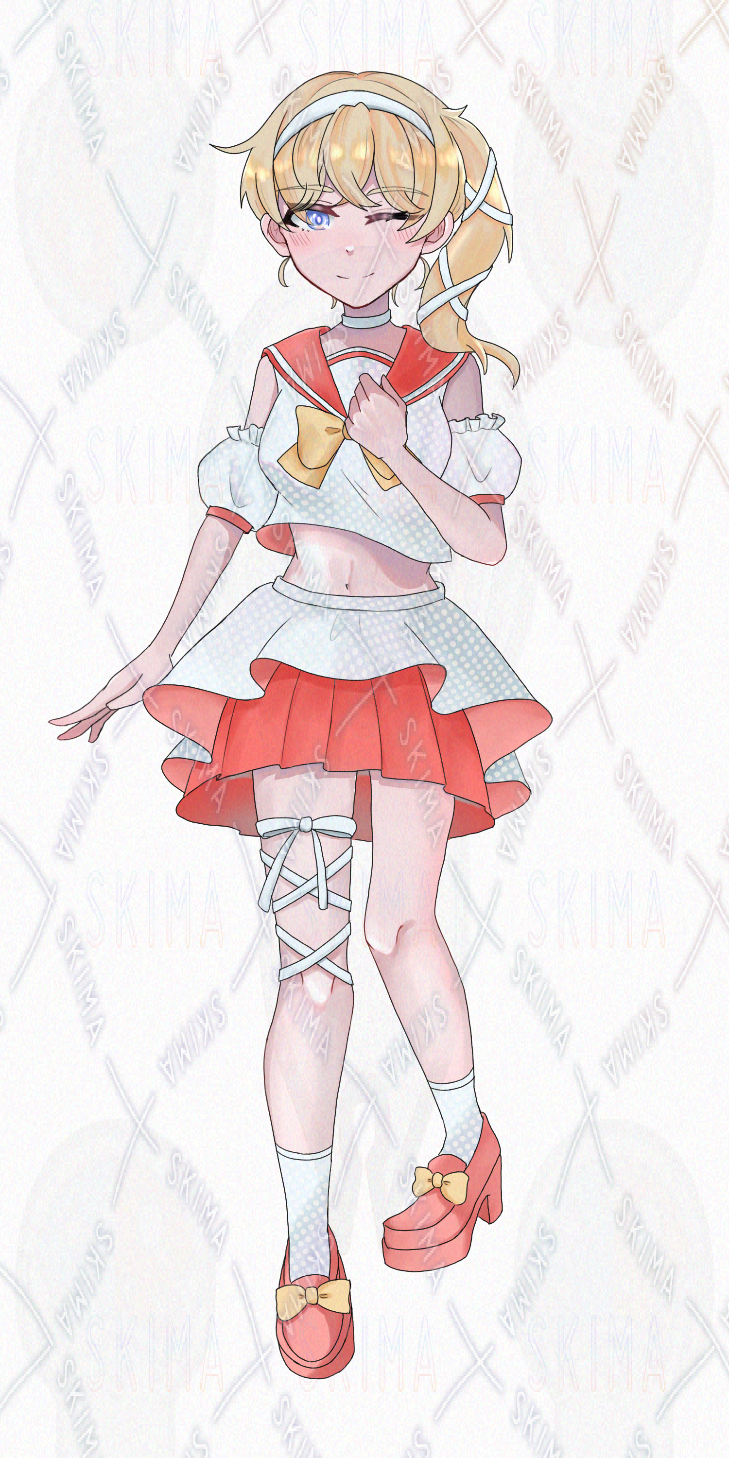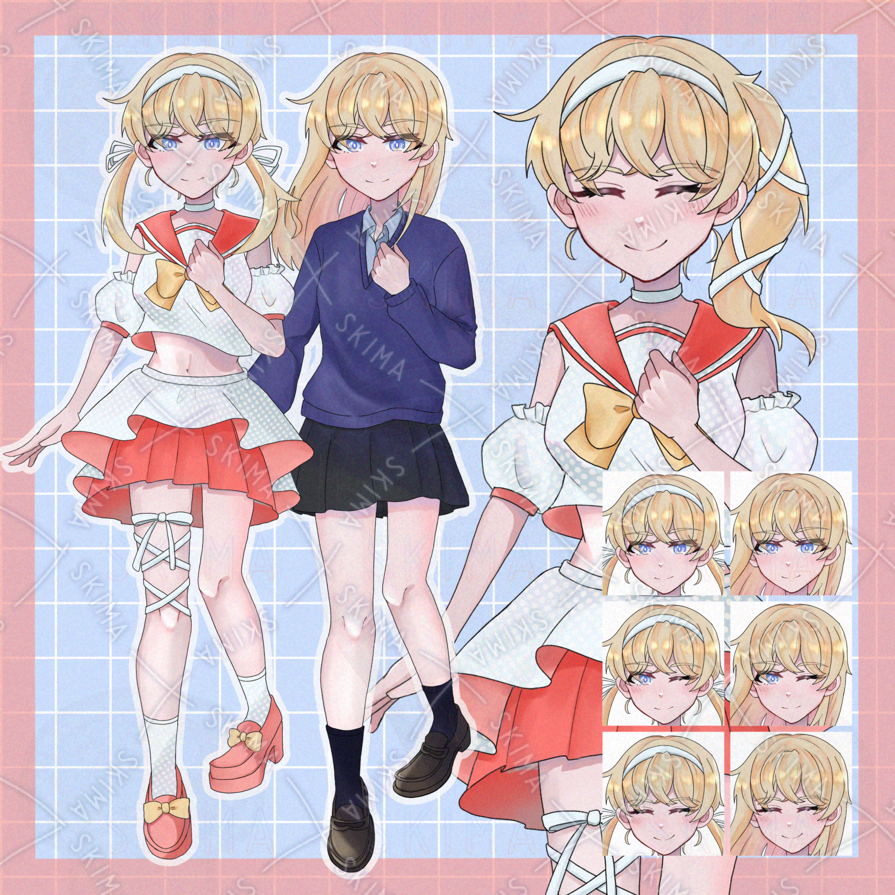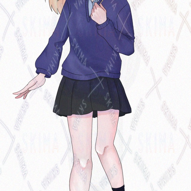 女の子 高校生 中学生 アイドル セーラー セーター 制服 リボン 金髪