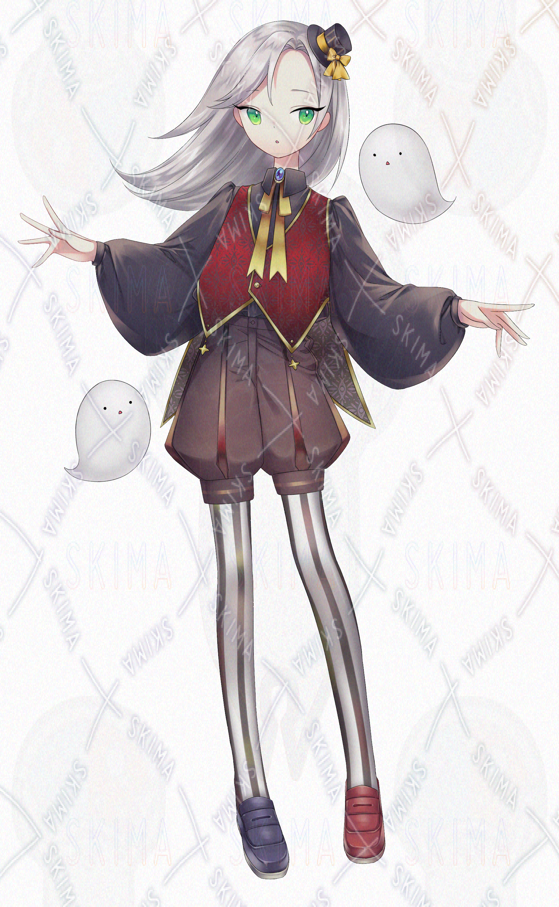 少女/女の子/白髪/銀髪/緑目/ボーイッシュ/ショートパンツ/幽霊/ホラー/