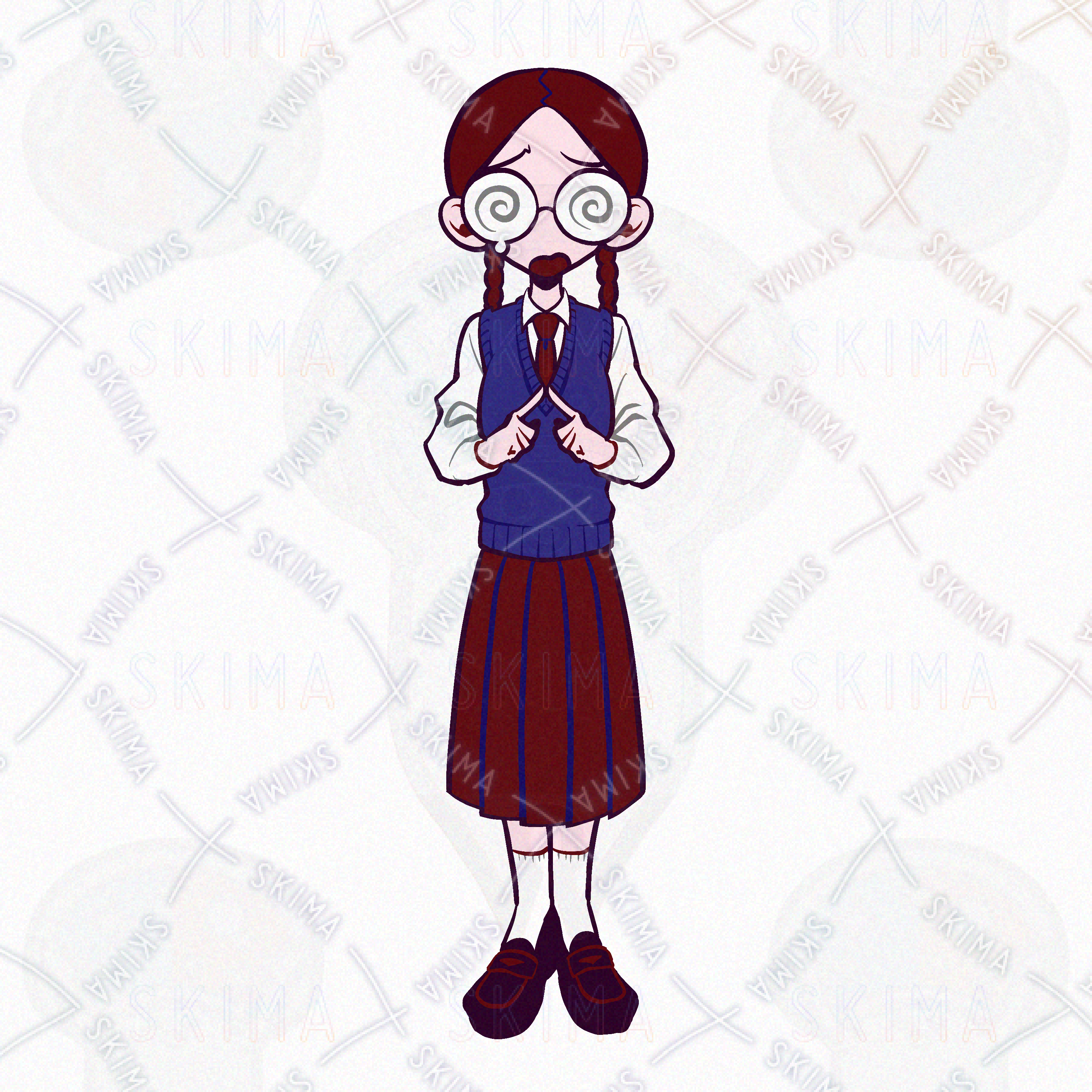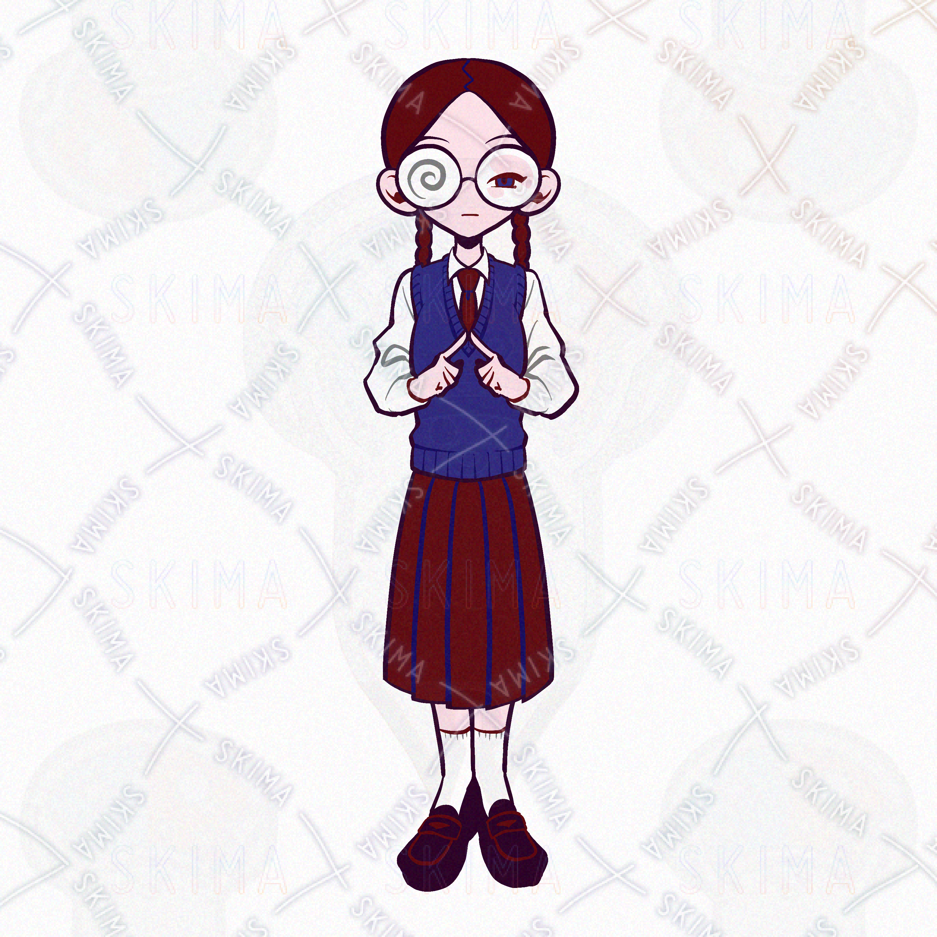 検索用/少女/女性/女の子/おさげ/三つ編み/真面目/女子高生/JK/制服/委員長/ネクタイ/ローファー/瓶底眼鏡