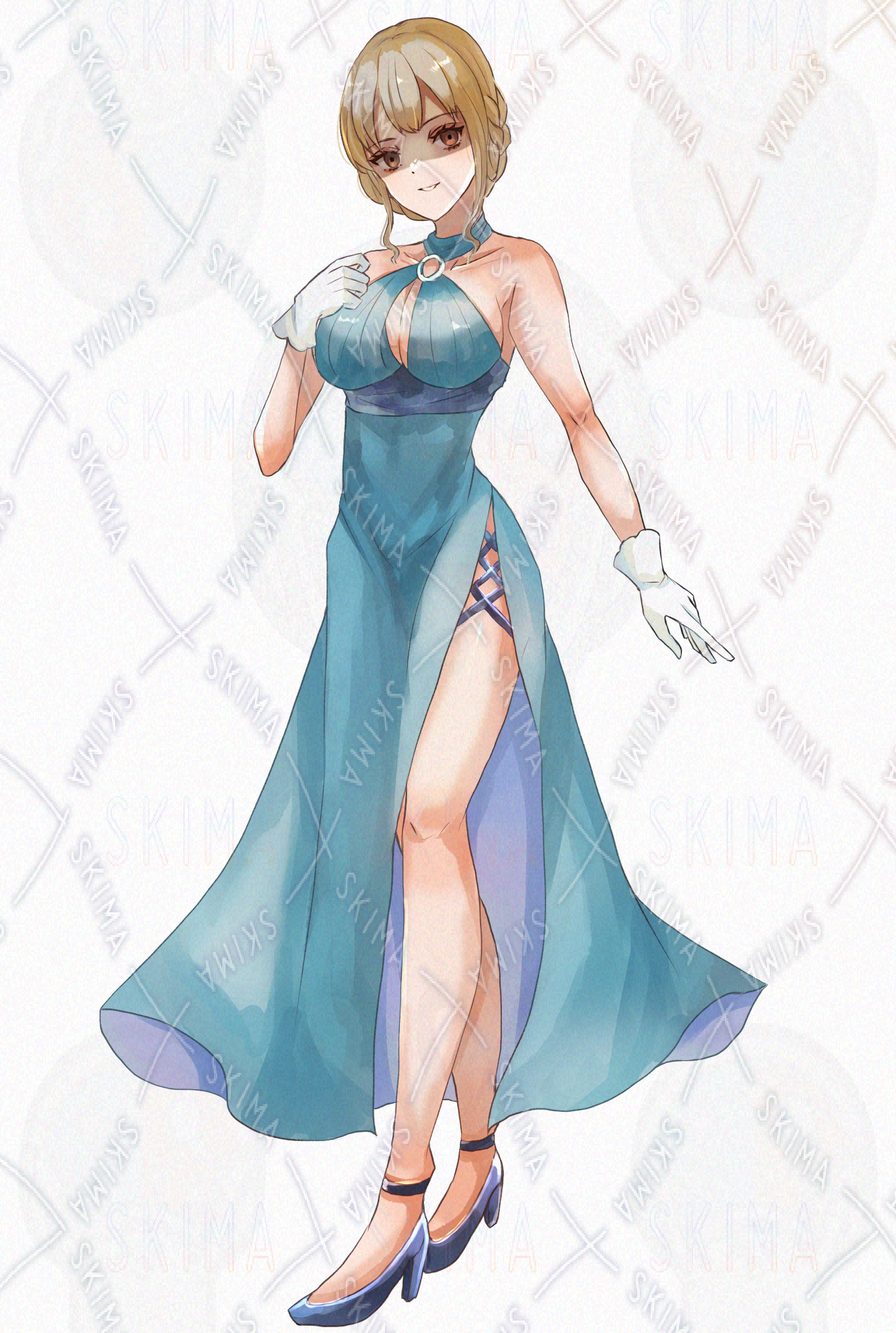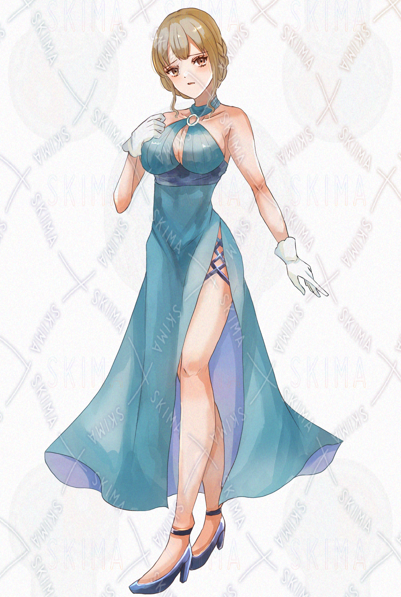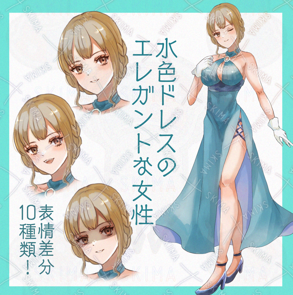 【表情10種】水色ドレスのエレガントな女性