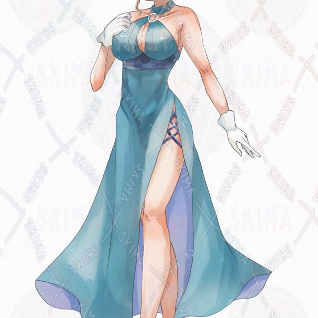 水色のドレスを着た