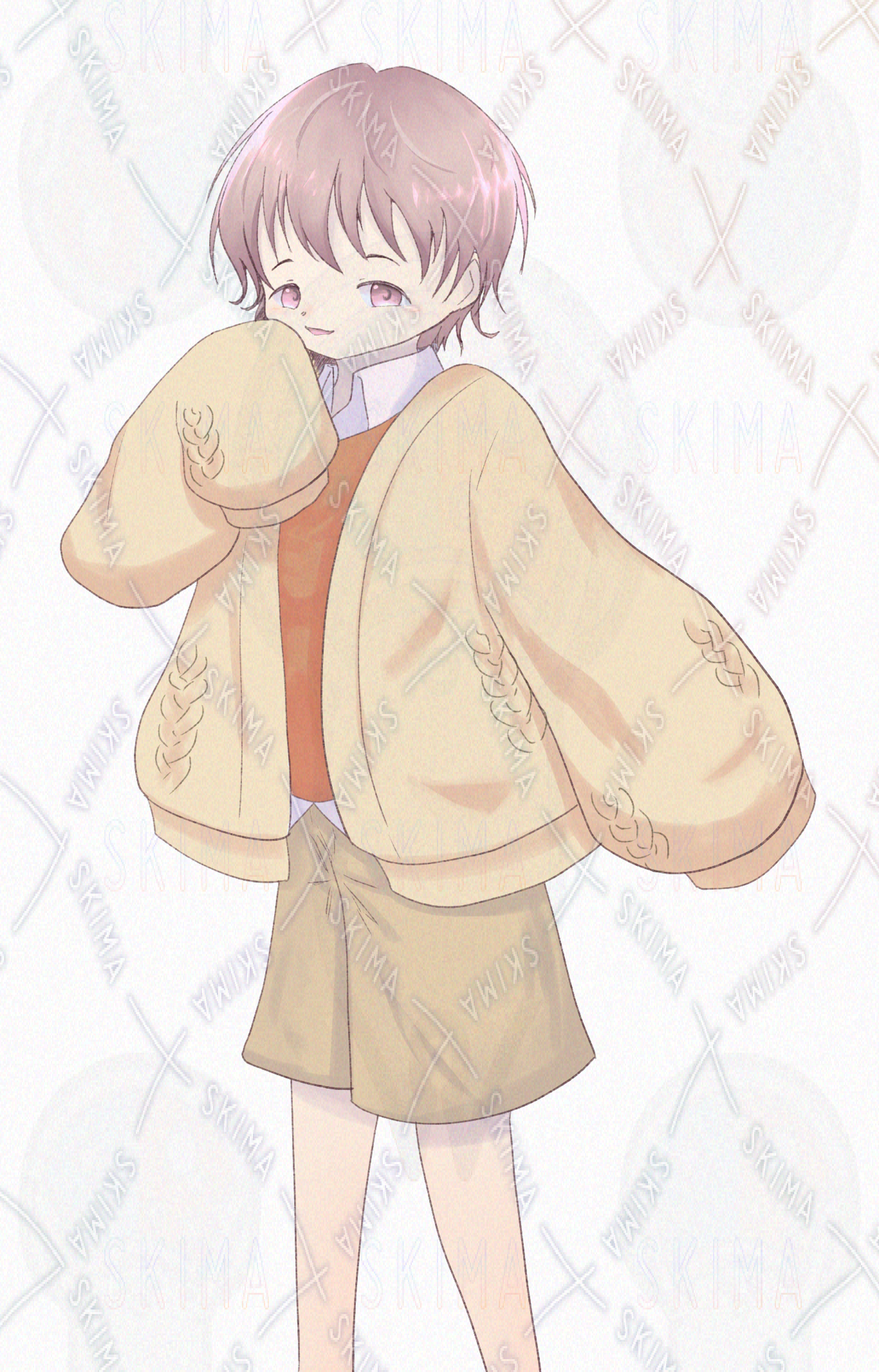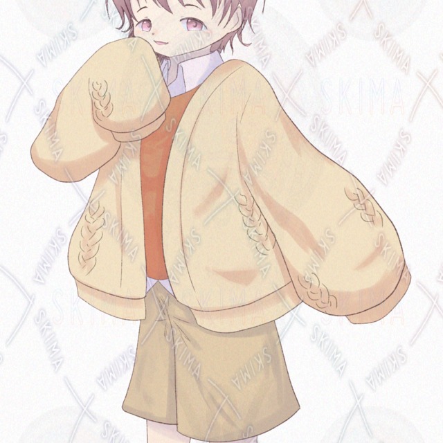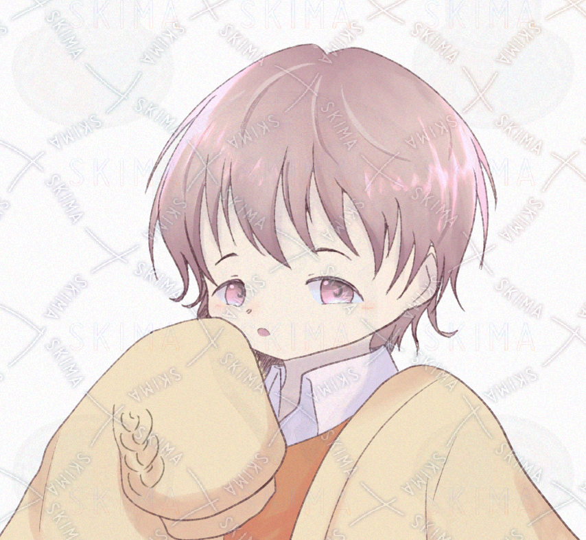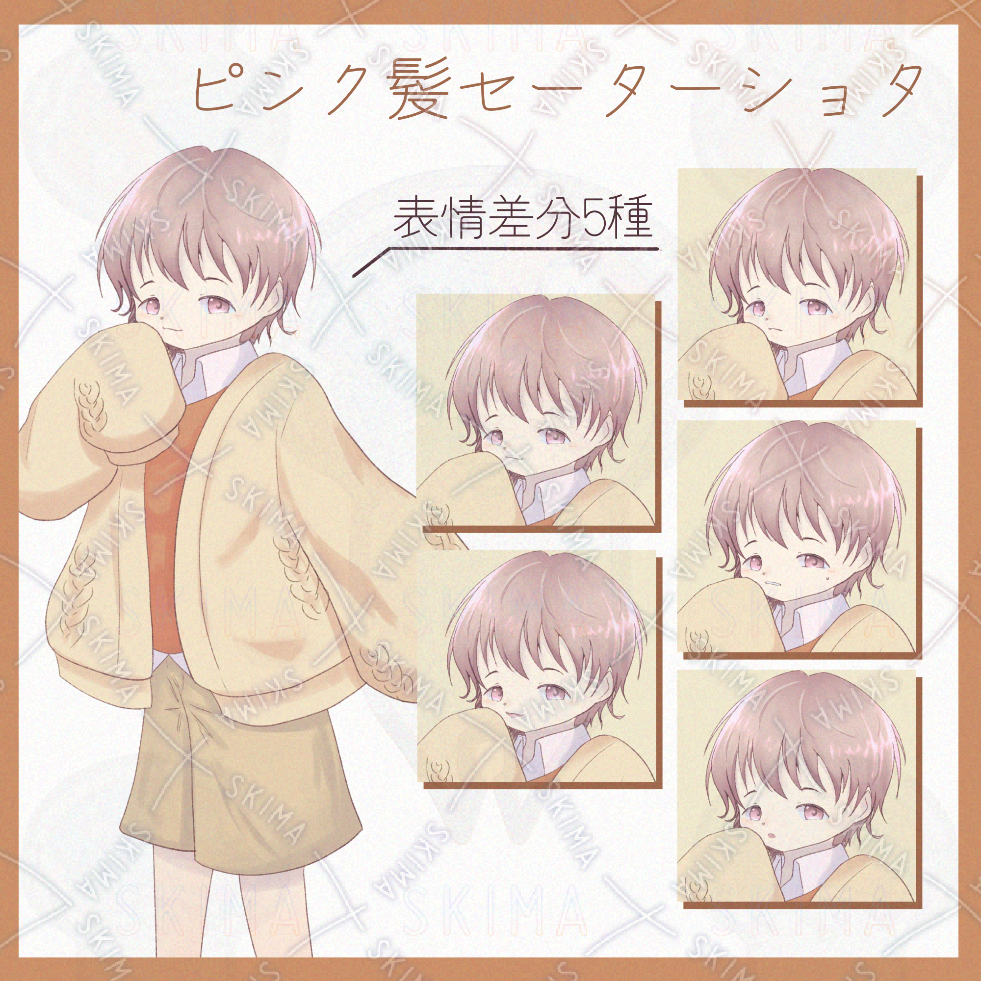 ピンクの髪のセーターを着たショタです。