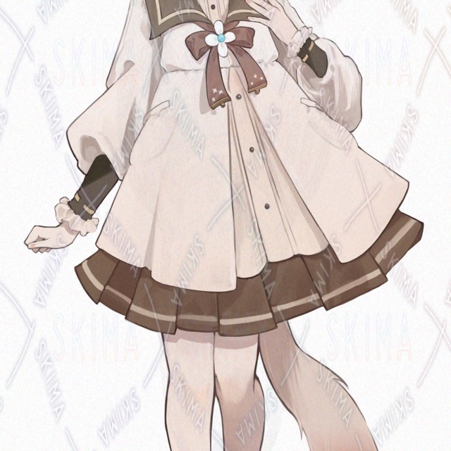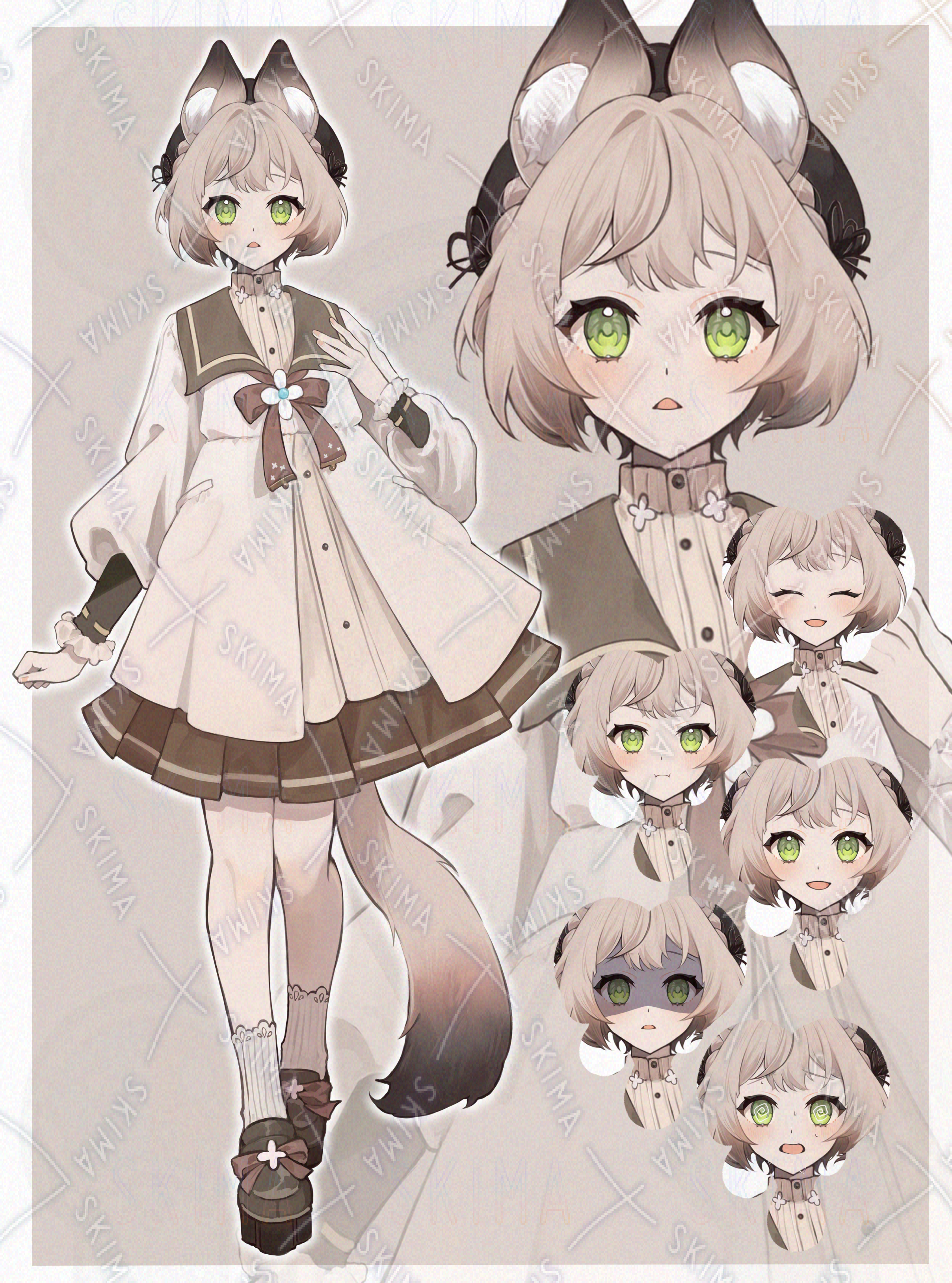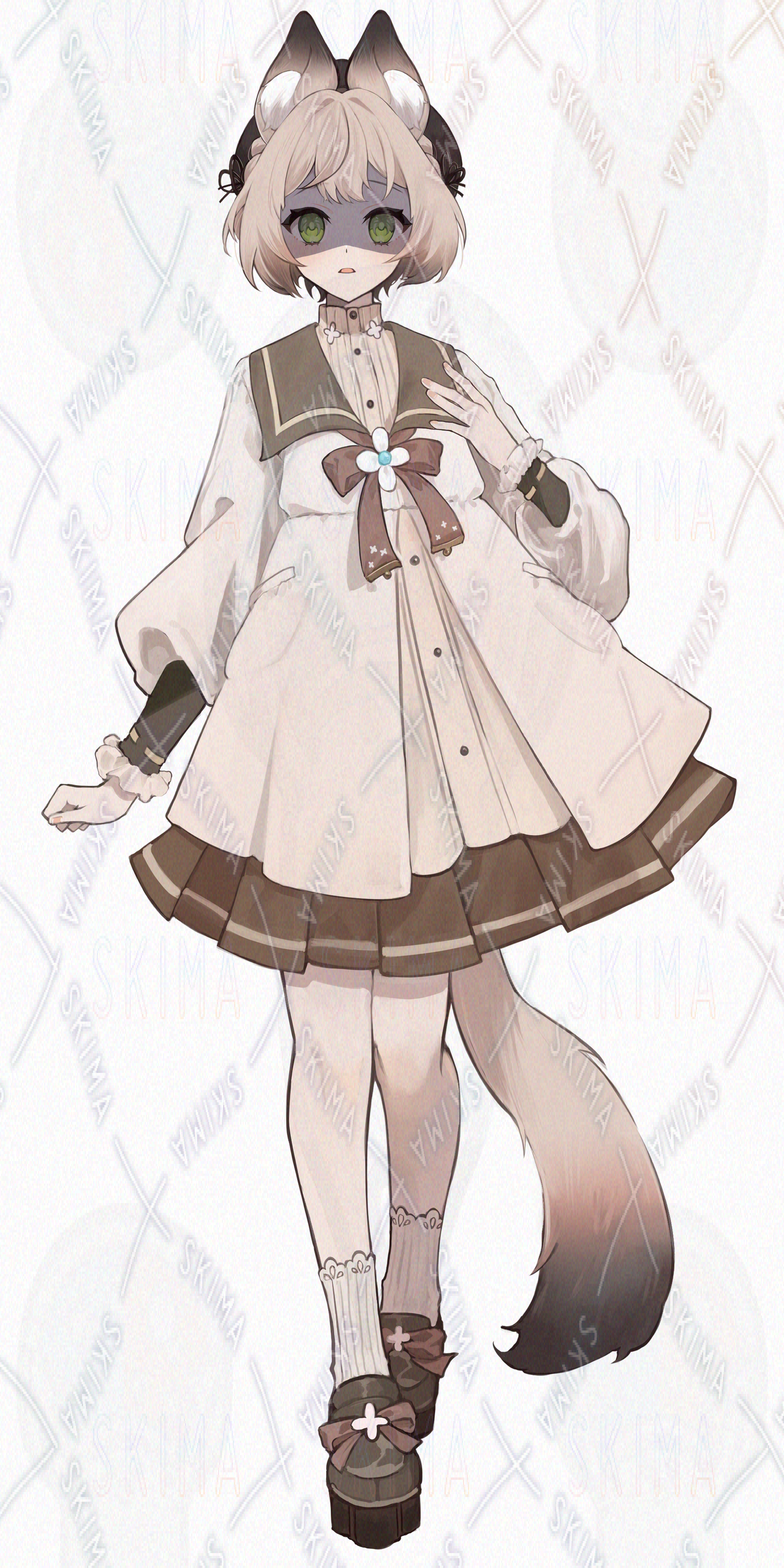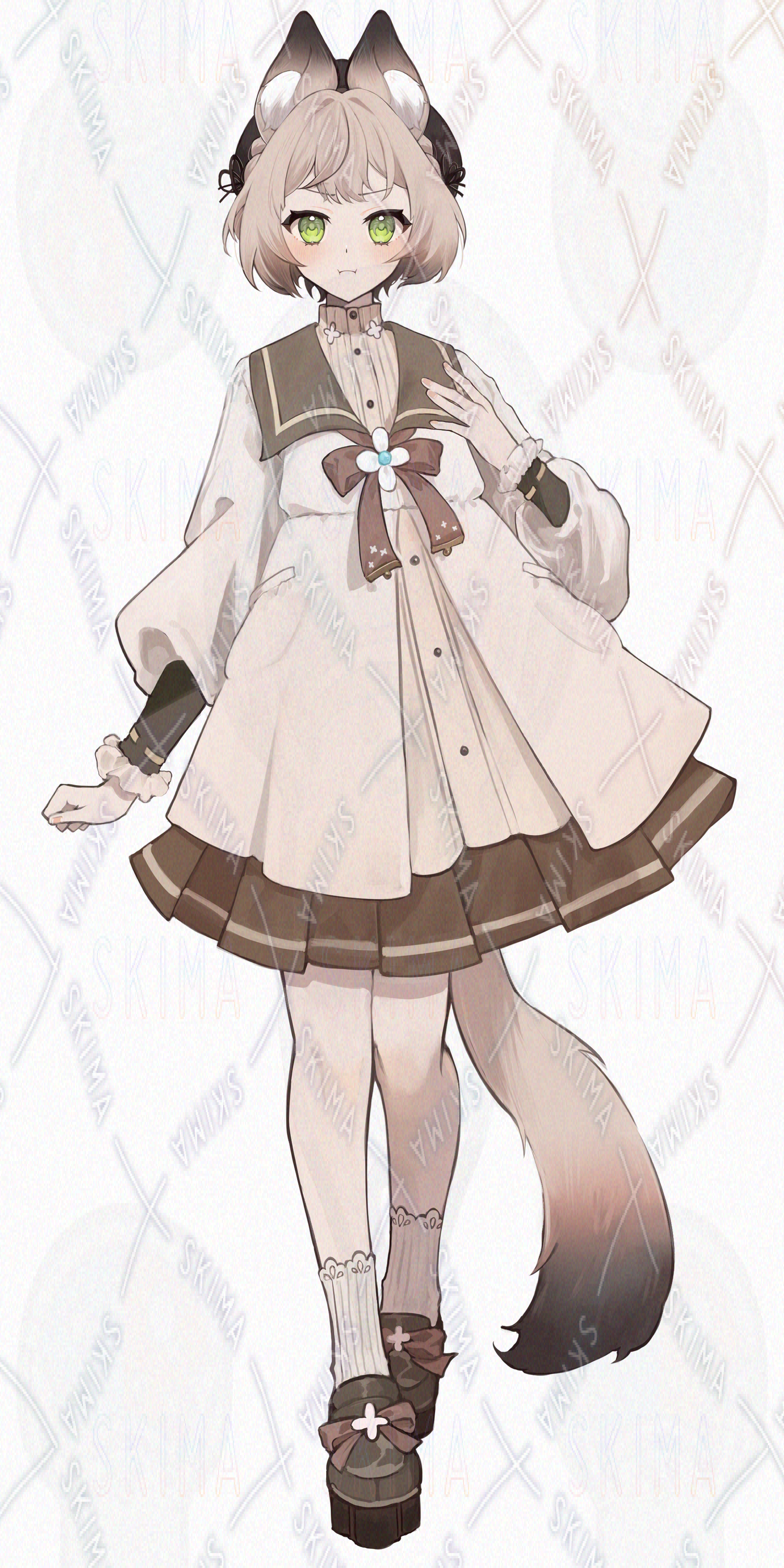 IRIAM対応、猫耳、茶色、ボブ、猫、リボン、ワンピース、緑目、スカート、レース、セーラーワンピース
