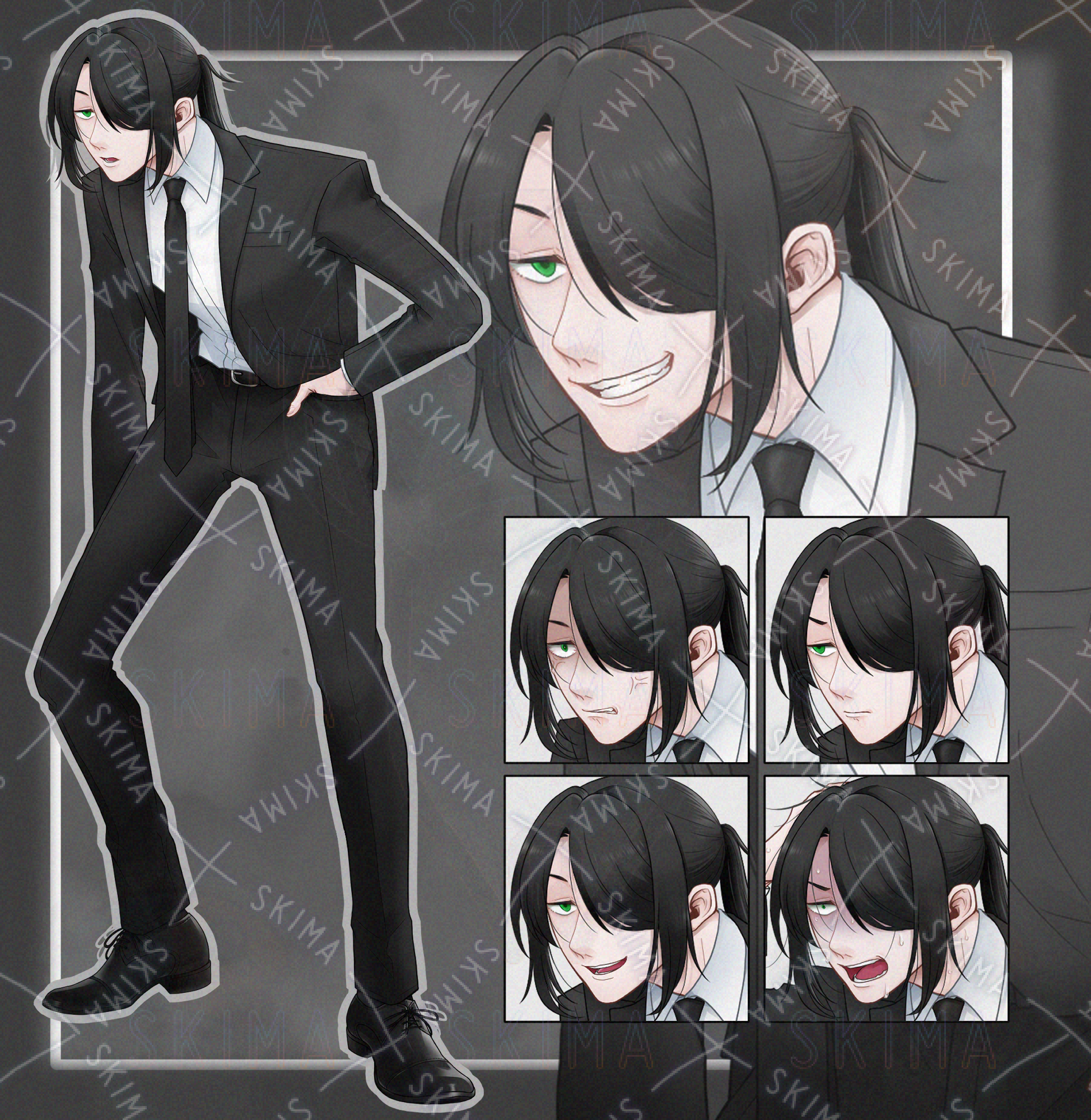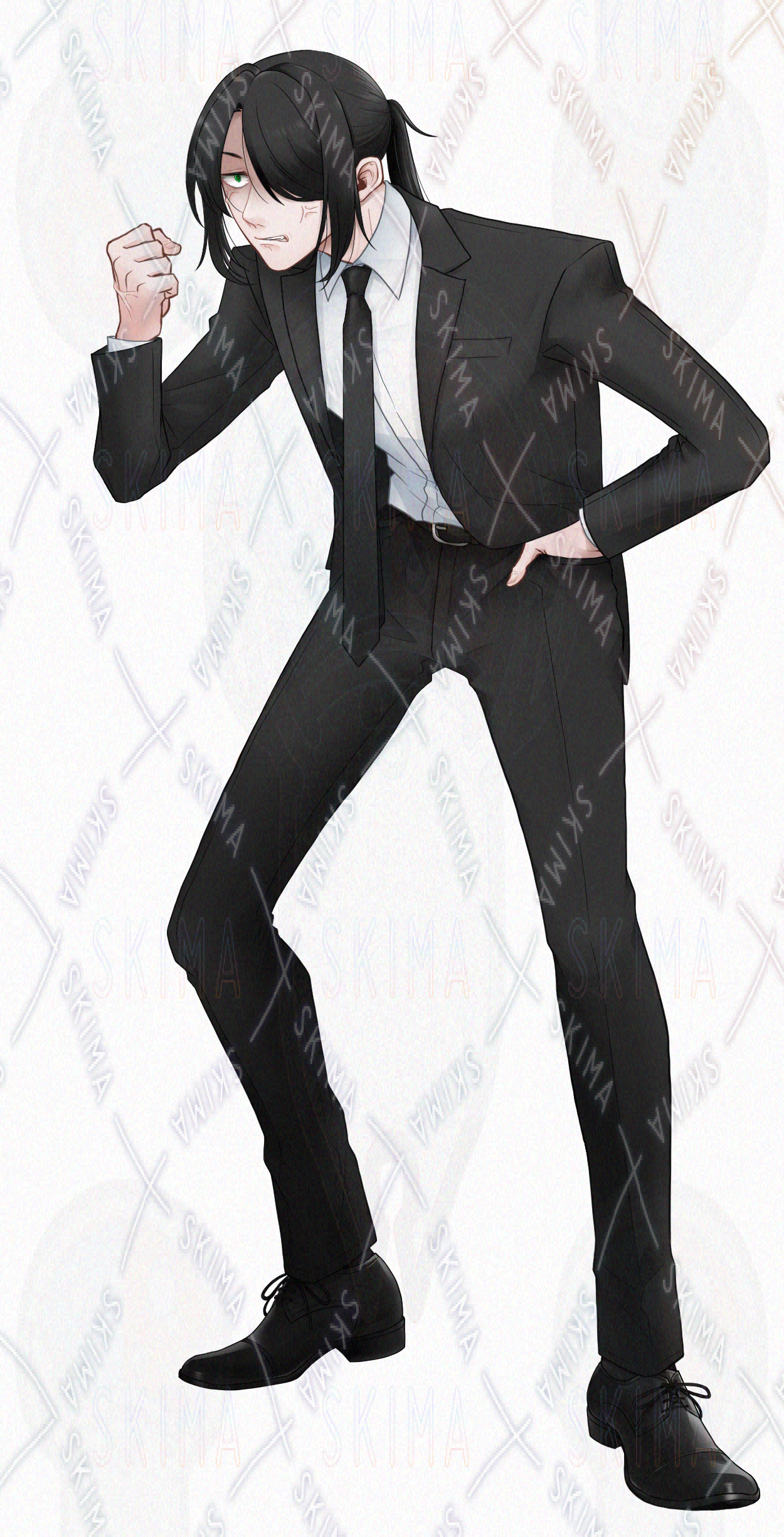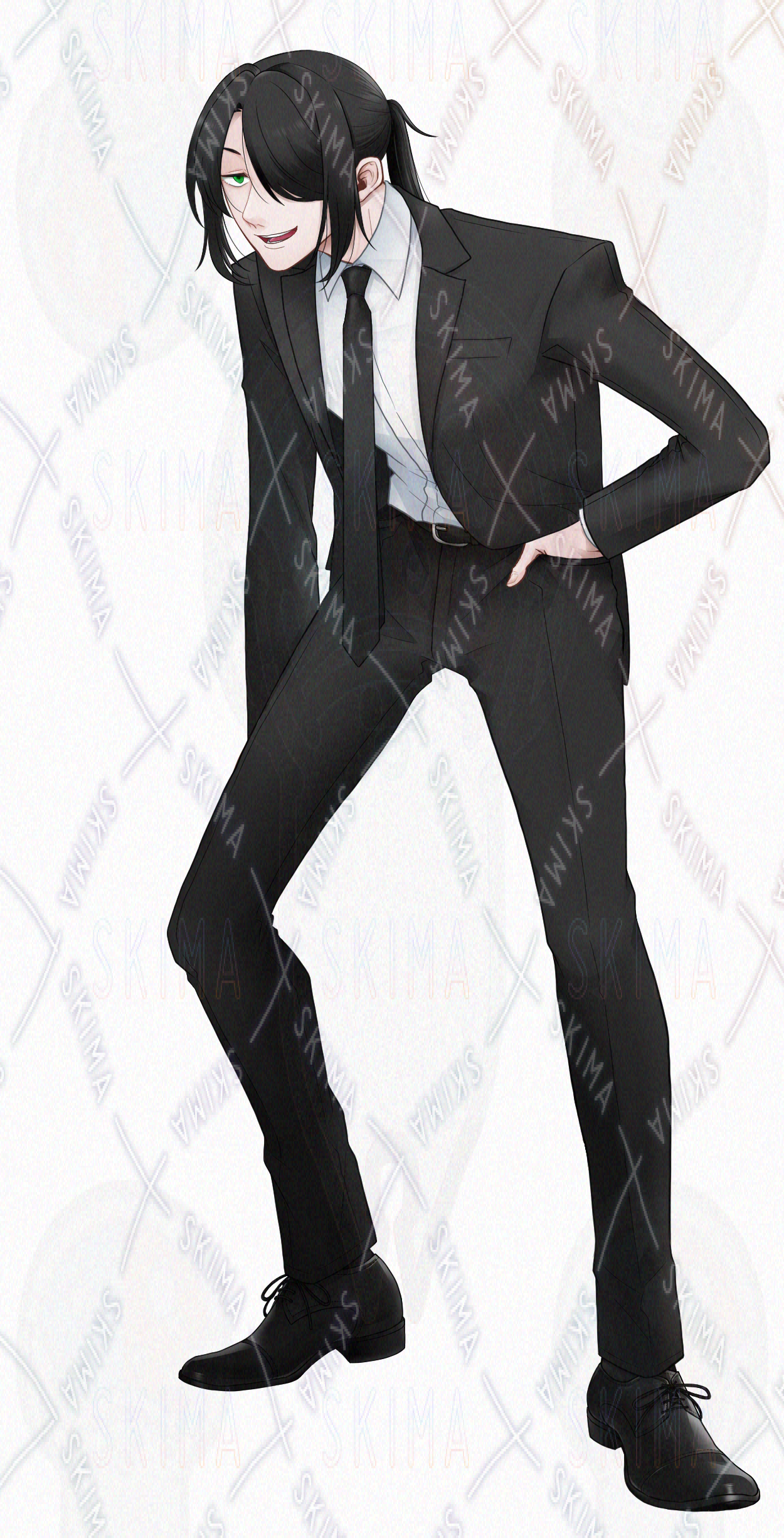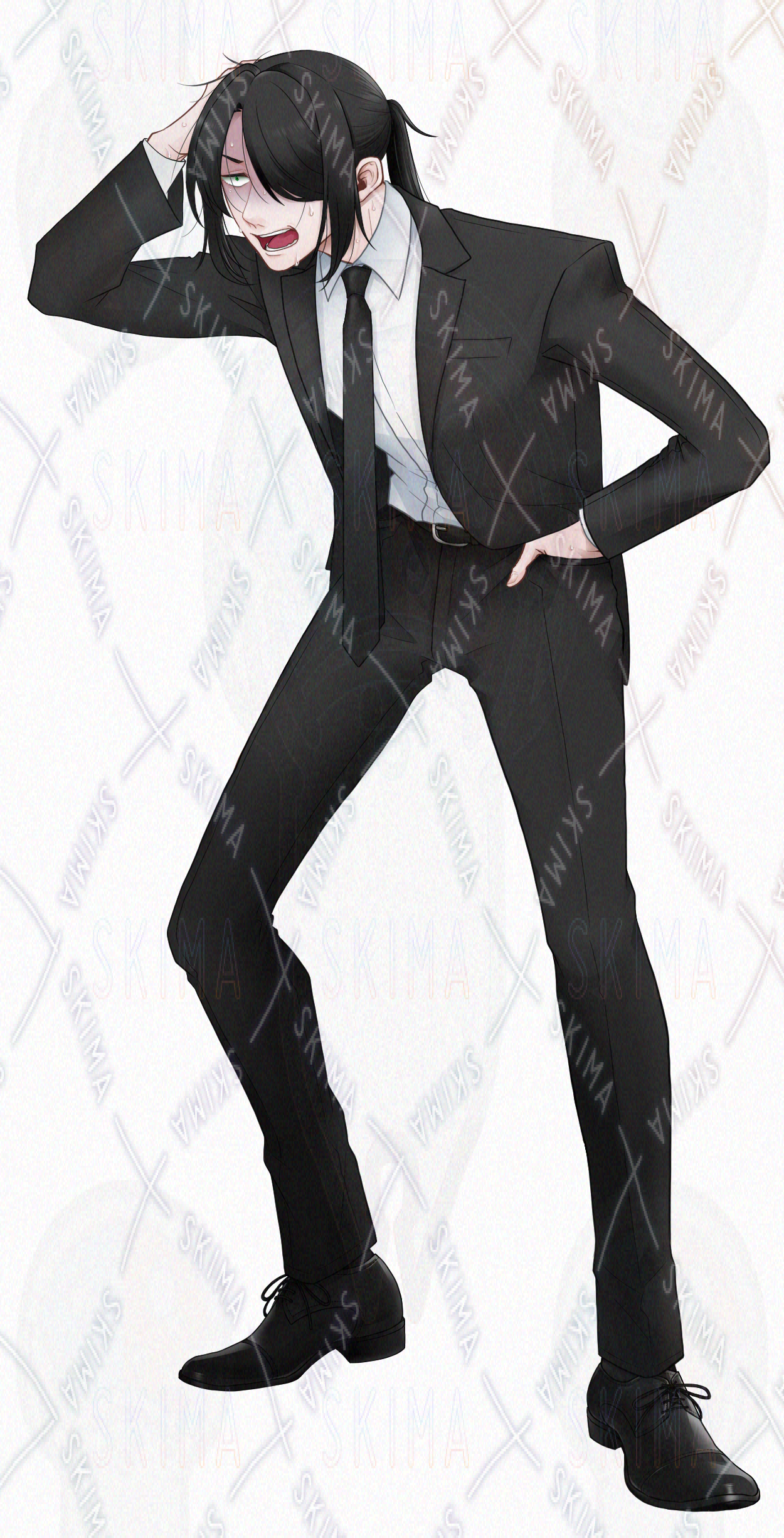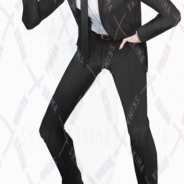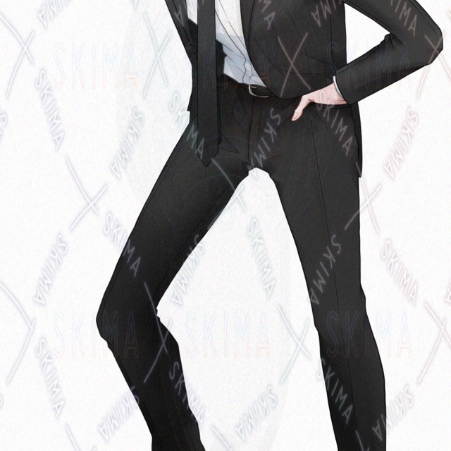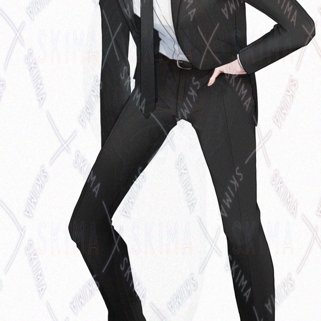 姿勢が悪いスーツの男性の立ち絵です。