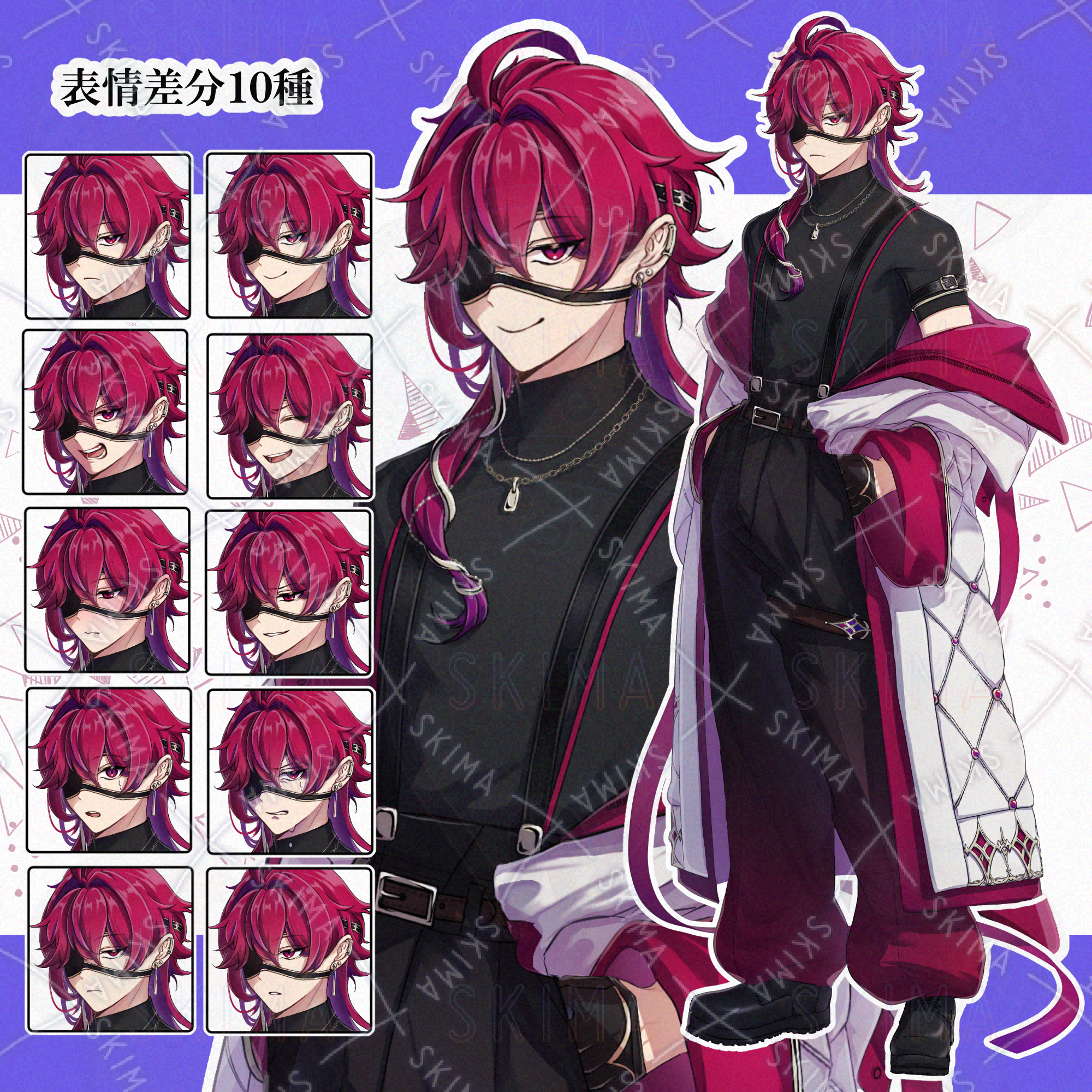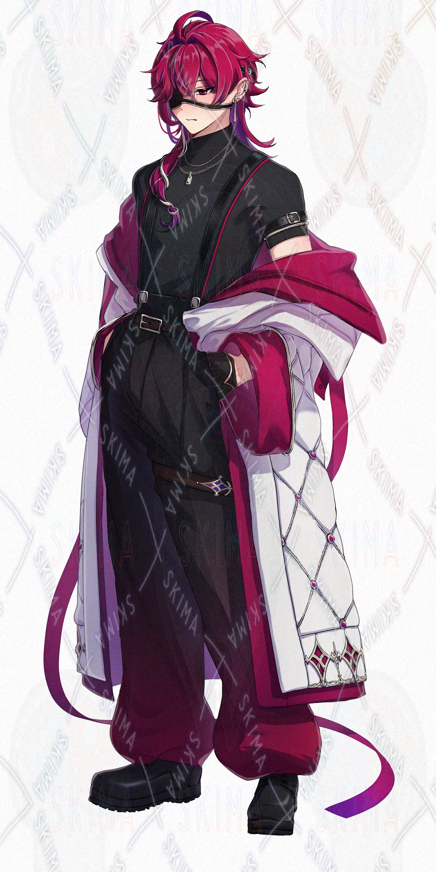 男性/立ち絵/中性的/赤髪/眼帯/隻眼