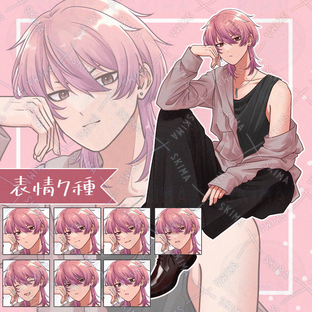 【表情7種】ピンク髪の青年