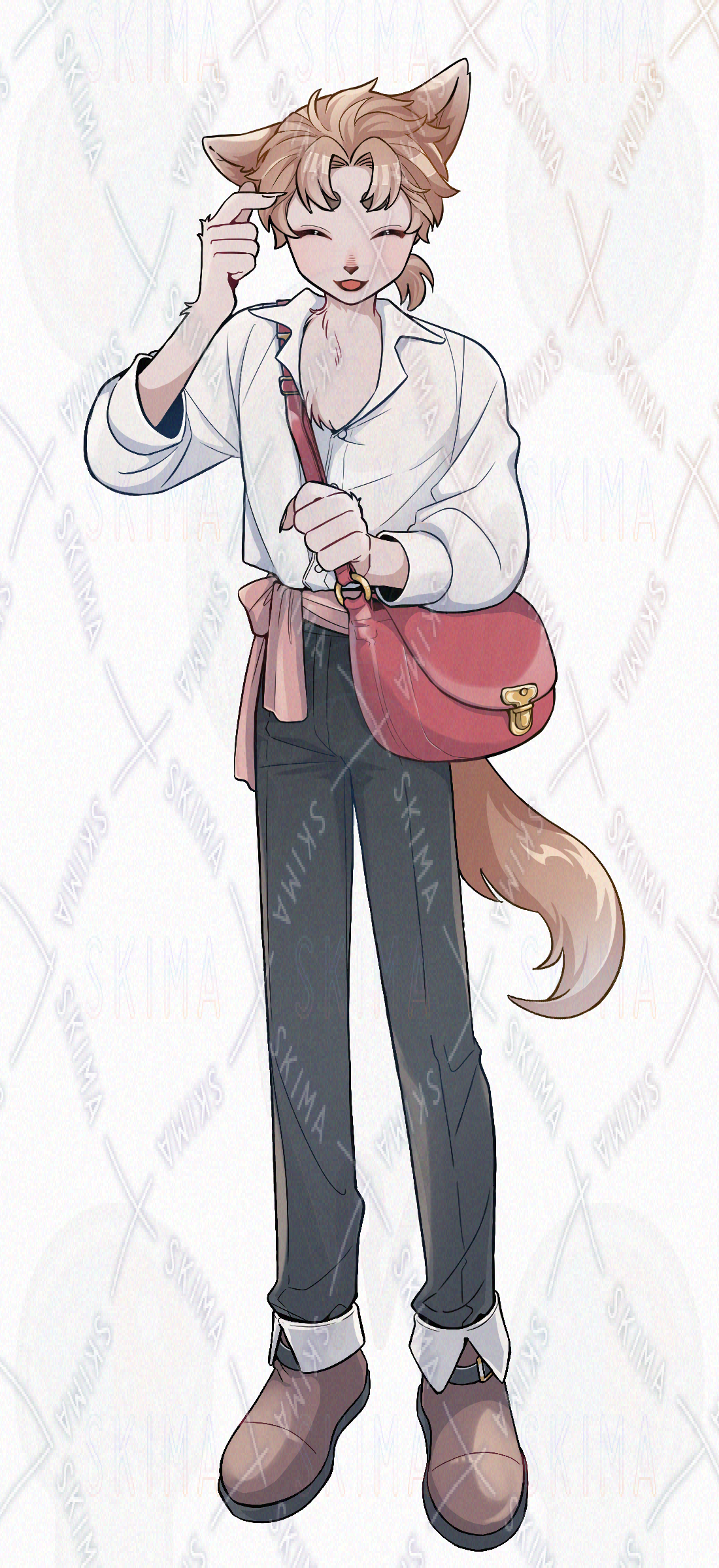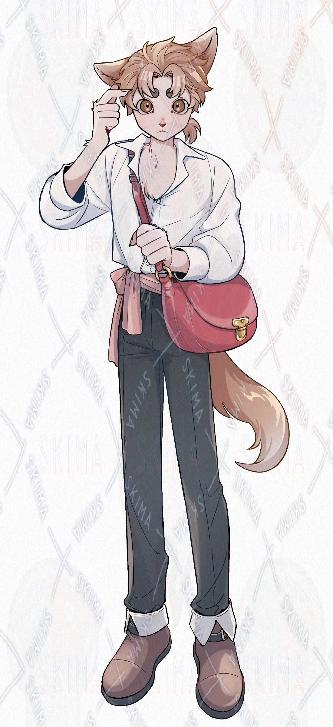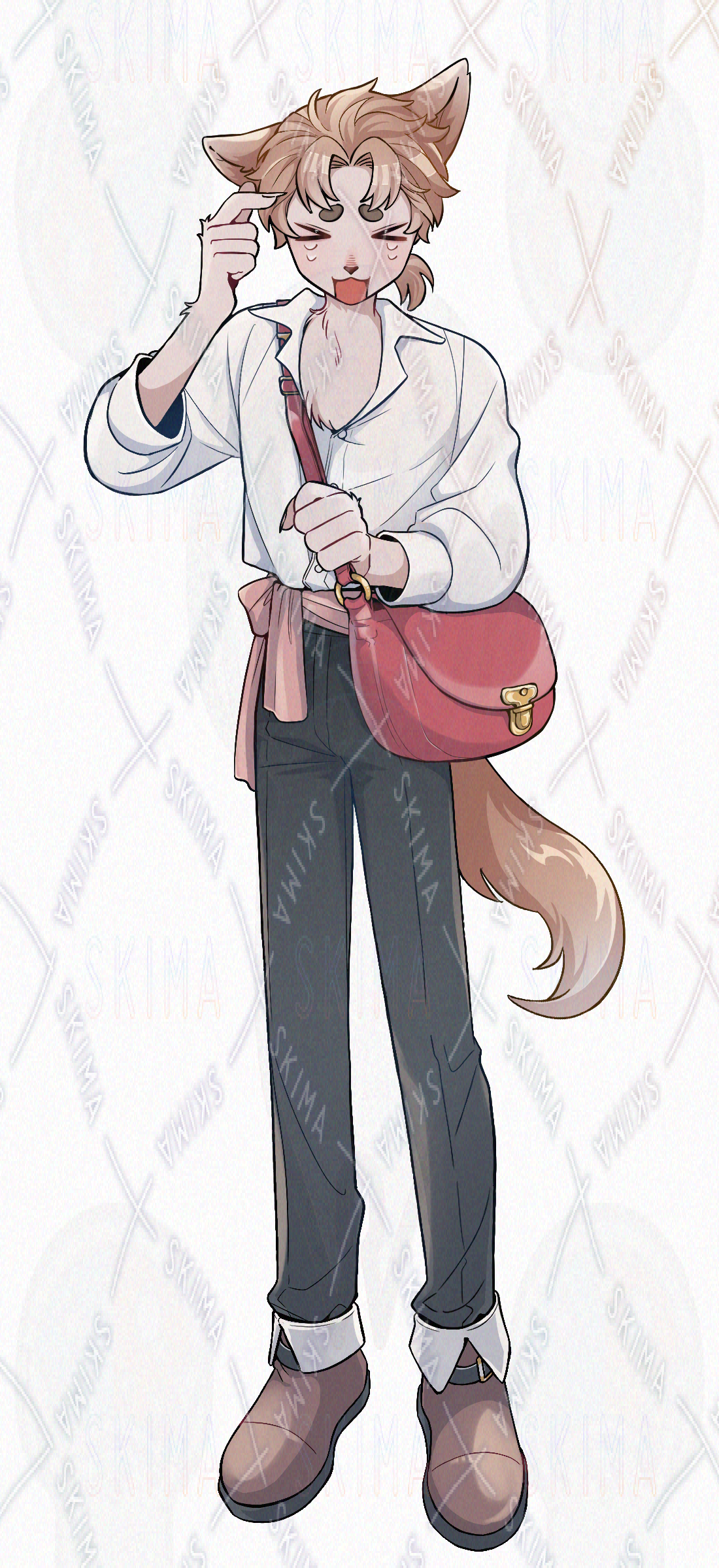 郵便屋イメージで描いた、ショルダーバッグを持ったカジュアルな制服風の獣人です。