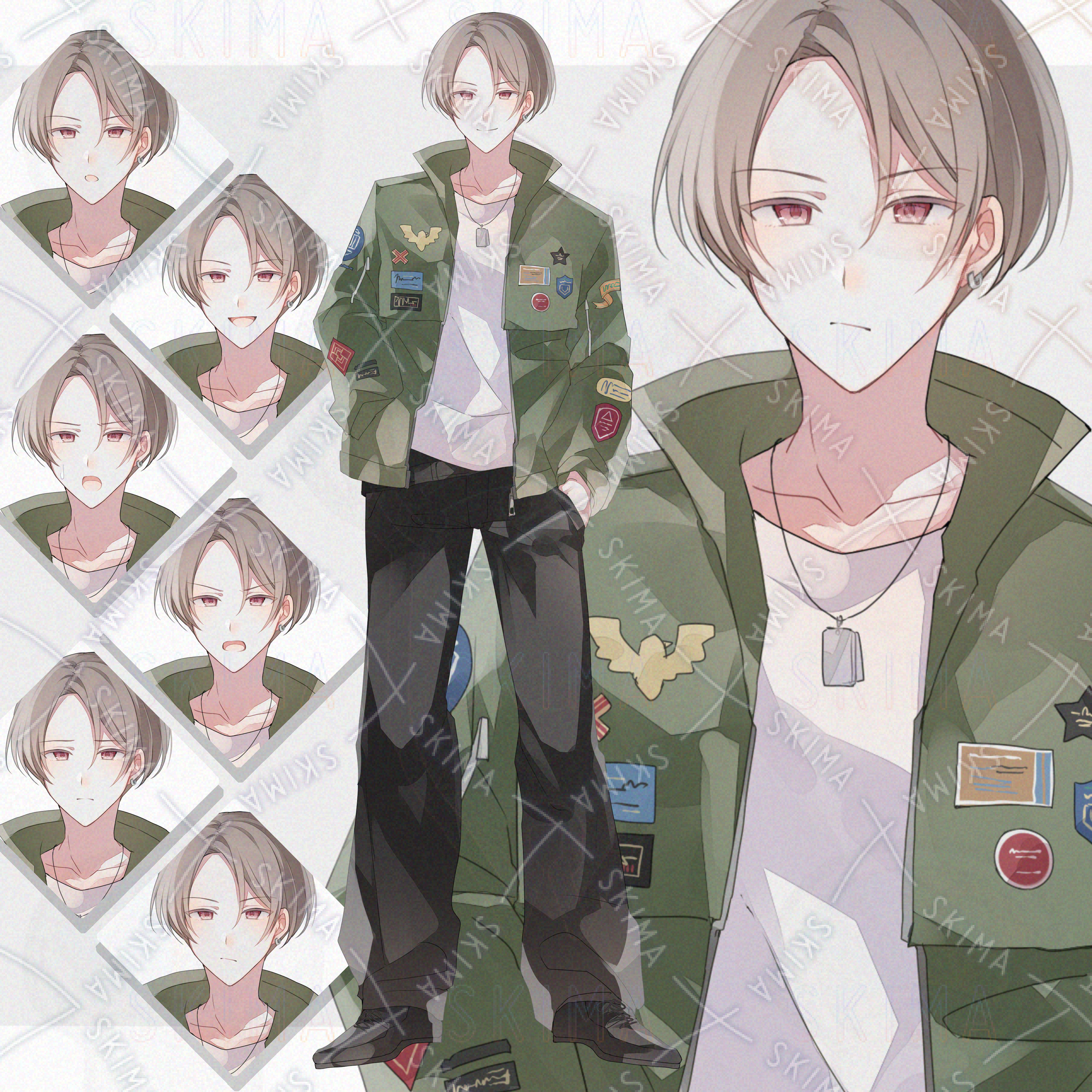 ワッペンジャケットの男性【表情差分6種】