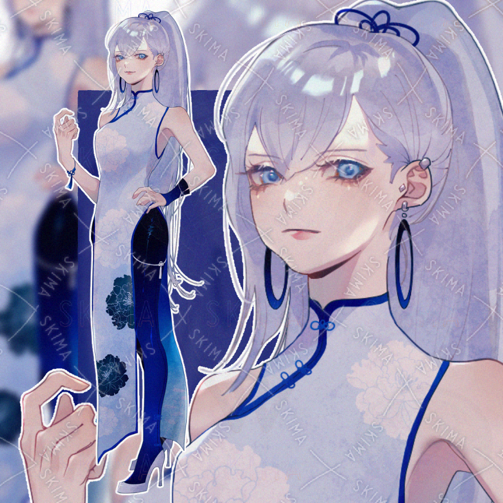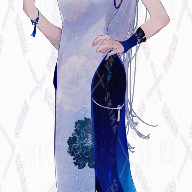 瑠璃紺色をイメージカラーとしたキャラクターの立ち絵です。