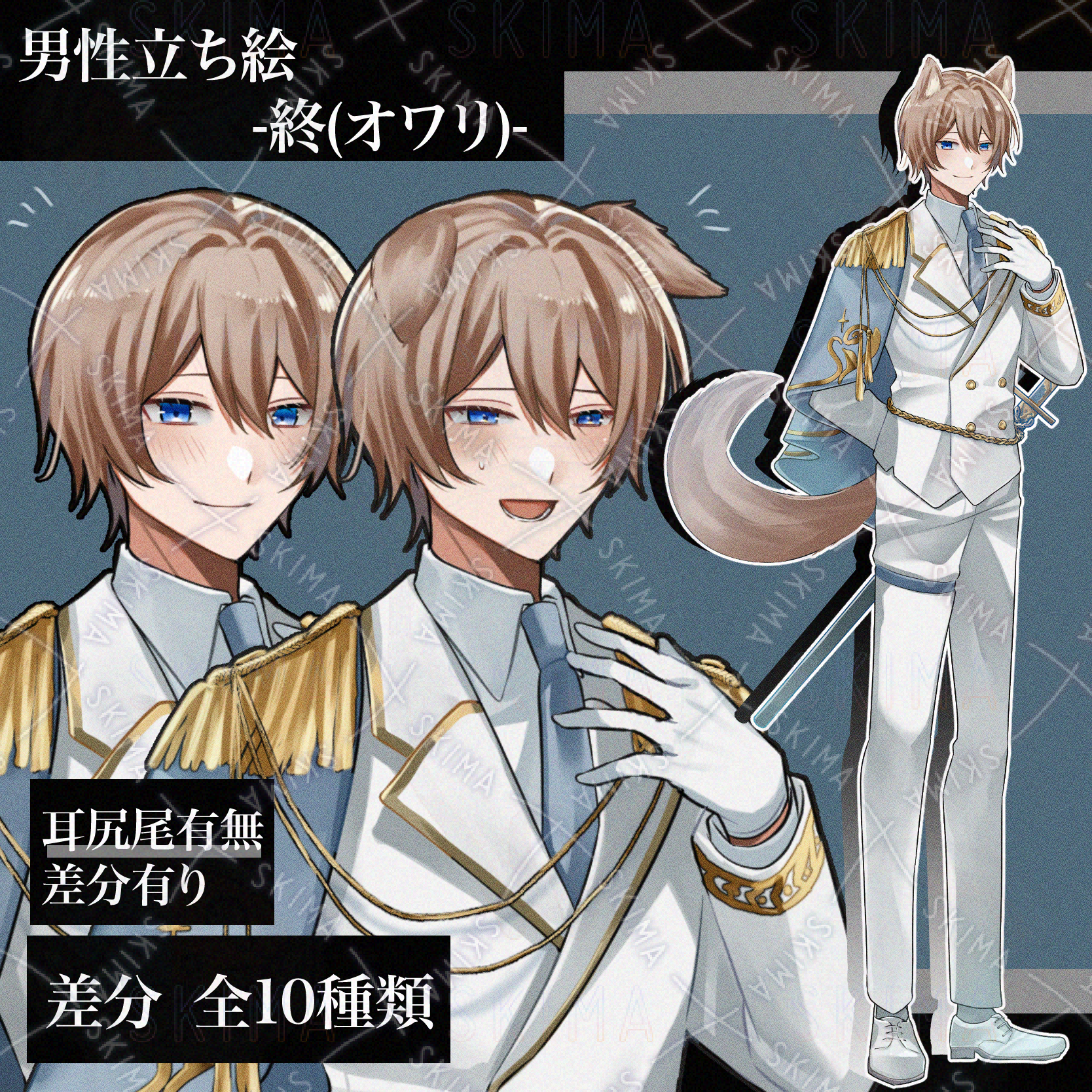 耳尻尾ありとなしで、表情差分を5種類ずつ用意しております。