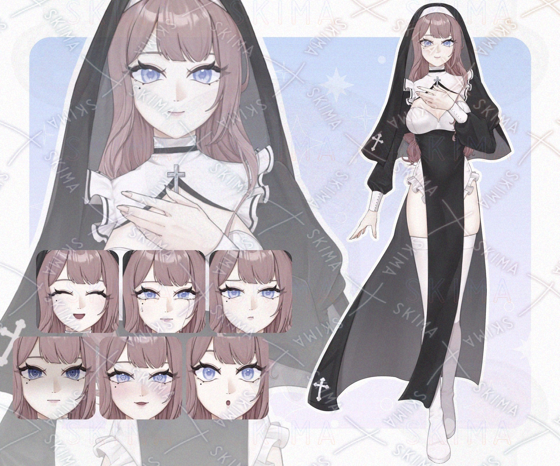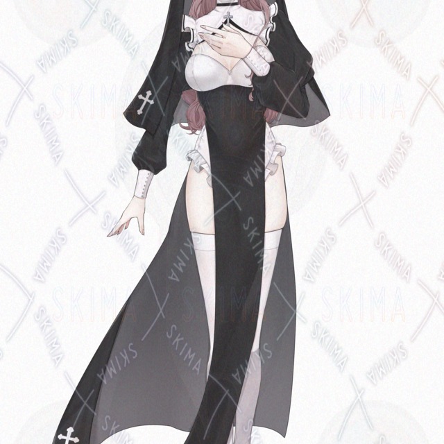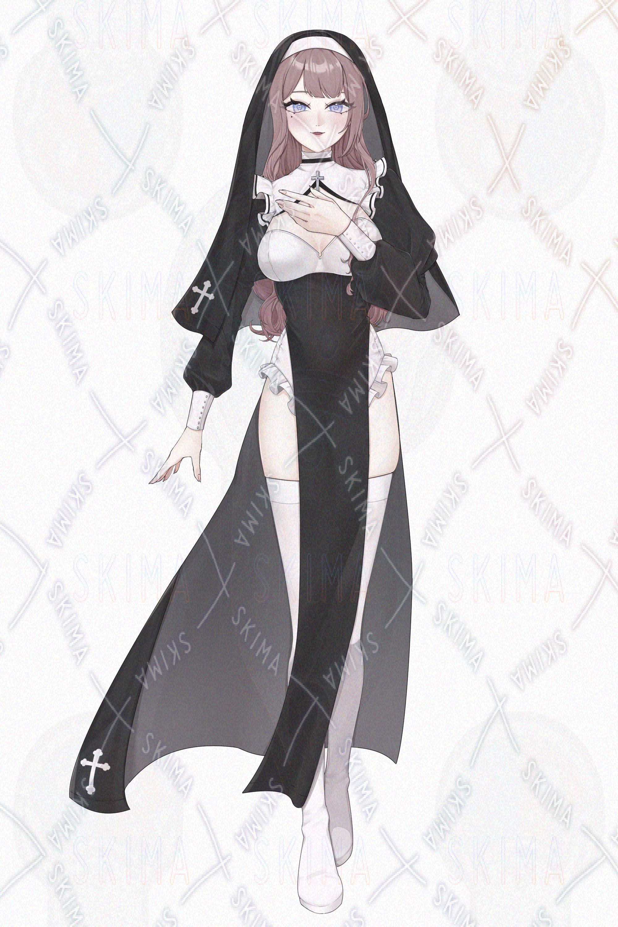 IRIAM対応、白、黒、ピンク髪、シスター、お姉さん、ニーハイ、泣きぼくろ、十字架、ハイレグレオタード風
