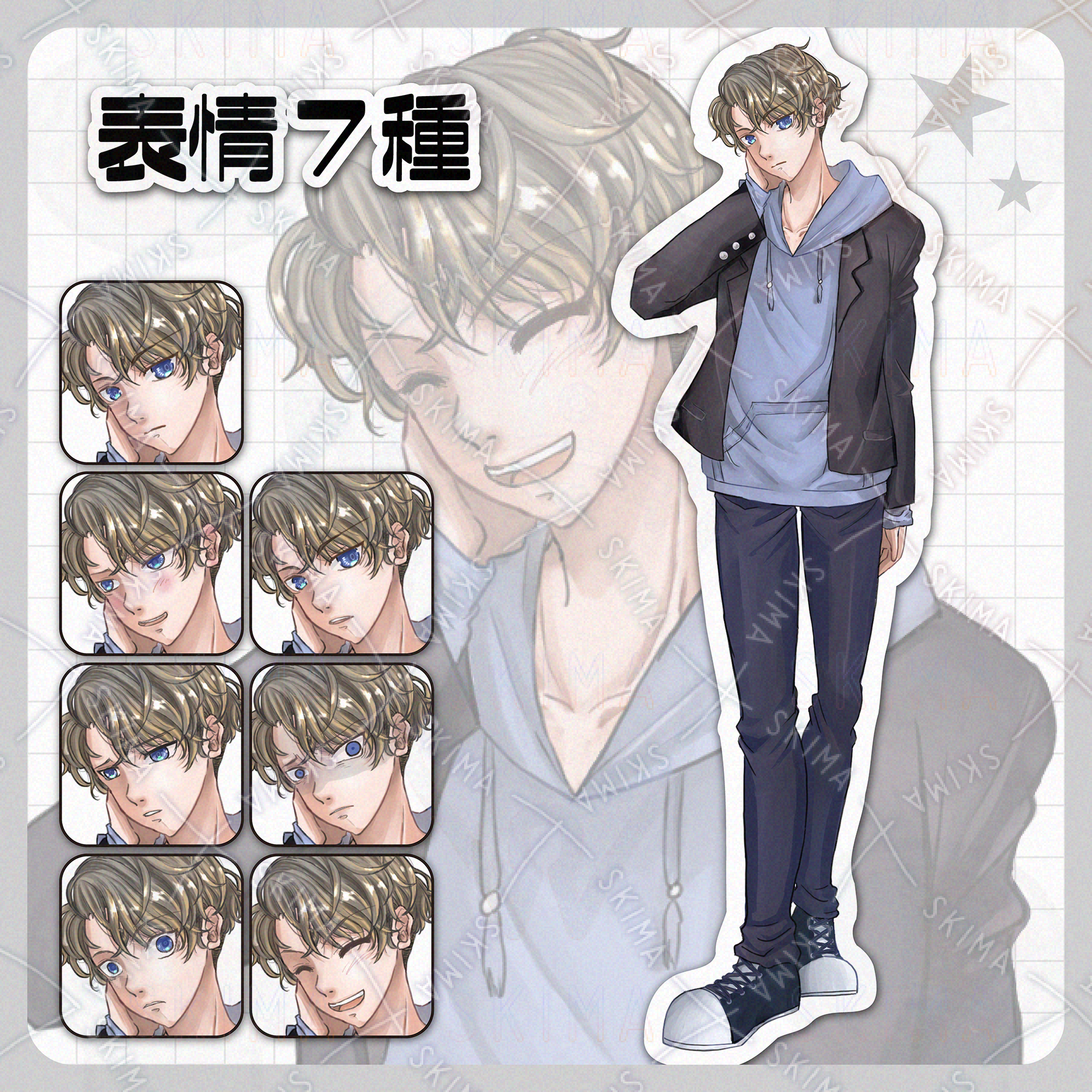 【表情7種】パーカーを着た男子大学生